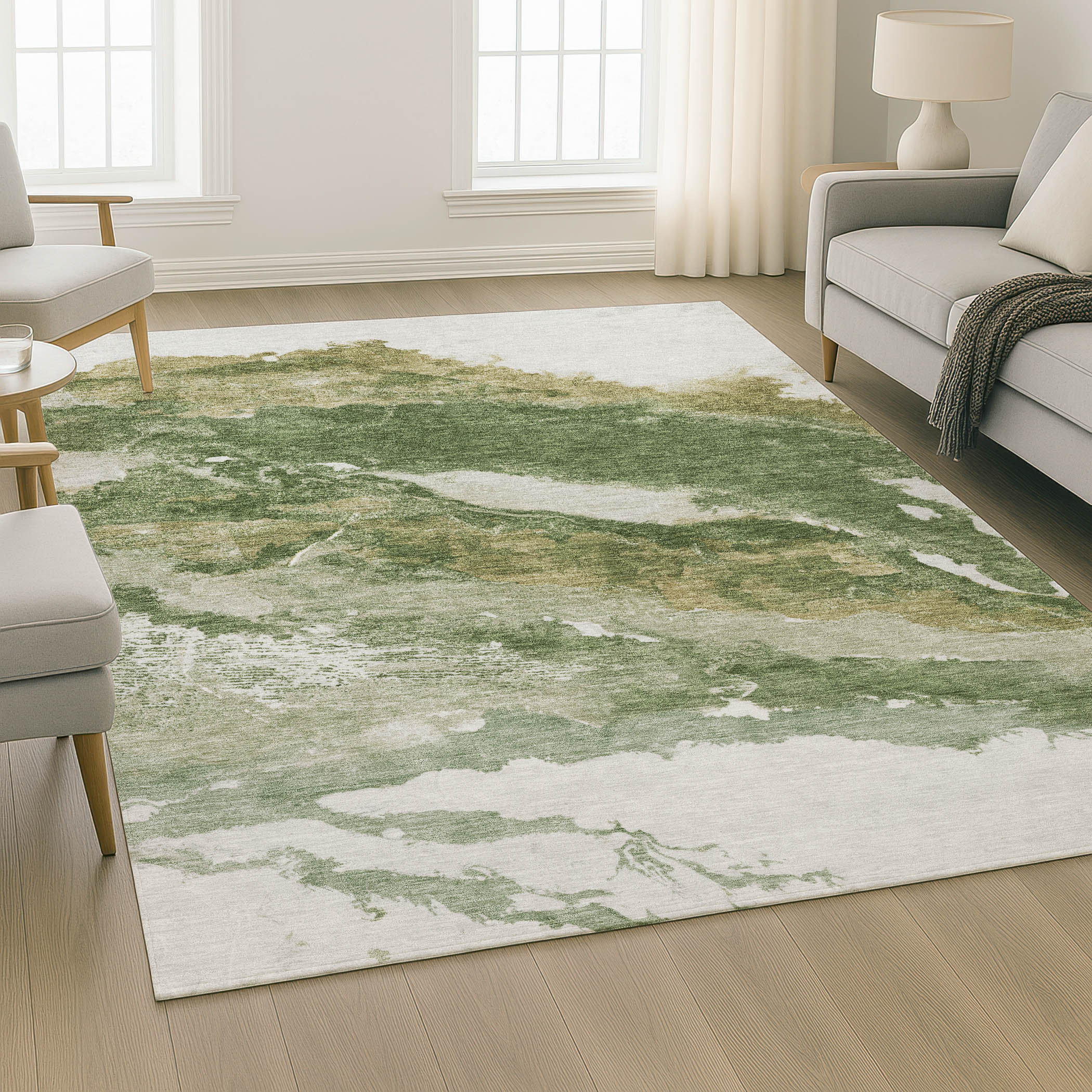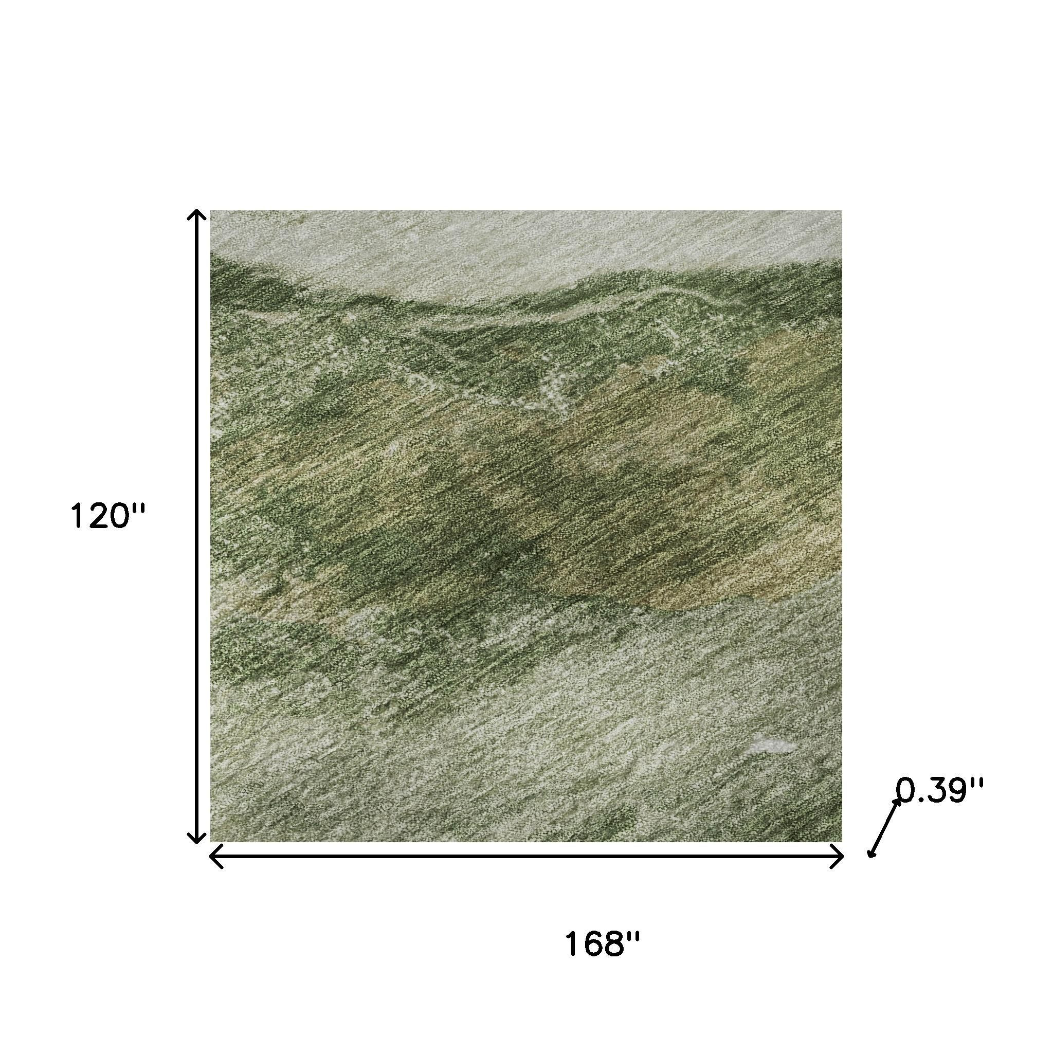 Add some artistry to your room with this 10-foot x 14-foot green and ivory abstract washable area rug with uv protection. Ideal for spaces with kids and pets, this rug is stain resistant to help repel dirt and spilled liquids. Built to last, this rug crafted from polyester fibers is known for its durability and long lasting appeal. Rugs are a great way to showcase your style, hide imperfections, warm your home and reduce noise. This larger sized, transitional styled rug is ready to create a focal point or statement piece in your room. 120.00-inch h x 168.00-inch w x 0.39-inch d.