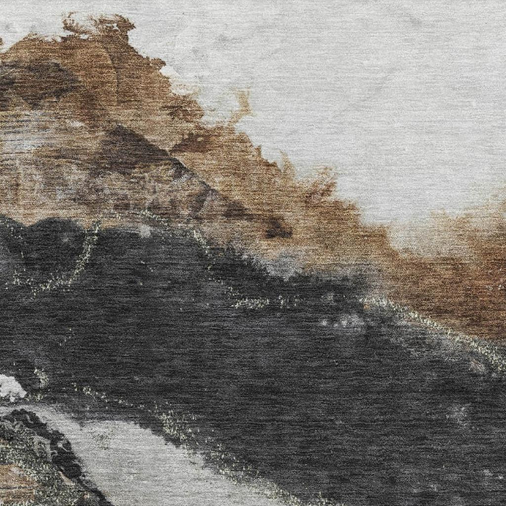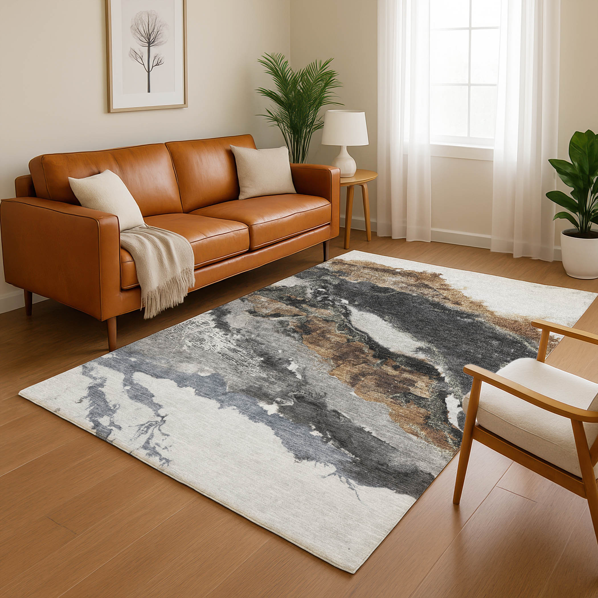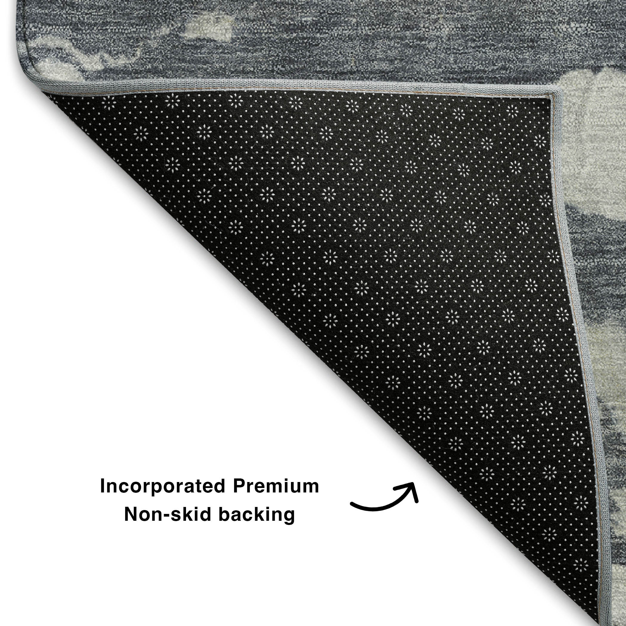 Add some artistry to your room with this 5-foot x 8-foot gray and ivory abstract washable area rug with uv protection. Ideal for spaces with kids and pets, this rug is stain resistant to help repel dirt and spilled liquids. Built to last, this rug crafted from polyester fibers is known for its durability and long lasting appeal. Rugs are a great way to showcase your style, hide imperfections, warm your home and reduce noise. This larger sized, transitional styled rug is ready to create a focal point or statement piece in your room. 60.00-inch h x 90.00-inch w x 0.39-inch d.
