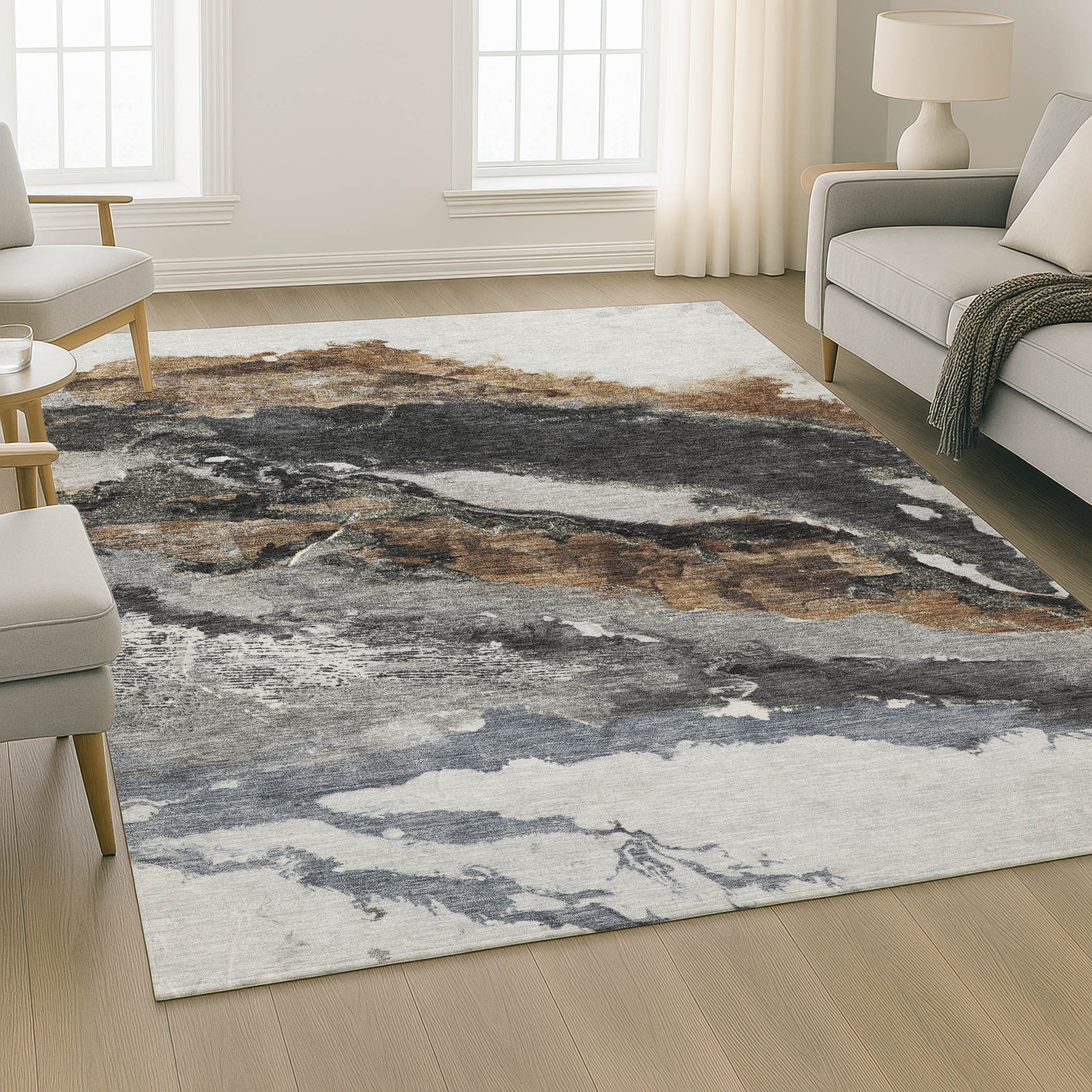 This 8-foot x 10-foot gray and ivory abstract washable area rug with uv protection, is a great way to add warmth to a room. Ideal for spaces with kids and pets, this rug is stain resistant to help repel dirt and spilled liquids. Built to last, this rug crafted from polyester fibers is known for its durability and long lasting appeal. Rugs are a great way to showcase your style, hide imperfections, warm your home and reduce noise. This larger sized, transitional styled rug is ready to create a focal point or statement piece in your room. 96.00-inch h x 120.00-inch w x 0.39-inch d.