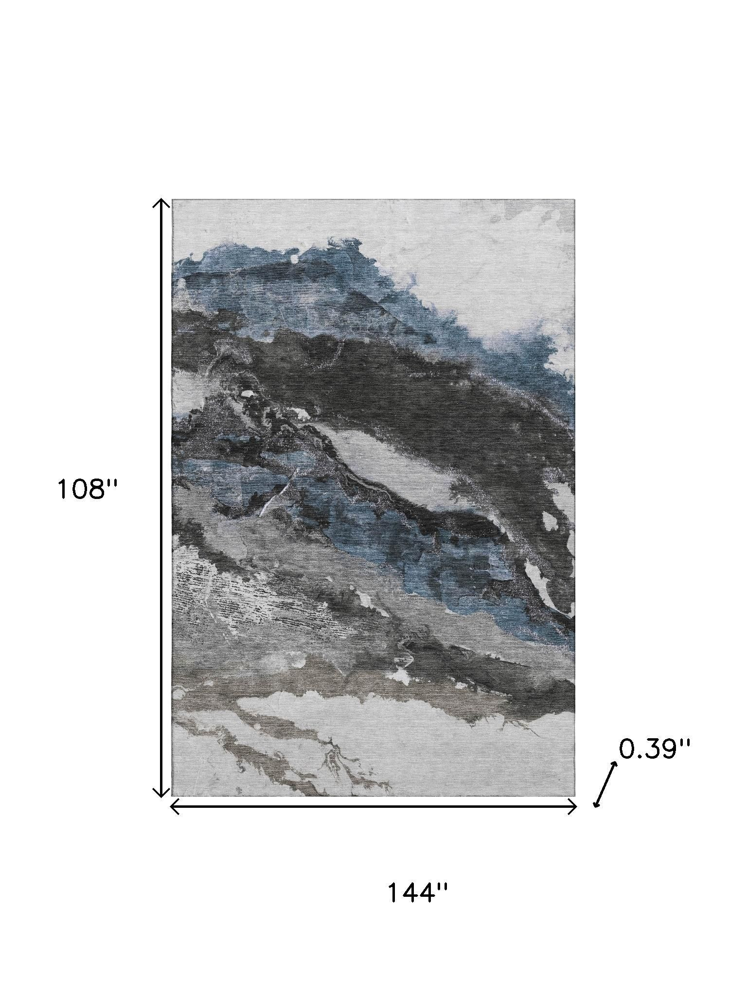 Set an inviting tone in your space with this 9-foot x 12-foot pewter and ivory abstract washable area rug with uv protection. Ideal for spaces with kids and pets, this rug is stain resistant to help repel dirt and spilled liquids. Built to last, this rug crafted from polyester fibers is known for its durability and long lasting appeal. Rugs are a great way to showcase your style, hide imperfections, warm your home and reduce noise. This larger sized, transitional styled rug is ready to create a focal point or statement piece in your room. 108.00-inch h x 144.00-inch w x 0.39-inch d.