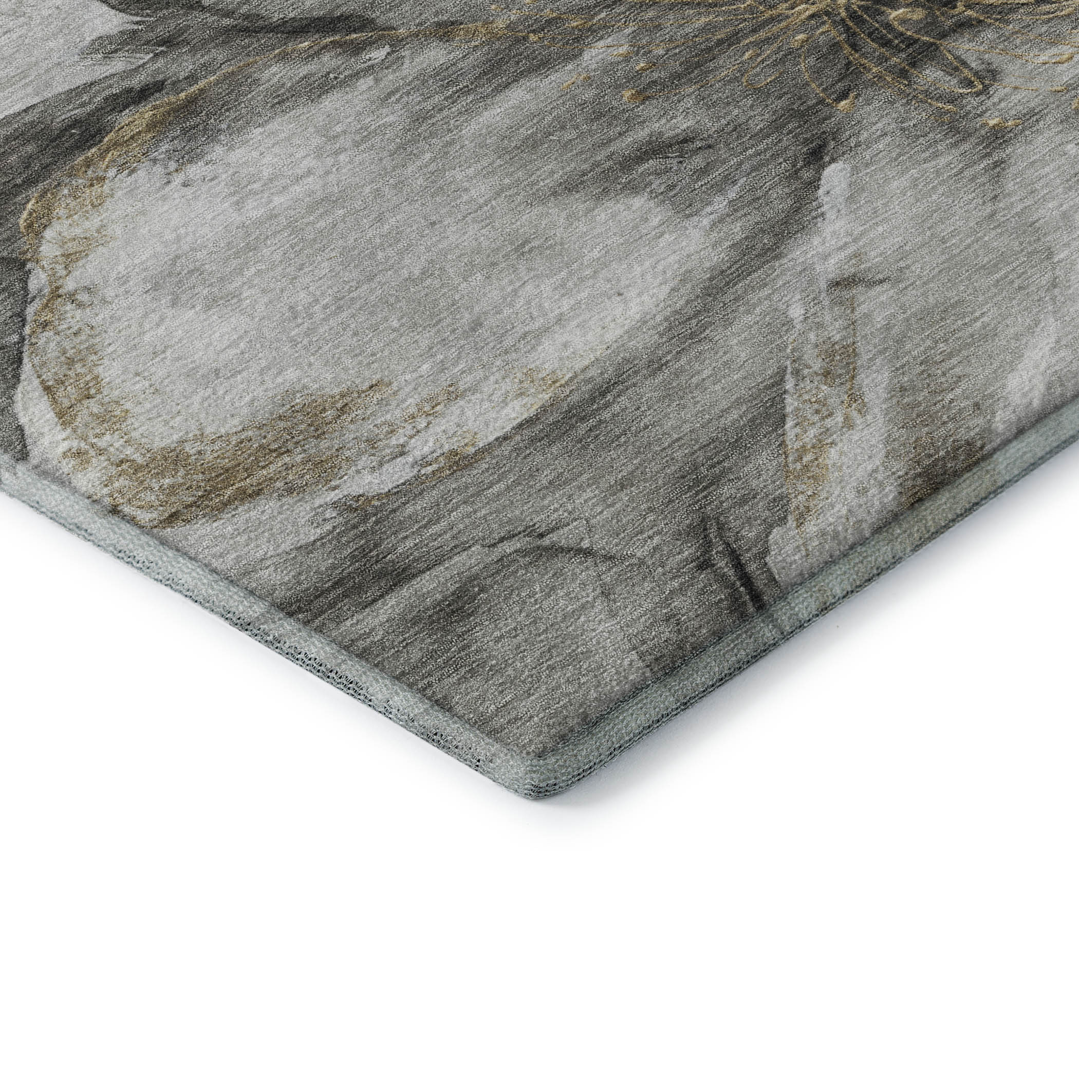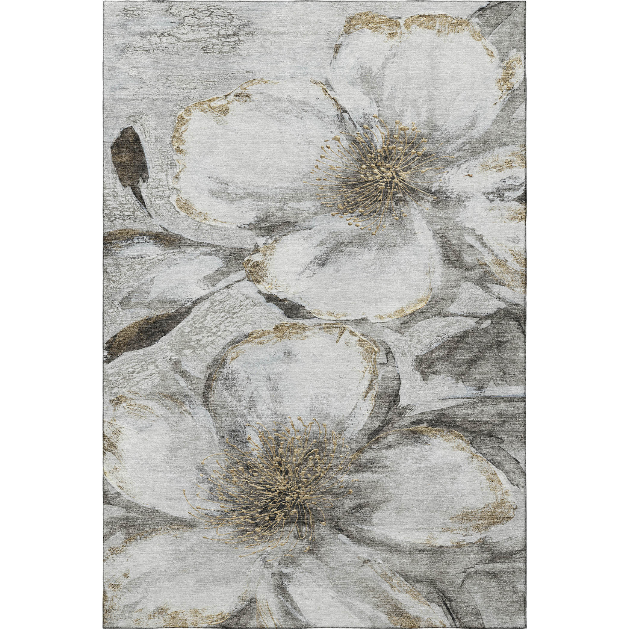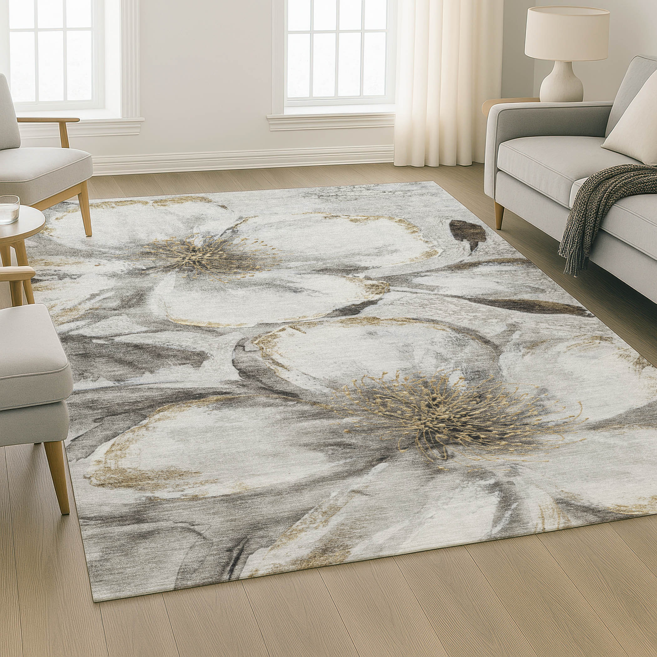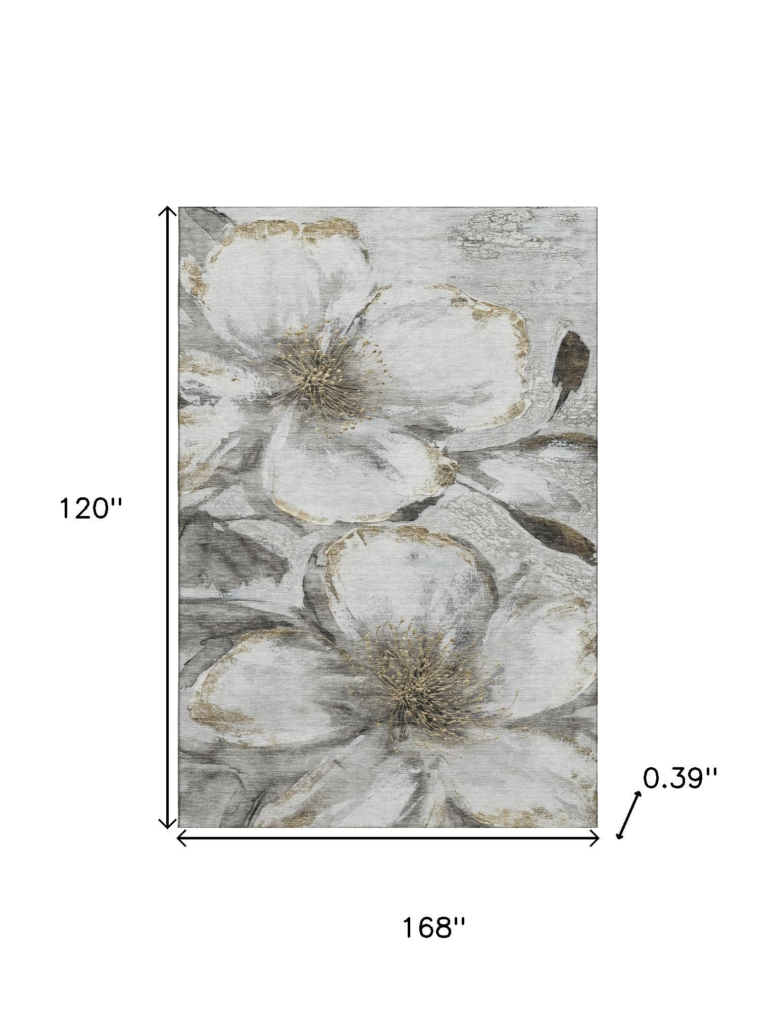 Add some artistry to your room with this 10-foot x 14-foot silver and gray floral washable area rug with uv protection. Ideal for spaces with kids and pets, this rug is stain resistant to help repel dirt and spilled liquids. Built to last, this rug crafted from polyester fibers is known for its durability and long lasting appeal. Rugs are a great way to showcase your style, hide imperfections, warm your home and reduce noise. This larger sized, transitional styled rug is ready to create a focal point or statement piece in your room. 120.00-inch h x 168.00-inch w x 0.39-inch d.