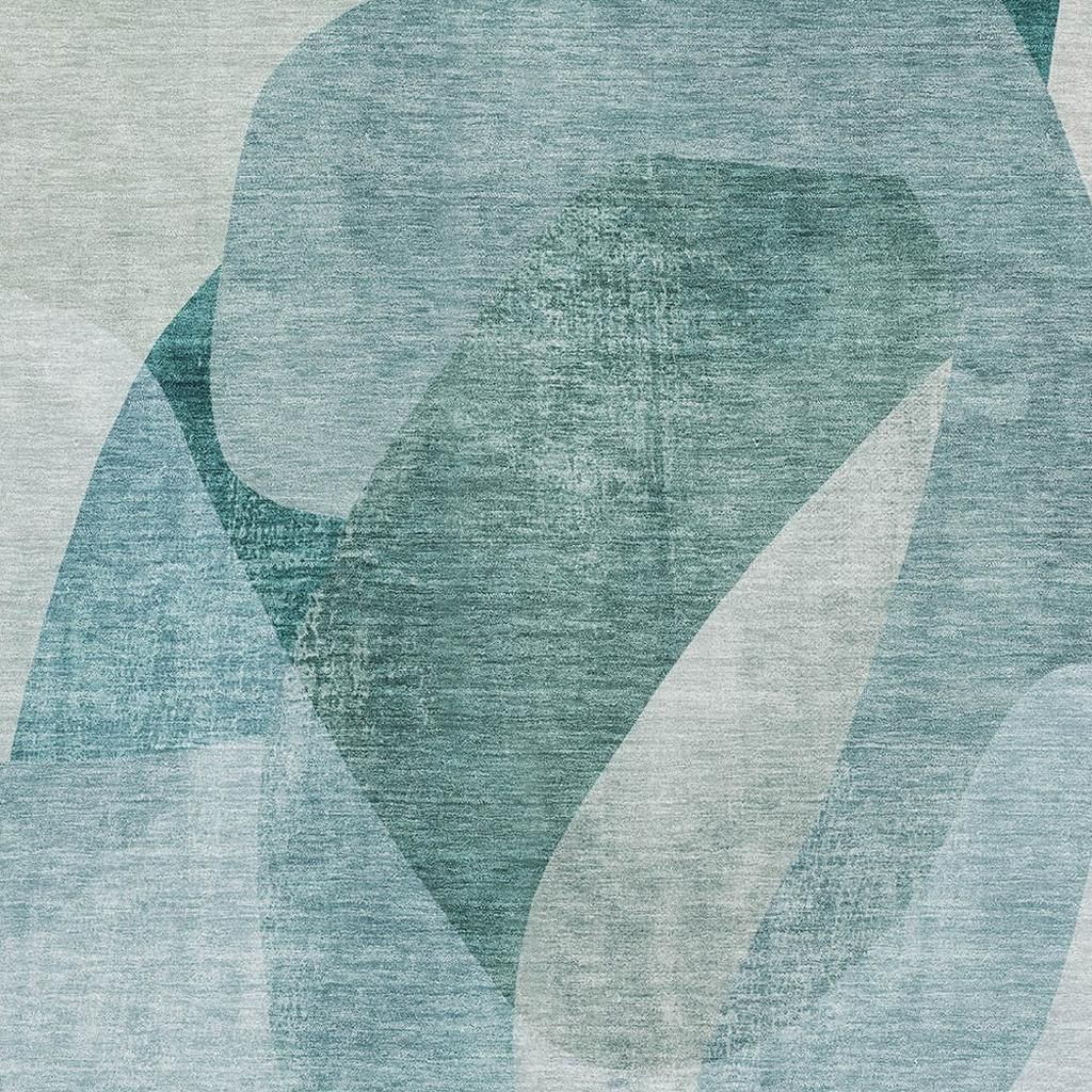 This 10-foot x 14-foot teal and pale aqua abstract washable area rug with uv protection, is a great way to add warmth to a room. Ideal for spaces with kids and pets, this rug is stain resistant to help repel dirt and spilled liquids. Built to last, this rug crafted from polyester fibers is known for its durability and long lasting appeal. Rugs are a great way to showcase your style, hide imperfections, warm your home and reduce noise. This larger sized, transitional styled rug is ready to create a focal point or statement piece in your room. 120.00-inch h x 168.00-inch w x 0.39-inch d.