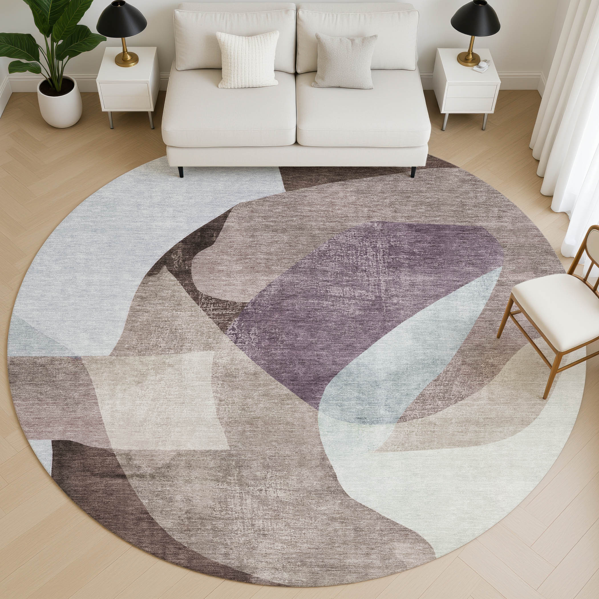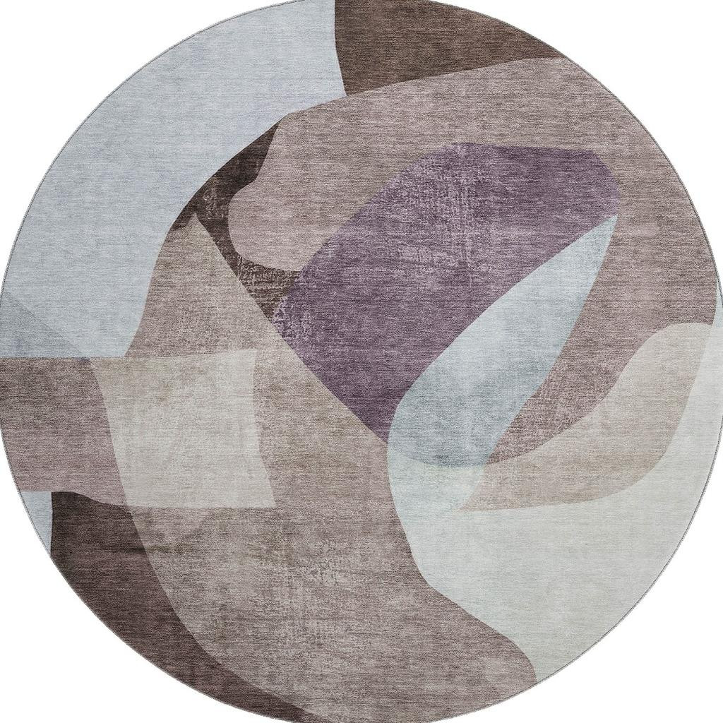 Add some artistry to your room with this 8-foot brown and ivory abstract washable round rug with uv protection. Ideal for spaces with kids and pets, this rug is stain resistant to help repel dirt and spilled liquids. Built to last, this rug crafted from polyester fibers is known for its durability and long lasting appeal. Rugs are a great way to showcase your style, hide imperfections, warm your home and reduce noise. This larger sized, transitional styled rug is ready to create a focal point or statement piece in your room. 96.00-inch h x 96.00-inch w x 0.39-inch d.