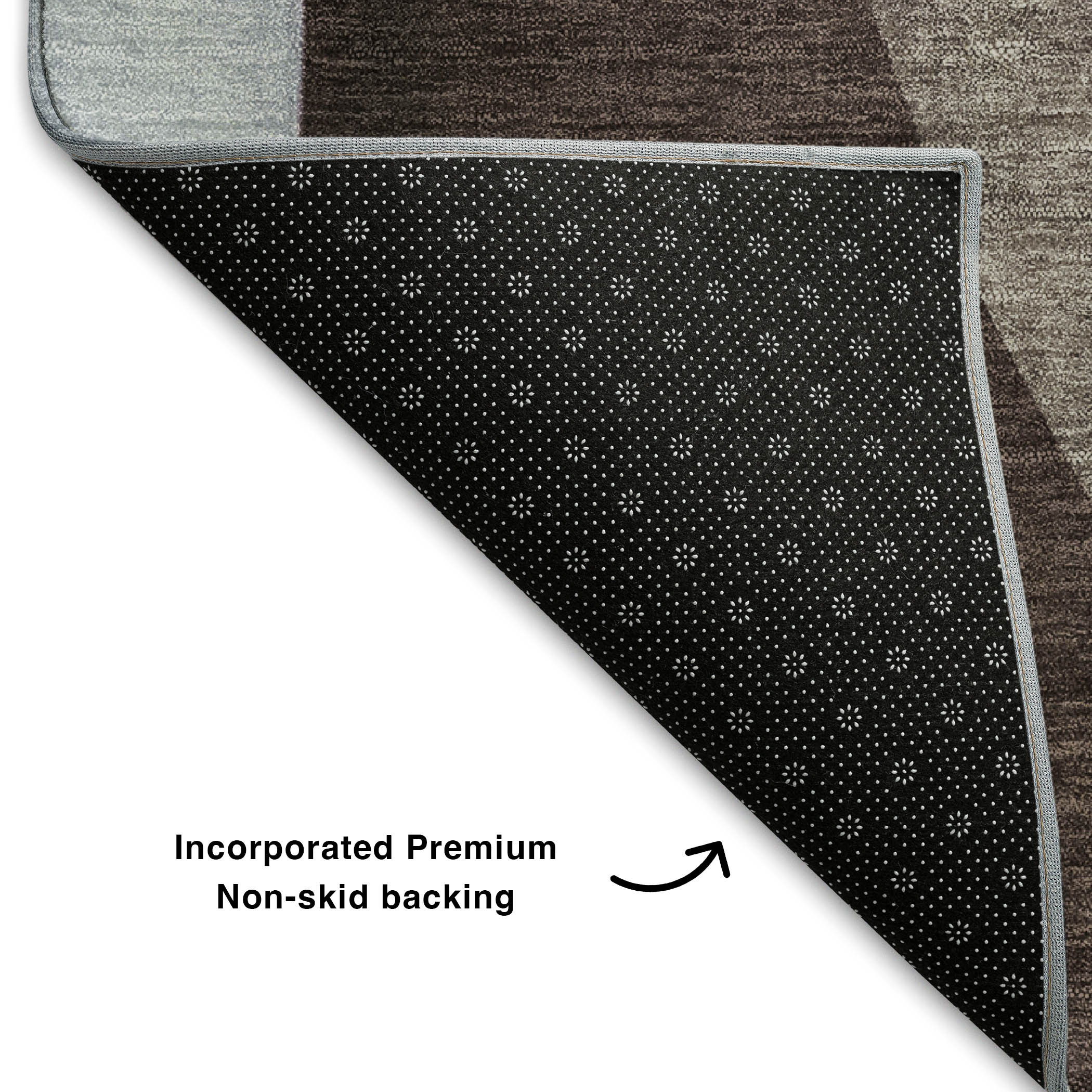 This 9-foot x 12-foot brown and ivory abstract washable area rug with uv protection, is a great way to add warmth to a room. Ideal for spaces with kids and pets, this rug is stain resistant to help repel dirt and spilled liquids. Built to last, this rug crafted from polyester fibers is known for its durability and long lasting appeal. Rugs are a great way to showcase your style, hide imperfections, warm your home and reduce noise. This larger sized, transitional styled rug is ready to create a focal point or statement piece in your room. 108.00-inch h x 144.00-inch w x 0.39-inch d.