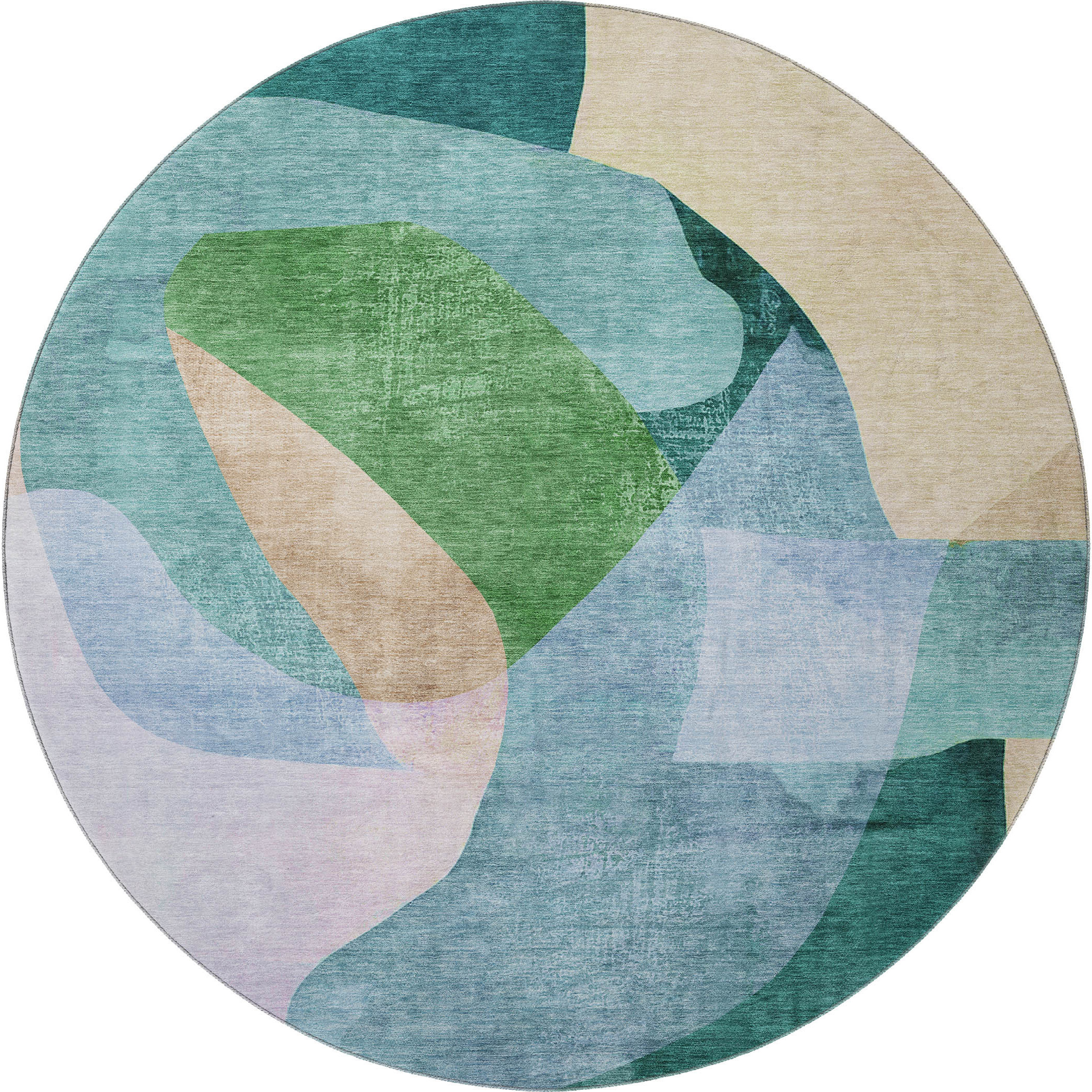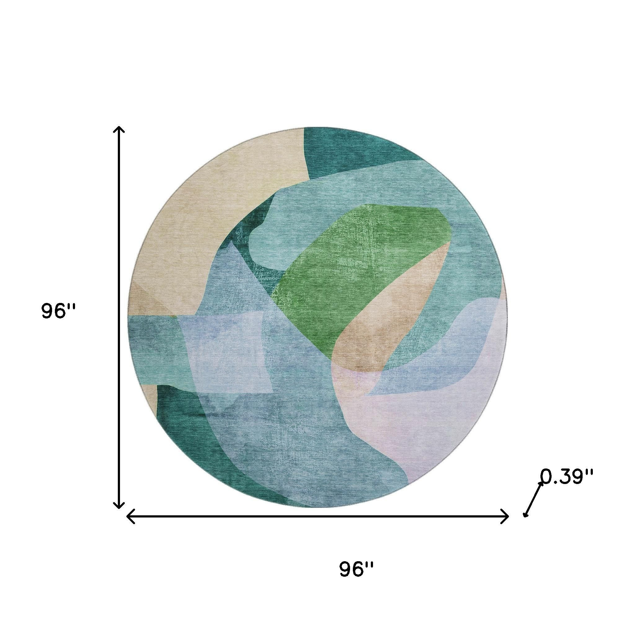 Add great coloration and comfortable texture to your space with this 8-foot green and teal abstract washable round rug with uv protection. Ideal for spaces with kids and pets, this rug is stain resistant to help repel dirt and spilled liquids. Built to last, this rug crafted from polyester fibers is known for its durability and long lasting appeal. Rugs are a great way to showcase your style, hide imperfections, warm your home and reduce noise. This larger sized, transitional styled rug is ready to create a focal point or statement piece in your room. 96.00-inch h x 96.00-inch w x 0.39-inch d.