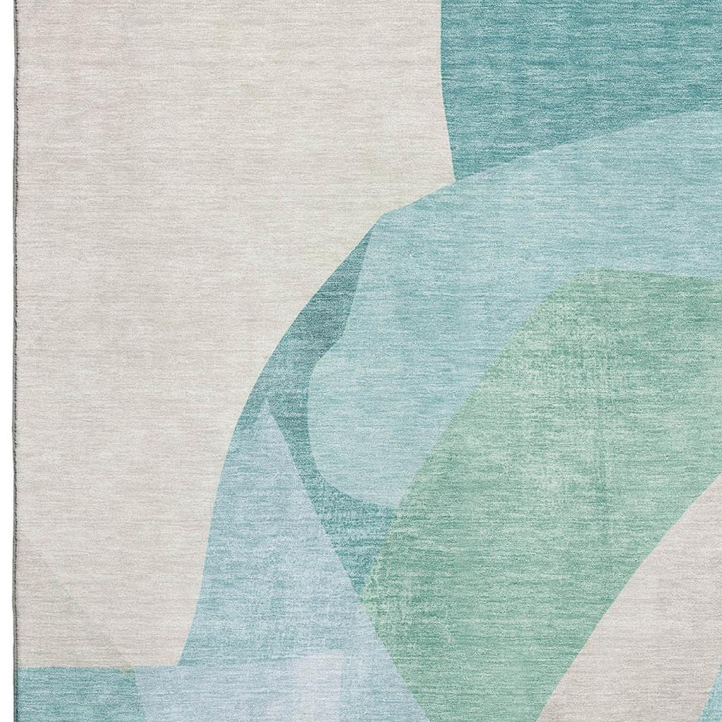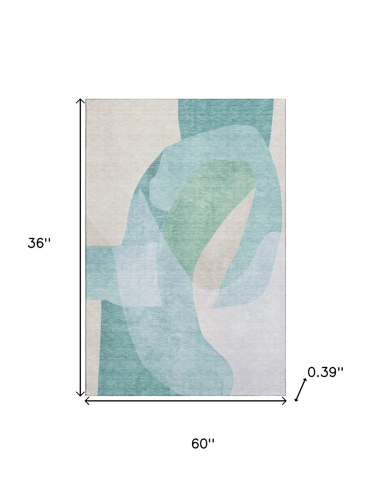 This 3-foot x 5-foot pale aqua and beige abstract washable area rug with uv protection, is a great way to add warmth to a room. Ideal for spaces with kids and pets, this rug is stain resistant to help repel dirt and spilled liquids. Built to last, this rug crafted from polyester fibers is known for its durability and long lasting appeal. Rugs are a great way to showcase your style, hide imperfections, warm your home and reduce noise. This smaller sized, transitional styled rug is just what you need for your walkway, bedside, in front of door, cabinet, refrigerator, or chair. 36.00-inch h x 60.00-inch w x 0.39-inch d.