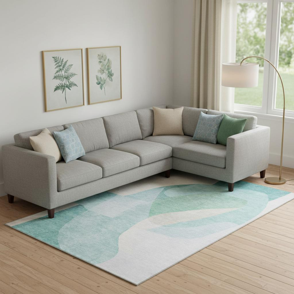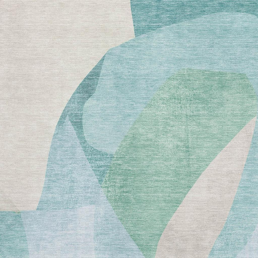 Set an inviting tone in your space with this 9-foot x 12-foot pale aqua and beige abstract washable area rug with uv protection. Ideal for spaces with kids and pets, this rug is stain resistant to help repel dirt and spilled liquids. Built to last, this rug crafted from polyester fibers is known for its durability and long lasting appeal. Rugs are a great way to showcase your style, hide imperfections, warm your home and reduce noise. This larger sized, transitional styled rug is ready to create a focal point or statement piece in your room. 108.00-inch h x 144.00-inch w x 0.39-inch d.
