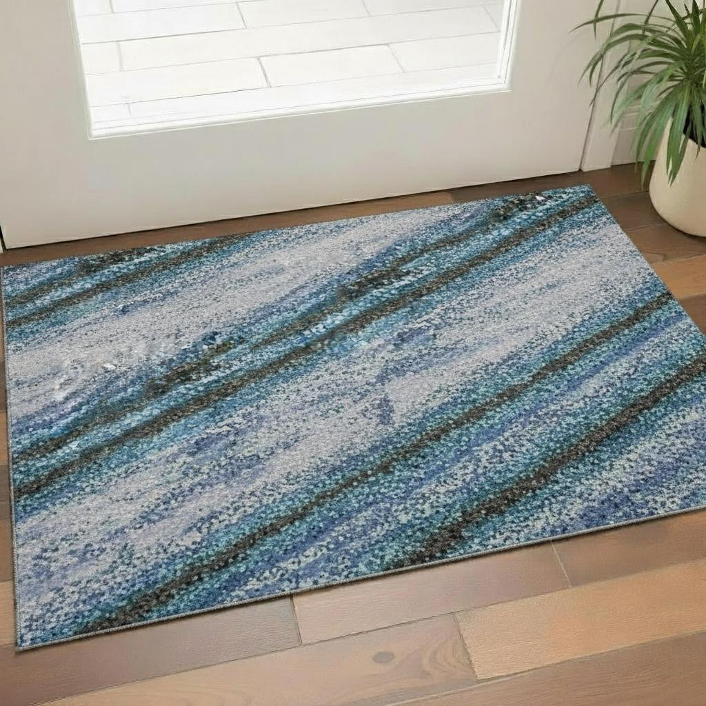 This 3-foot x 5-foot blue and charcoal abstract washable area rug with uv protection, is a great way to add warmth to a room. Ideal for spaces with kids and pets, this rug is stain resistant to help repel dirt and spilled liquids. Built to last, this rug crafted from polyester fibers is known for its durability and long lasting appeal. Rugs are a great way to showcase your style, hide imperfections, warm your home and reduce noise. This smaller sized, transitional styled rug is just what you need for your walkway, bedside, in front of door, cabinet, refrigerator, or chair. 36.00-inch h x 60.00-inch w x 0.39-inch d.