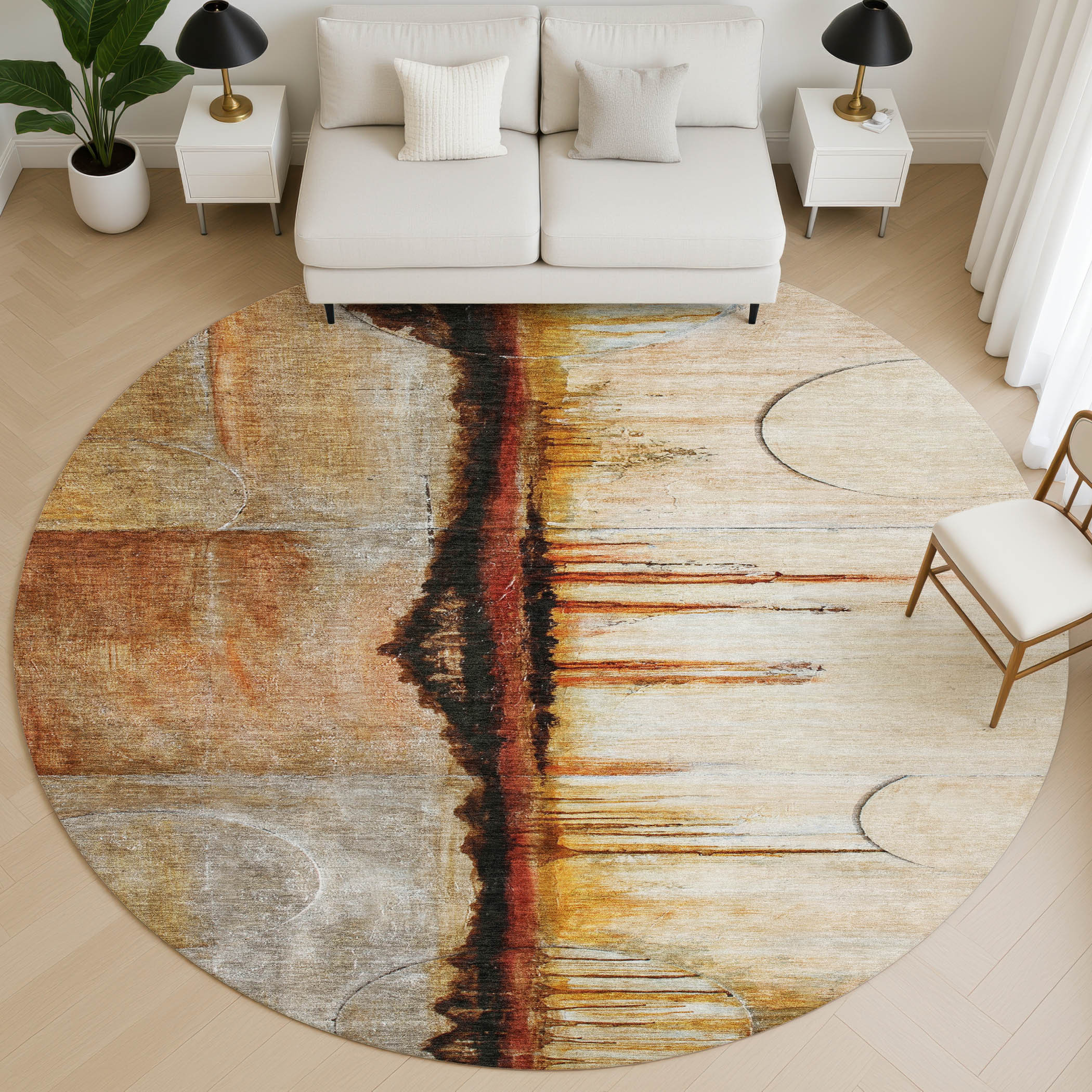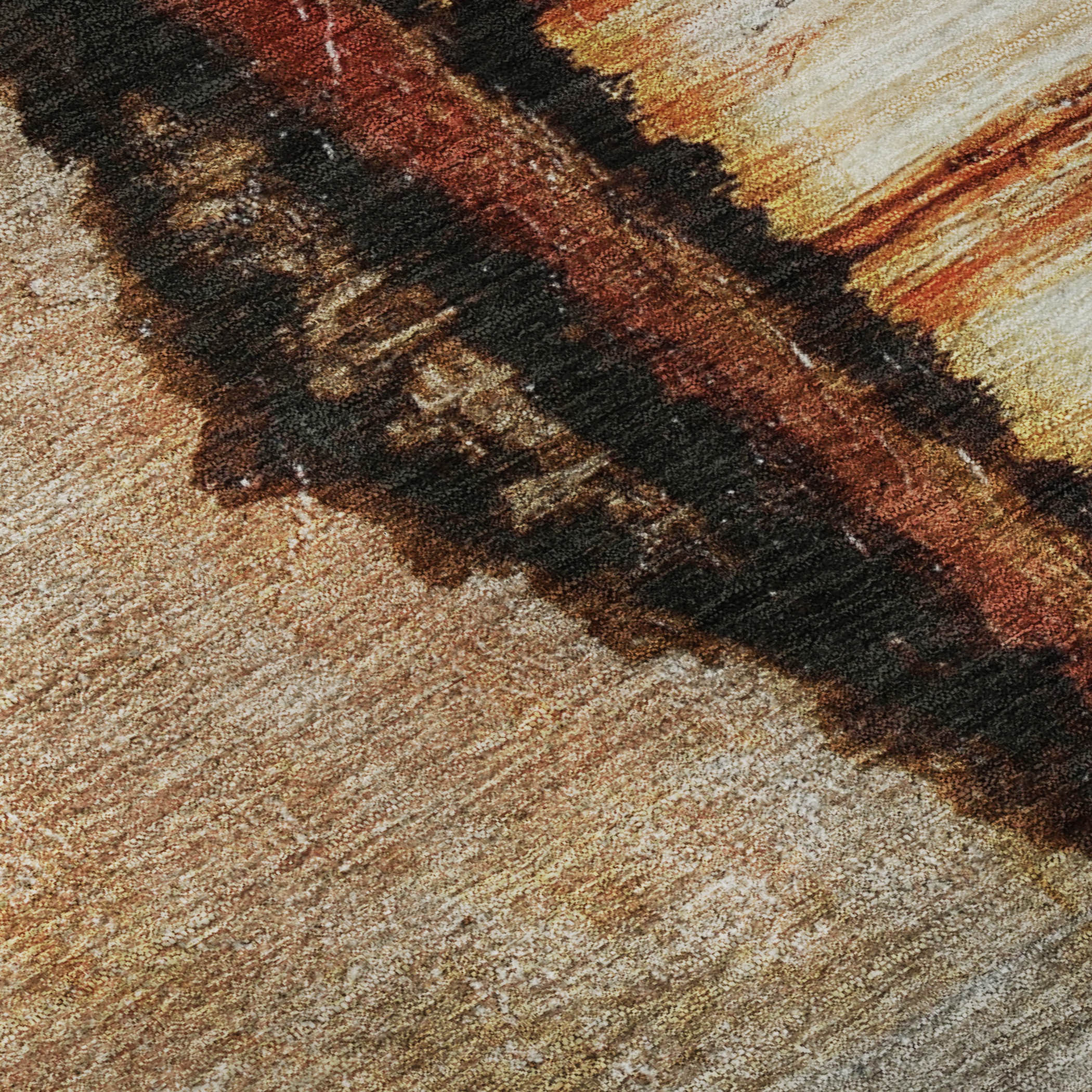 Add great coloration and comfortable texture to your space with this 8-foot rust and charcoal abstract washable round rug with uv protection. Ideal for spaces with kids and pets, this rug is stain resistant to help repel dirt and spilled liquids. Built to last, this rug crafted from polyester fibers is known for its durability and long lasting appeal. Rugs are a great way to showcase your style, hide imperfections, warm your home and reduce noise. This larger sized, transitional styled rug is ready to create a focal point or statement piece in your room. 96.00-inch h x 96.00-inch w x 0.39-inch d.