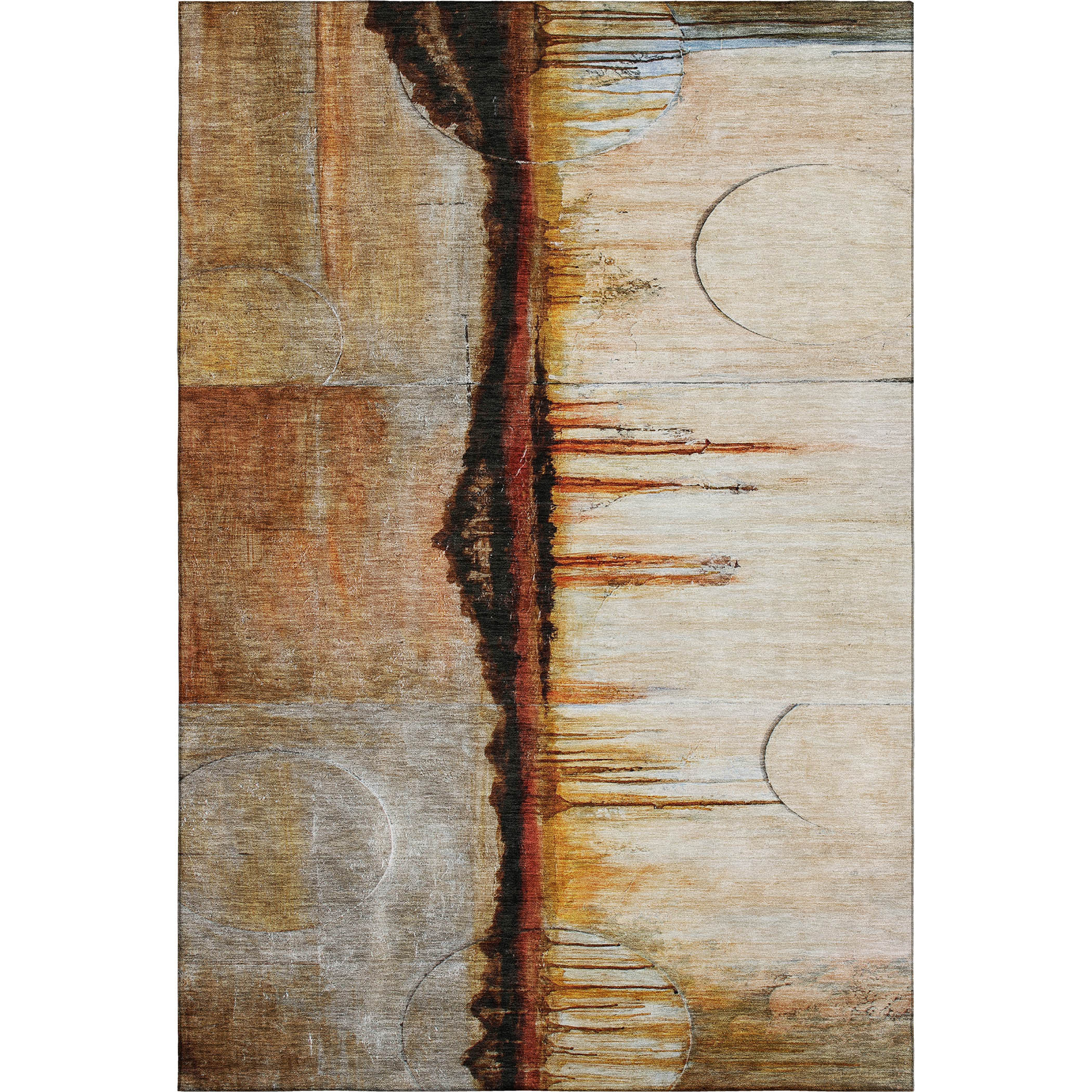 This 10-foot x 14-foot rust and charcoal abstract washable area rug with uv protection, is a great way to add warmth to a room. Ideal for spaces with kids and pets, this rug is stain resistant to help repel dirt and spilled liquids. Built to last, this rug crafted from polyester fibers is known for its durability and long lasting appeal. Rugs are a great way to showcase your style, hide imperfections, warm your home and reduce noise. This larger sized, transitional styled rug is ready to create a focal point or statement piece in your room. 120.00-inch h x 168.00-inch w x 0.39-inch d.