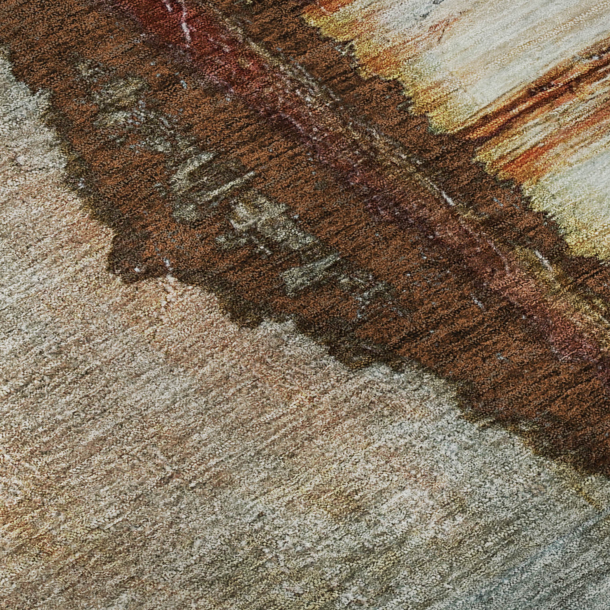 This 8-foot x 10-foot rust and beige abstract washable area rug with uv protection, is a great way to add warmth to a room. Ideal for spaces with kids and pets, this rug is stain resistant to help repel dirt and spilled liquids. Built to last, this rug crafted from polyester fibers is known for its durability and long lasting appeal. Rugs are a great way to showcase your style, hide imperfections, warm your home and reduce noise. This larger sized, transitional styled rug is ready to create a focal point or statement piece in your room. 96.00-inch h x 120.00-inch w x 0.39-inch d.