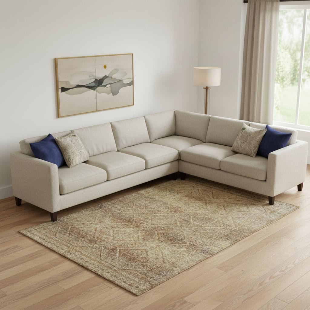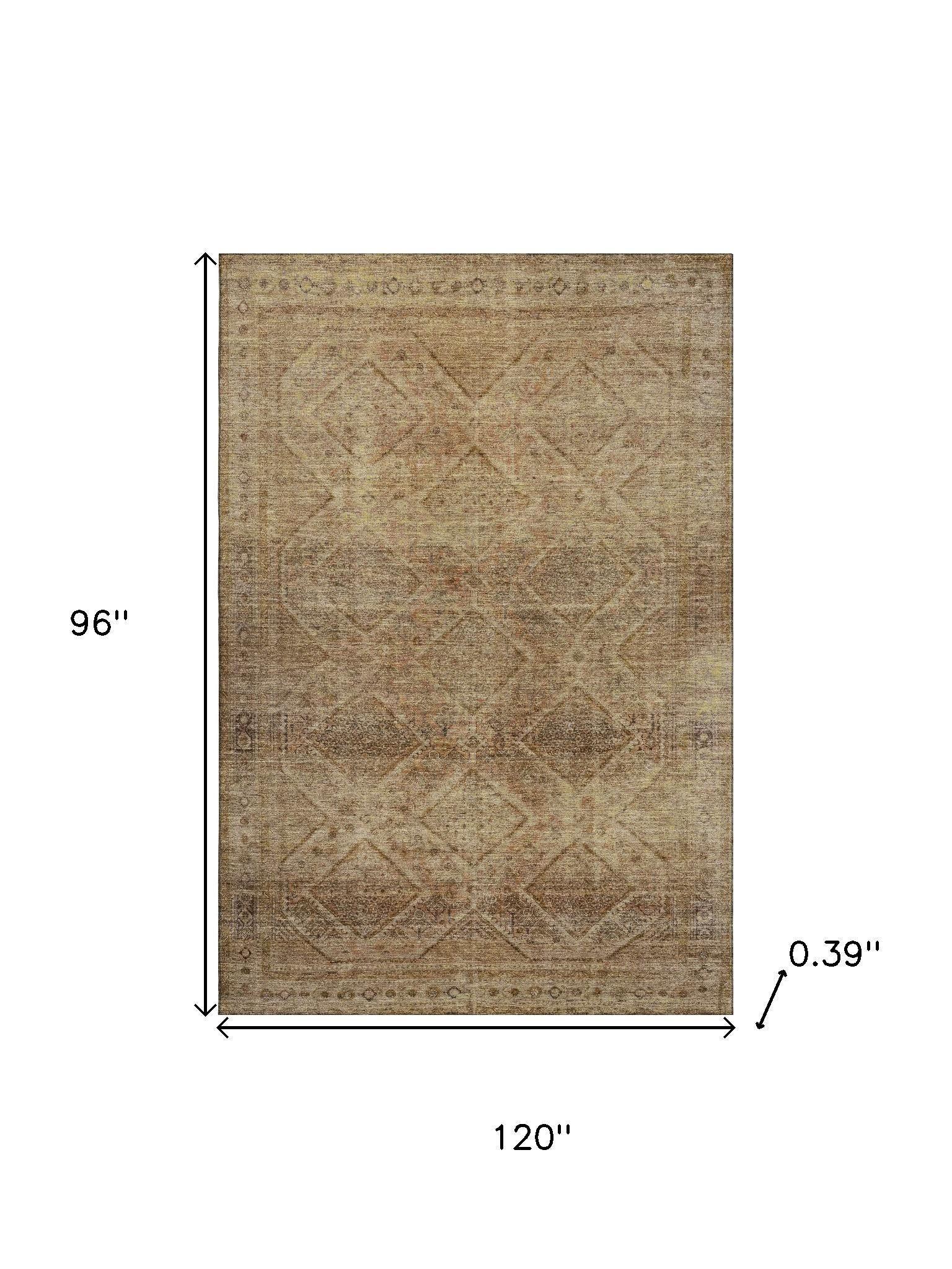 Add great coloration and comfortable texture to your space with this 8-foot x 10-foot khaki and beige geometric washable area rug with uv protection. Ideal for spaces with kids and pets, this rug is stain resistant to help repel dirt and spilled liquids. Built to last, this rug crafted from polyester fibers is known for its durability and long lasting appeal. Rugs are a great way to showcase your style, hide imperfections, warm your home and reduce noise. This larger sized, transitional styled rug is ready to create a focal point or statement piece in your room. 96.00-inch h x 120.00-inch w x 0.39-inch d.