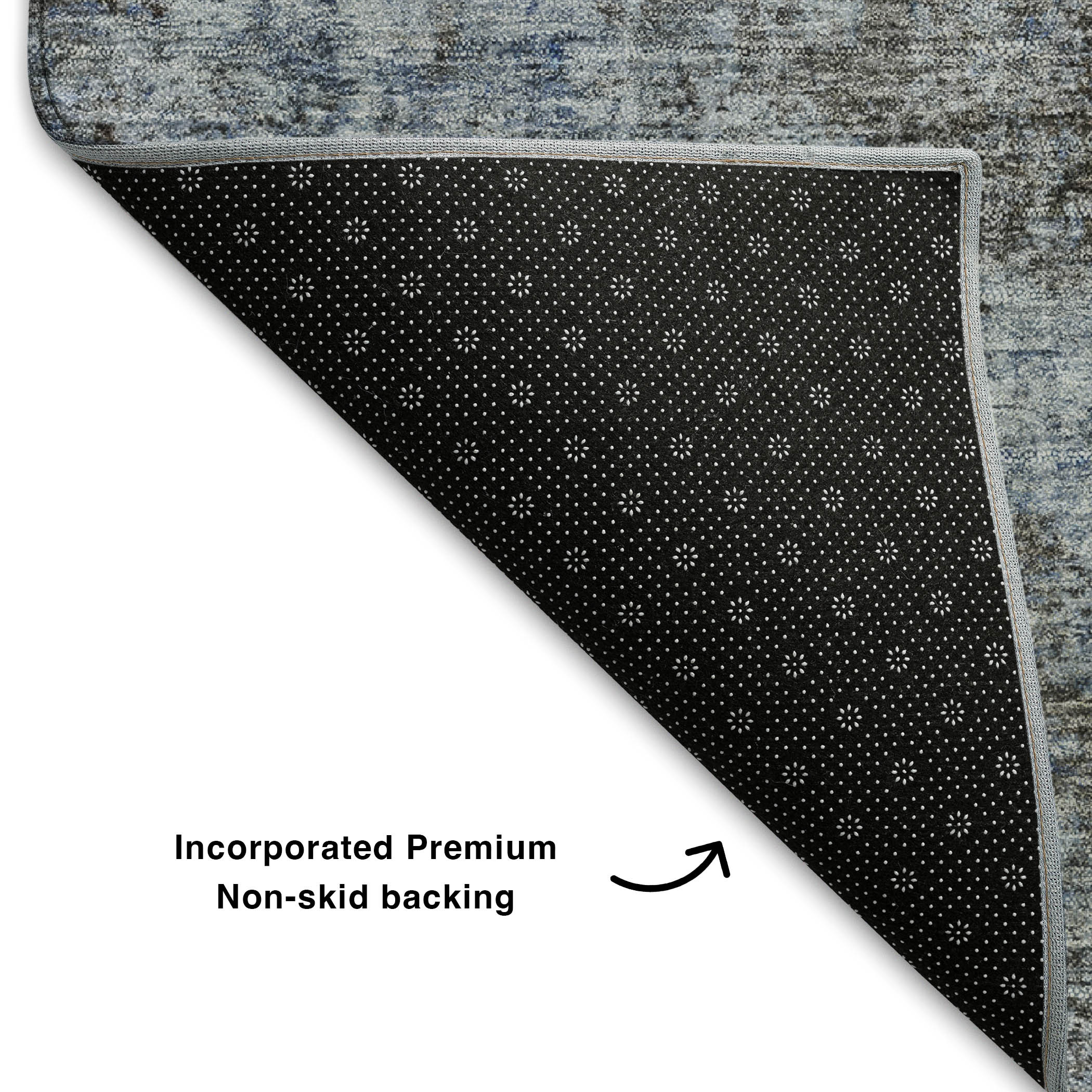 Add some artistry to your room with this 3-foot x 5-foot blue and taupe abstract washable area rug with uv protection. Ideal for spaces with kids and pets, this rug is stain resistant to help repel dirt and spilled liquids. Built to last, this rug crafted from polyester fibers is known for its durability and long lasting appeal. Rugs are a great way to showcase your style, hide imperfections, warm your home and reduce noise. This smaller sized, transitional styled rug is just what you need for your walkway, bedside, in front of door, cabinet, refrigerator, or chair. 36.00-inch h x 60.00-inch w x 0.39-inch d.