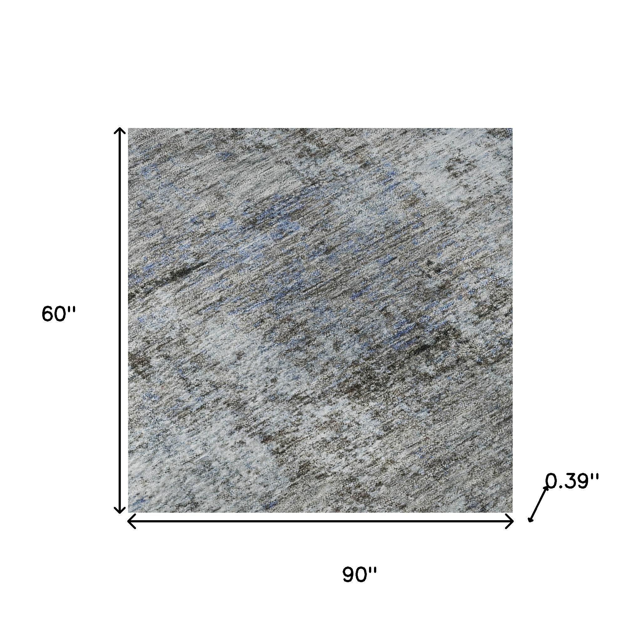Set an inviting tone in your space with this 5-foot x 8-foot blue and taupe abstract washable area rug with uv protection. Ideal for spaces with kids and pets, this rug is stain resistant to help repel dirt and spilled liquids. Built to last, this rug crafted from polyester fibers is known for its durability and long lasting appeal. Rugs are a great way to showcase your style, hide imperfections, warm your home and reduce noise. This larger sized, transitional styled rug is ready to create a focal point or statement piece in your room. 60.00-inch h x 90.00-inch w x 0.39-inch d.