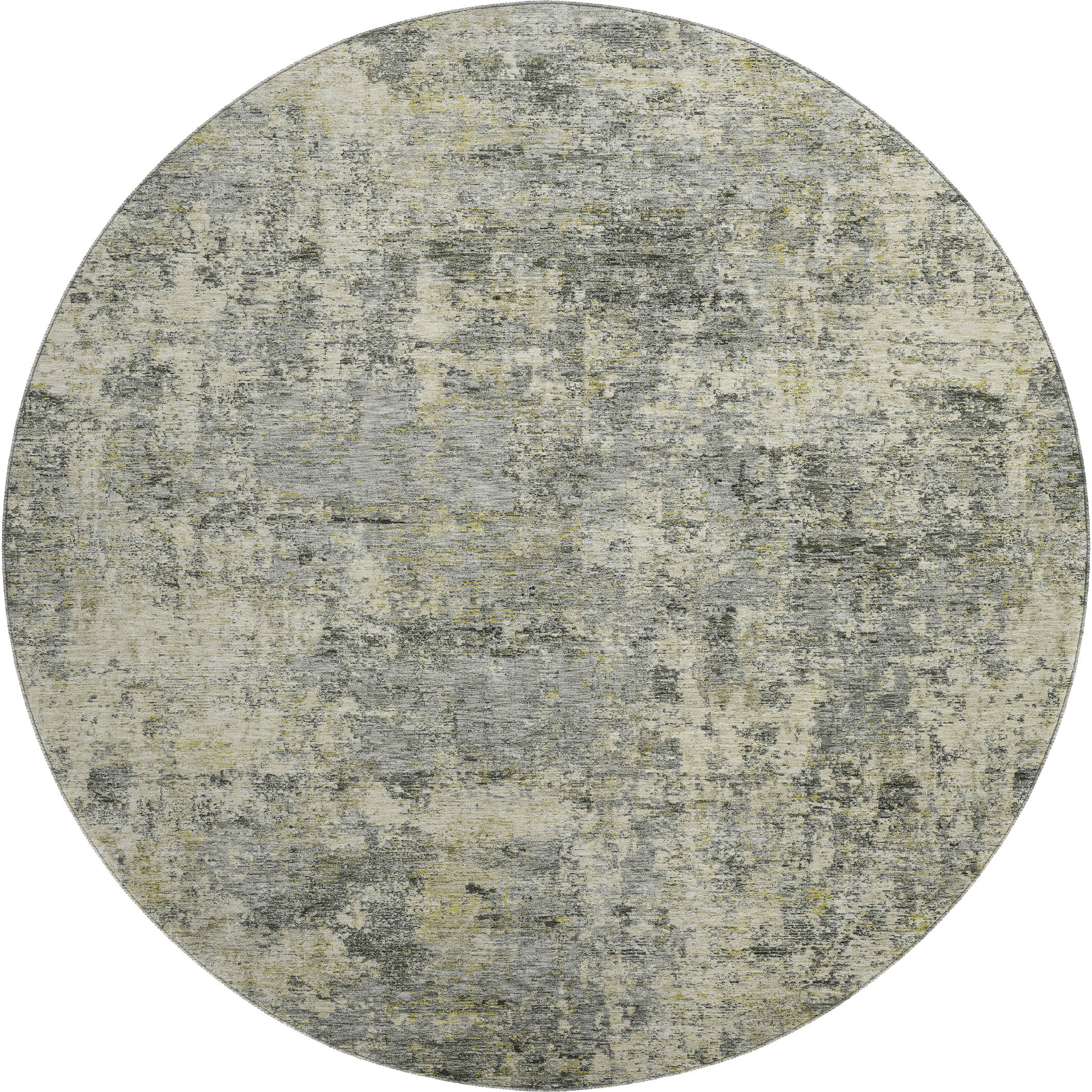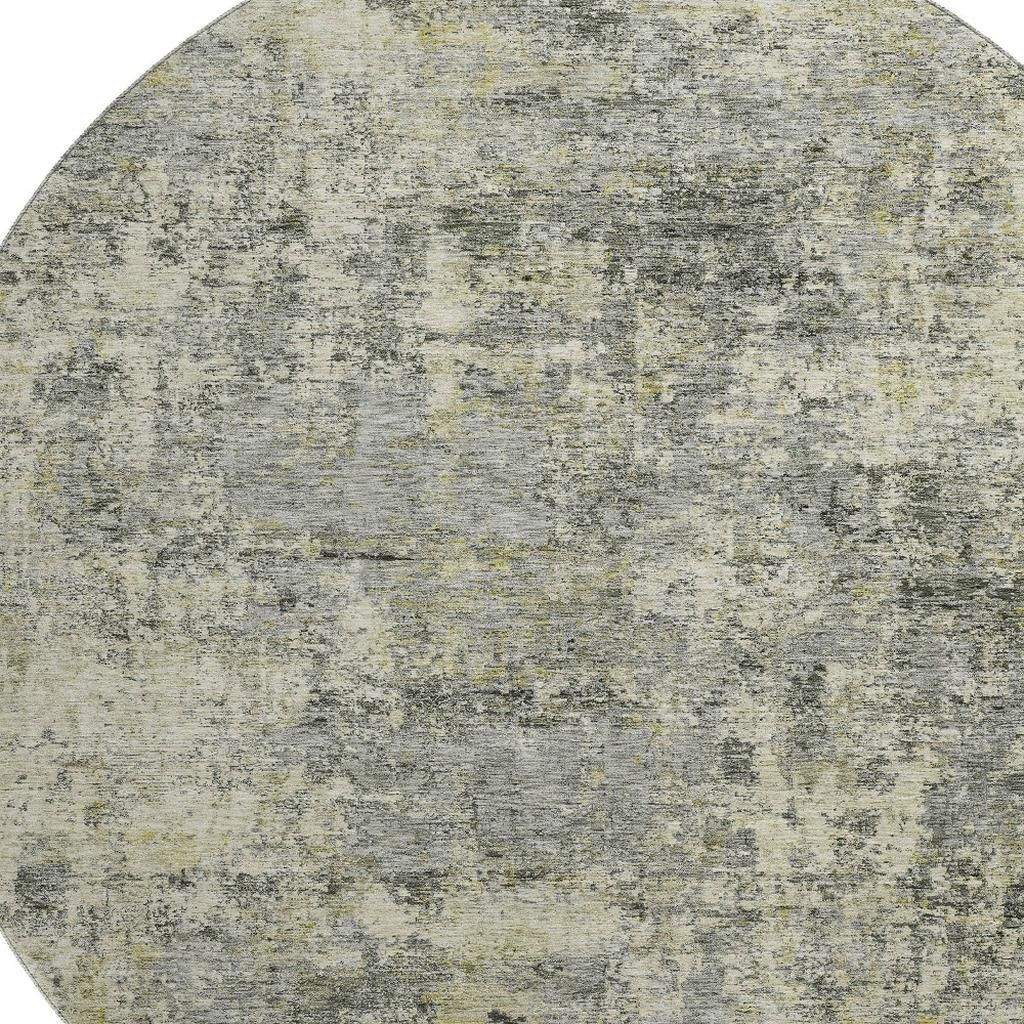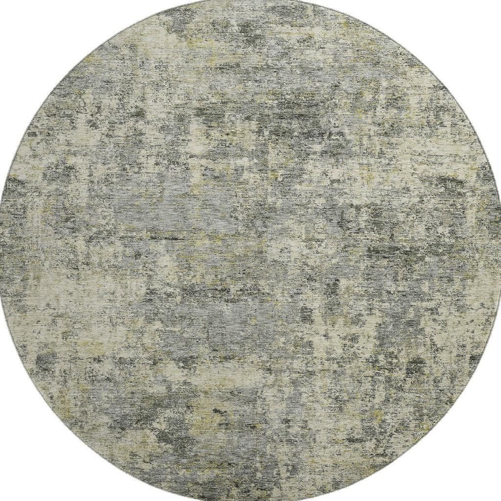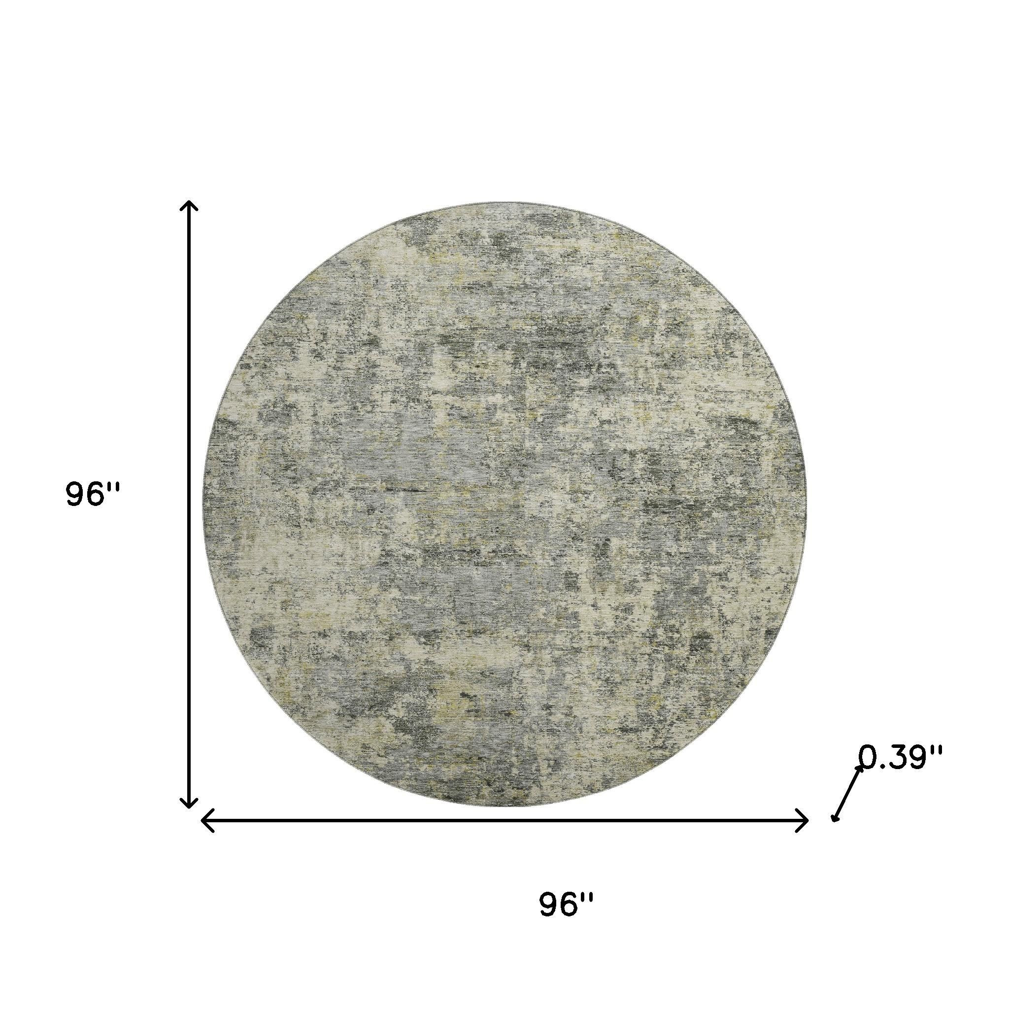 Set an inviting tone in your space with this 8-foot pewter and beige abstract washable round rug with uv protection. Ideal for spaces with kids and pets, this rug is stain resistant to help repel dirt and spilled liquids. Built to last, this rug crafted from polyester fibers is known for its durability and long lasting appeal. Rugs are a great way to showcase your style, hide imperfections, warm your home and reduce noise. This larger sized, transitional styled rug is ready to create a focal point or statement piece in your room. 96.00-inch h x 96.00-inch w x 0.39-inch d.