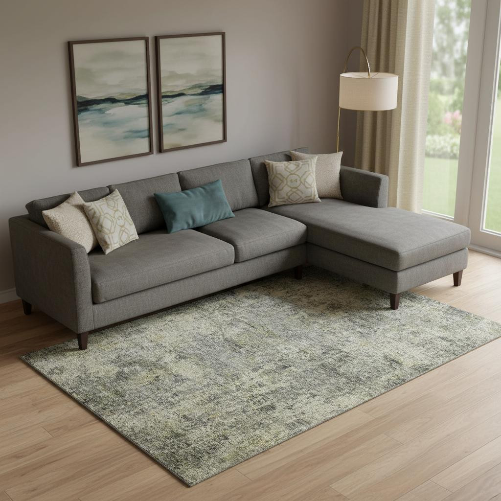 Add some artistry to your room with this 10-foot x 14-foot pewter and beige abstract washable area rug with uv protection. Ideal for spaces with kids and pets, this rug is stain resistant to help repel dirt and spilled liquids. Built to last, this rug crafted from polyester fibers is known for its durability and long lasting appeal. Rugs are a great way to showcase your style, hide imperfections, warm your home and reduce noise. This larger sized, transitional styled rug is ready to create a focal point or statement piece in your room. 120.00-inch h x 168.00-inch w x 0.39-inch d.