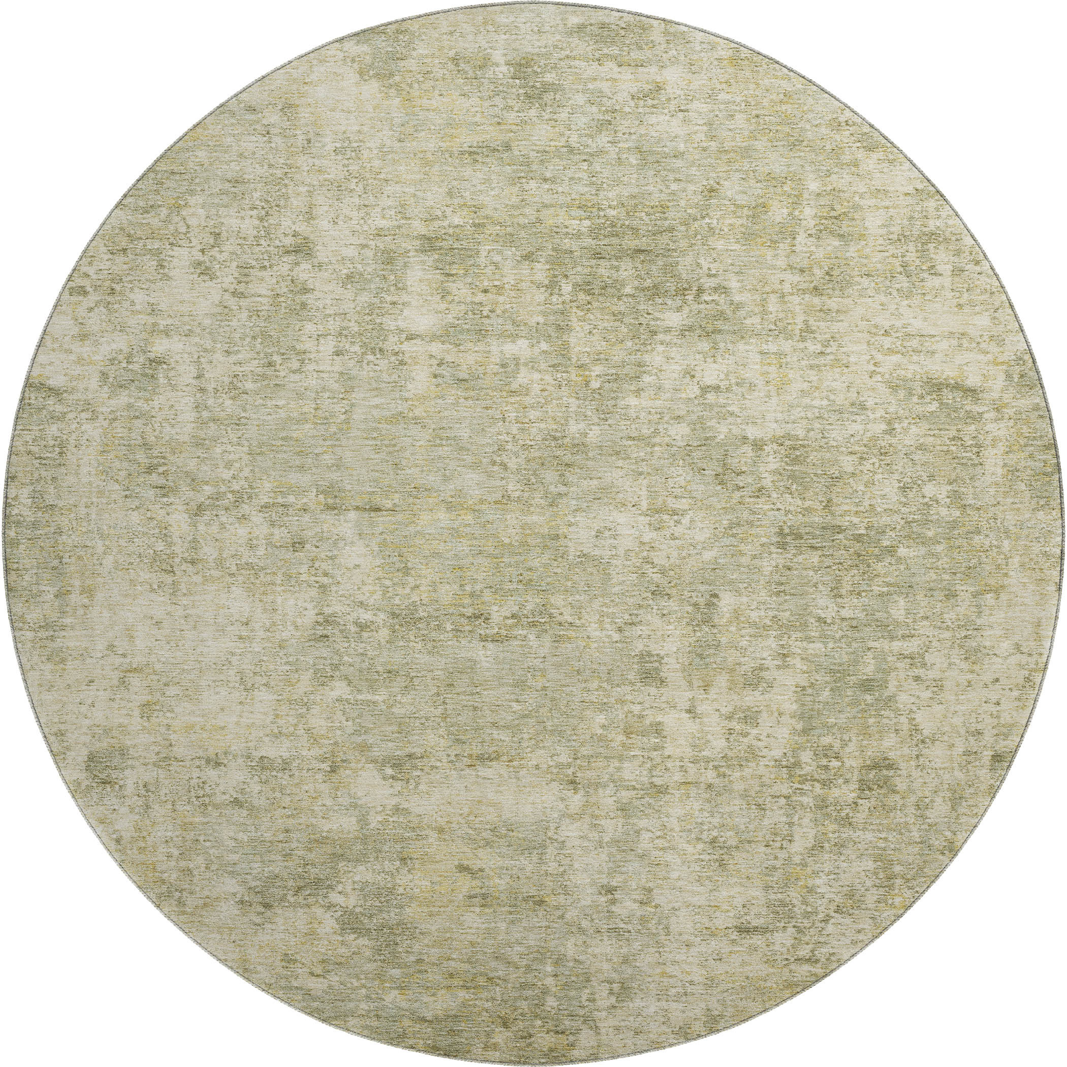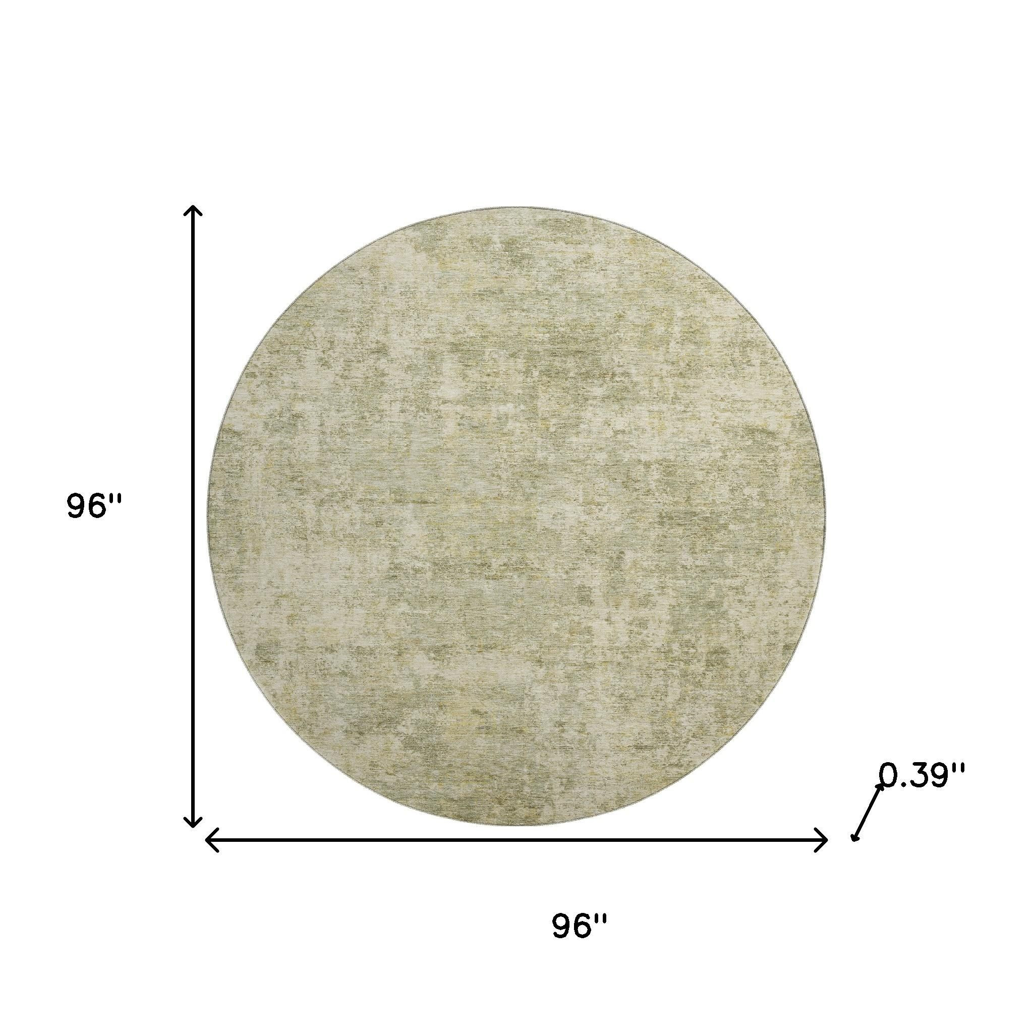 Set an inviting tone in your space with this 8-foot sage and beige abstract washable round rug with uv protection. Ideal for spaces with kids and pets, this rug is stain resistant to help repel dirt and spilled liquids. Built to last, this rug crafted from polyester fibers is known for its durability and long lasting appeal. Rugs are a great way to showcase your style, hide imperfections, warm your home and reduce noise. This larger sized, transitional styled rug is ready to create a focal point or statement piece in your room. 96.00-inch h x 96.00-inch w x 0.39-inch d.