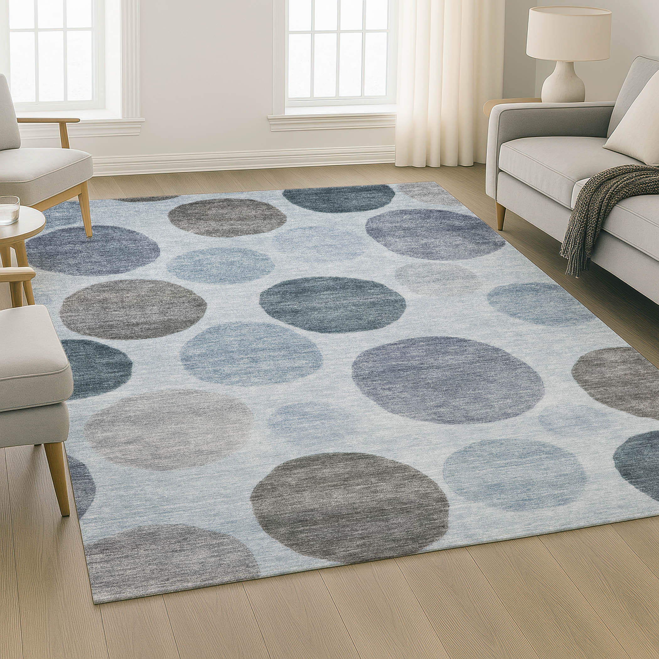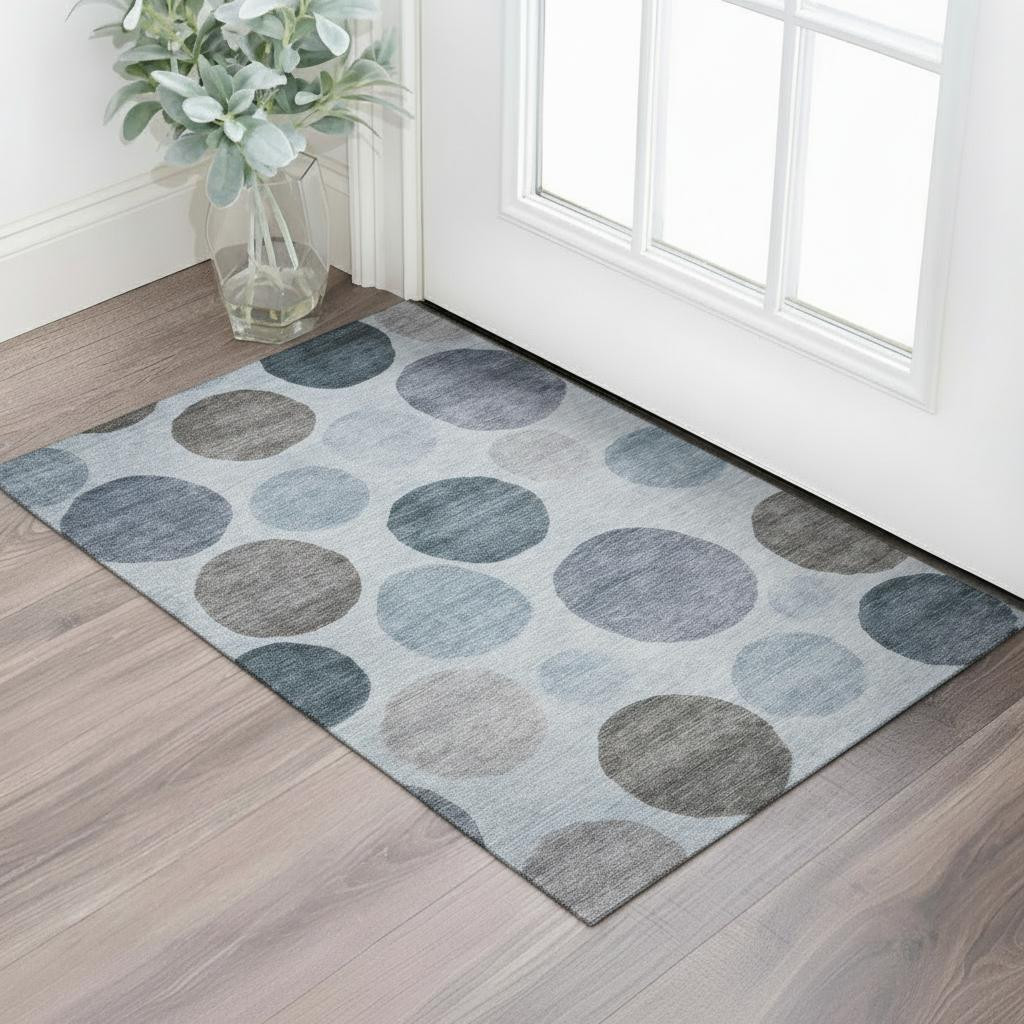 Add some artistry to your room with this 3-foot x 5-foot blue and gray geometric washable area rug with uv protection. Ideal for spaces with kids and pets, this rug is stain resistant to help repel dirt and spilled liquids. Built to last, this rug crafted from polyester fibers is known for its durability and long lasting appeal. Rugs are a great way to showcase your style, hide imperfections, warm your home and reduce noise. This smaller sized, transitional styled rug is just what you need for your walkway, bedside, in front of door, cabinet, refrigerator, or chair. 36.00-inch h x 60.00-inch w x 0.39-inch d.