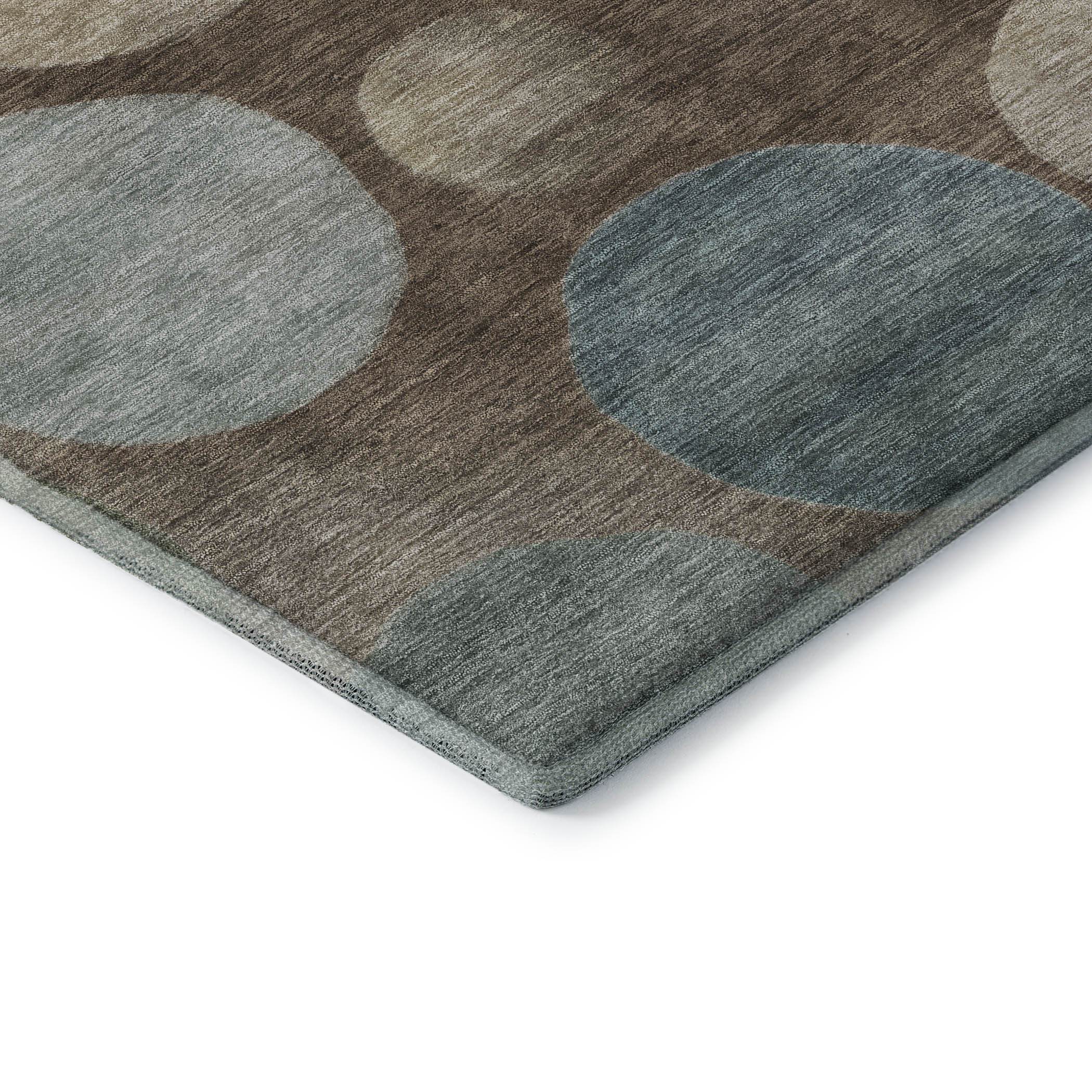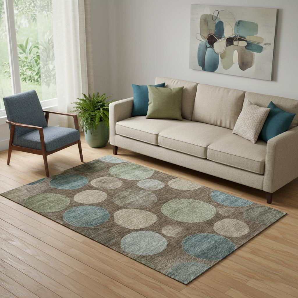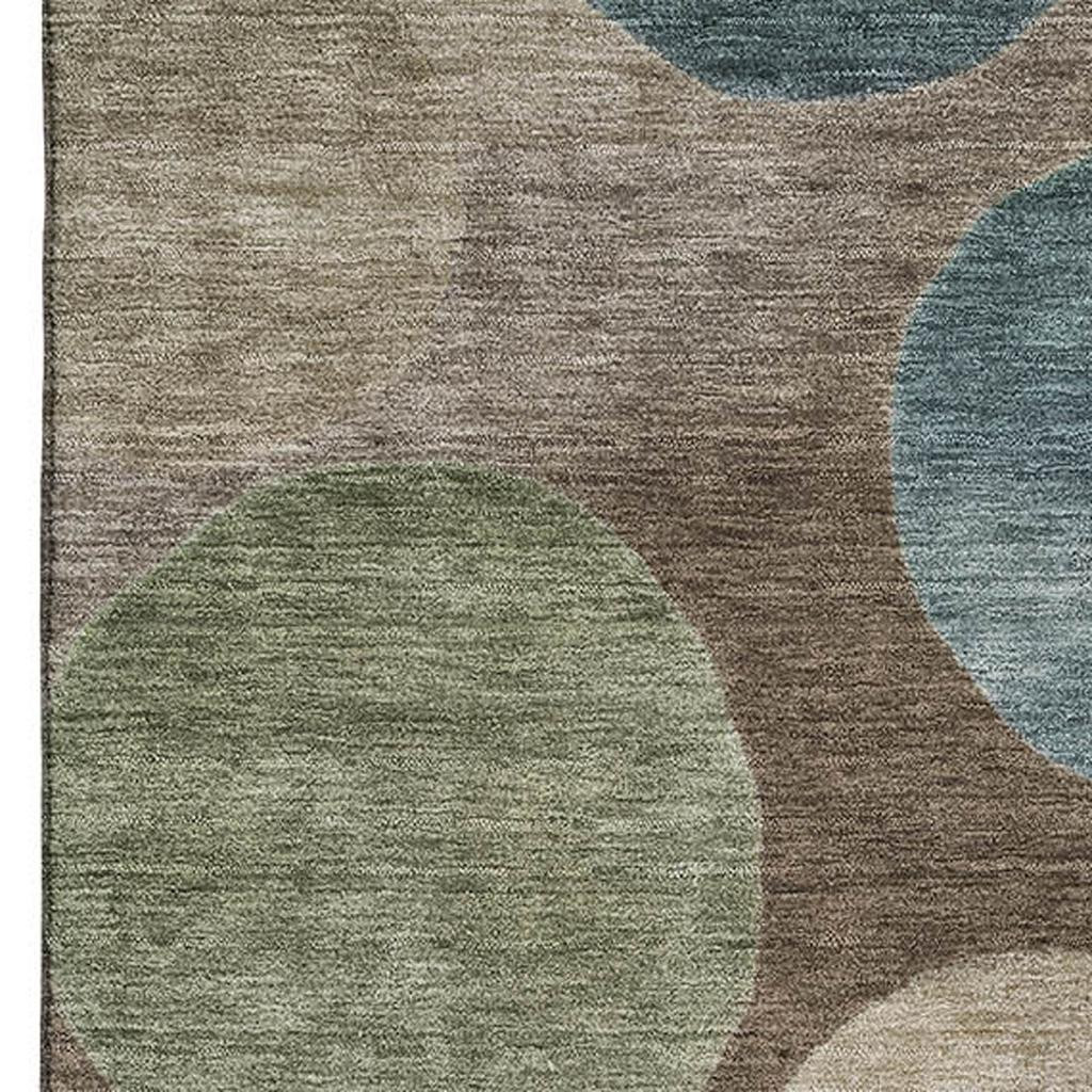 This 5-foot x 8-foot chocolate and teal geometric washable area rug with uv protection, is a great way to add warmth to a room. Ideal for spaces with kids and pets, this rug is stain resistant to help repel dirt and spilled liquids. Built to last, this rug crafted from polyester fibers is known for its durability and long lasting appeal. Rugs are a great way to showcase your style, hide imperfections, warm your home and reduce noise. This larger sized, transitional styled rug is ready to create a focal point or statement piece in your room. 60.00-inch h x 90.00-inch w x 0.39-inch d.