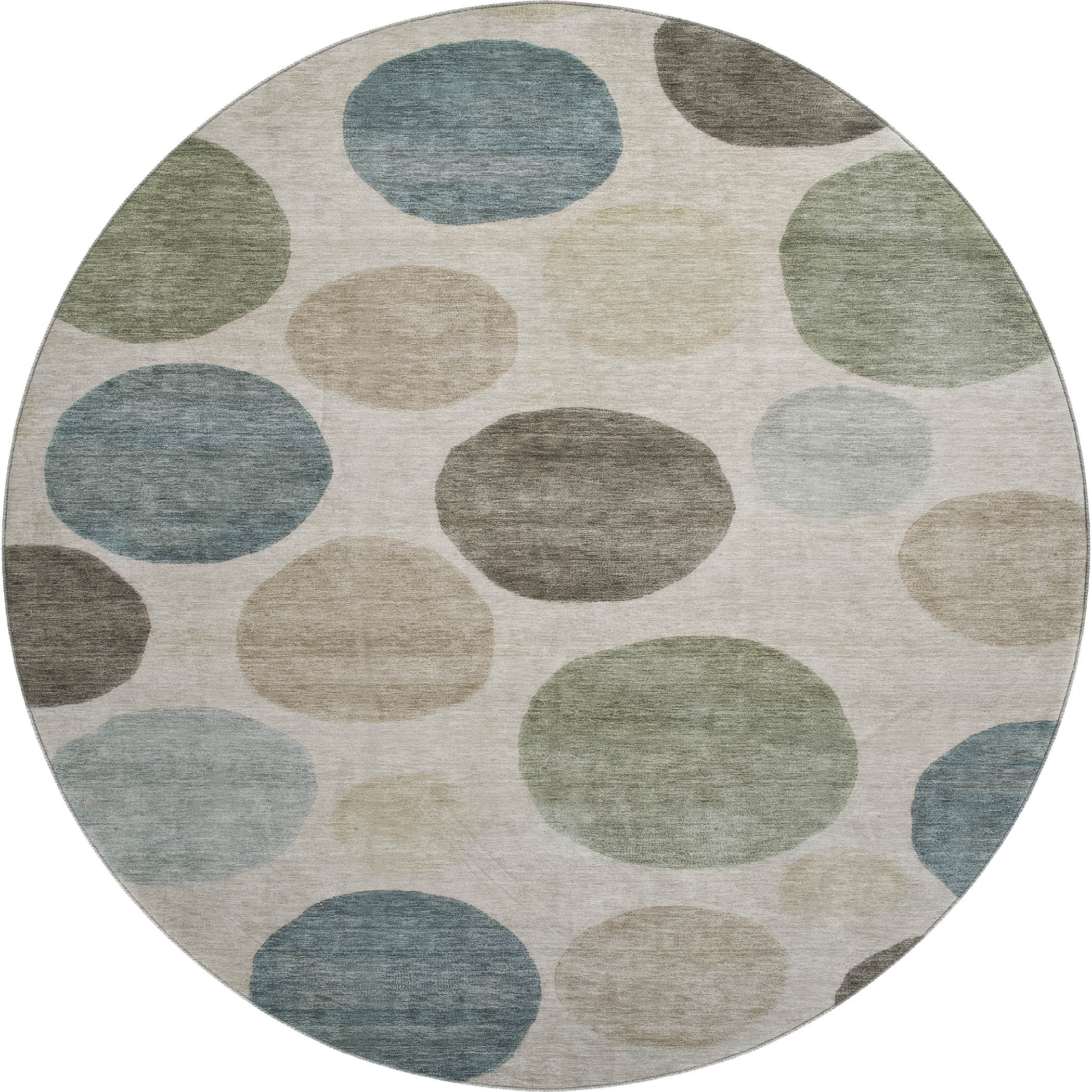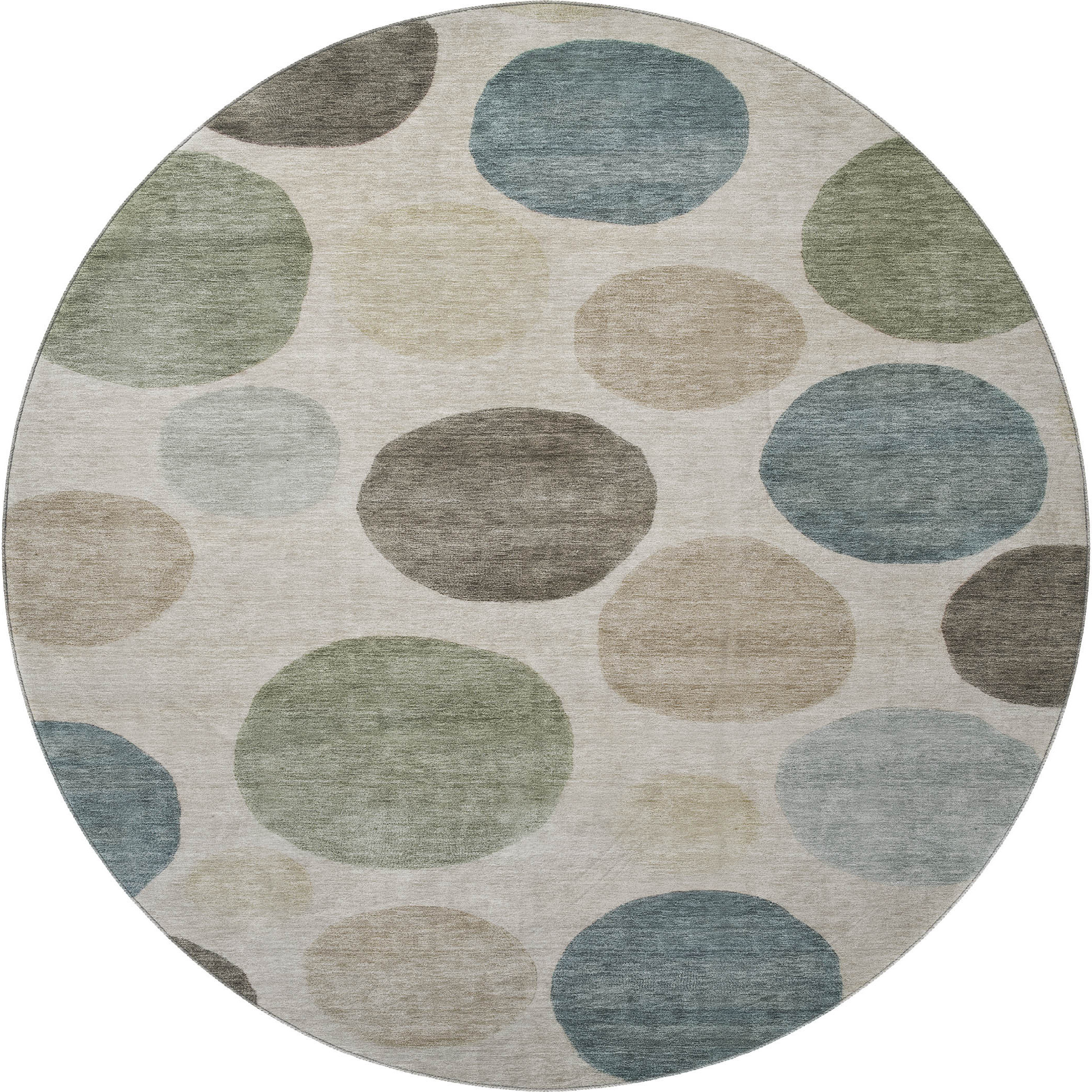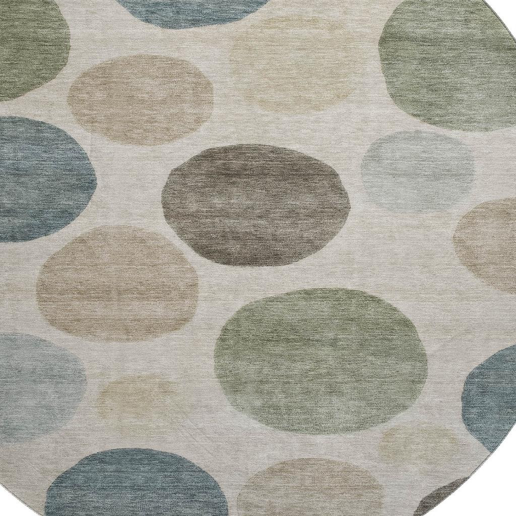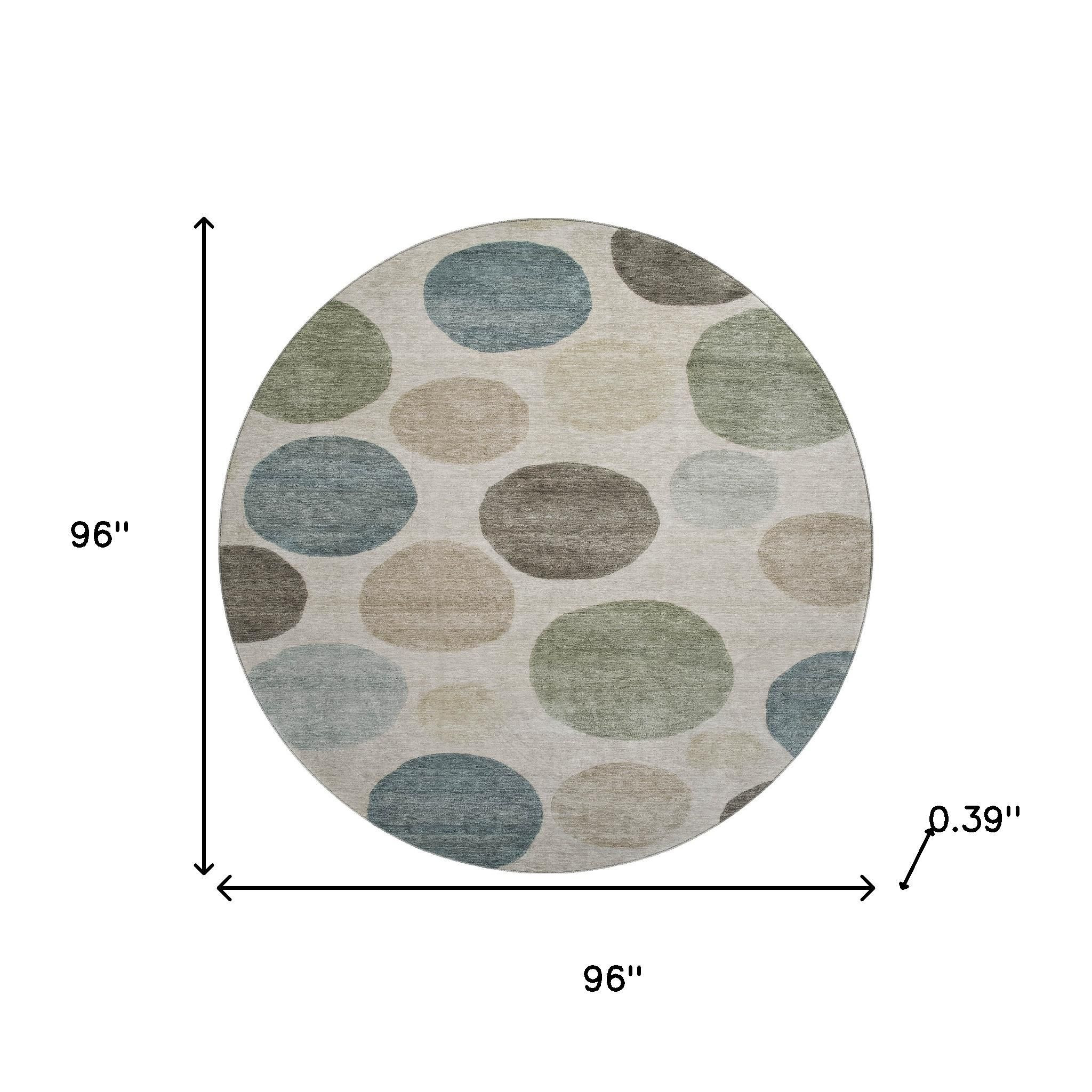 Add great coloration and comfortable texture to your space with this 8-foot khaki and teal geometric washable round rug with uv protection. Ideal for spaces with kids and pets, this rug is stain resistant to help repel dirt and spilled liquids. Built to last, this rug crafted from polyester fibers is known for its durability and long lasting appeal. Rugs are a great way to showcase your style, hide imperfections, warm your home and reduce noise. This larger sized, transitional styled rug is ready to create a focal point or statement piece in your room. 96.00-inch h x 96.00-inch w x 0.39-inch d.