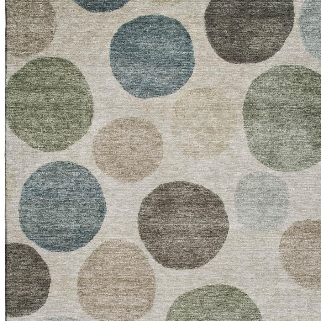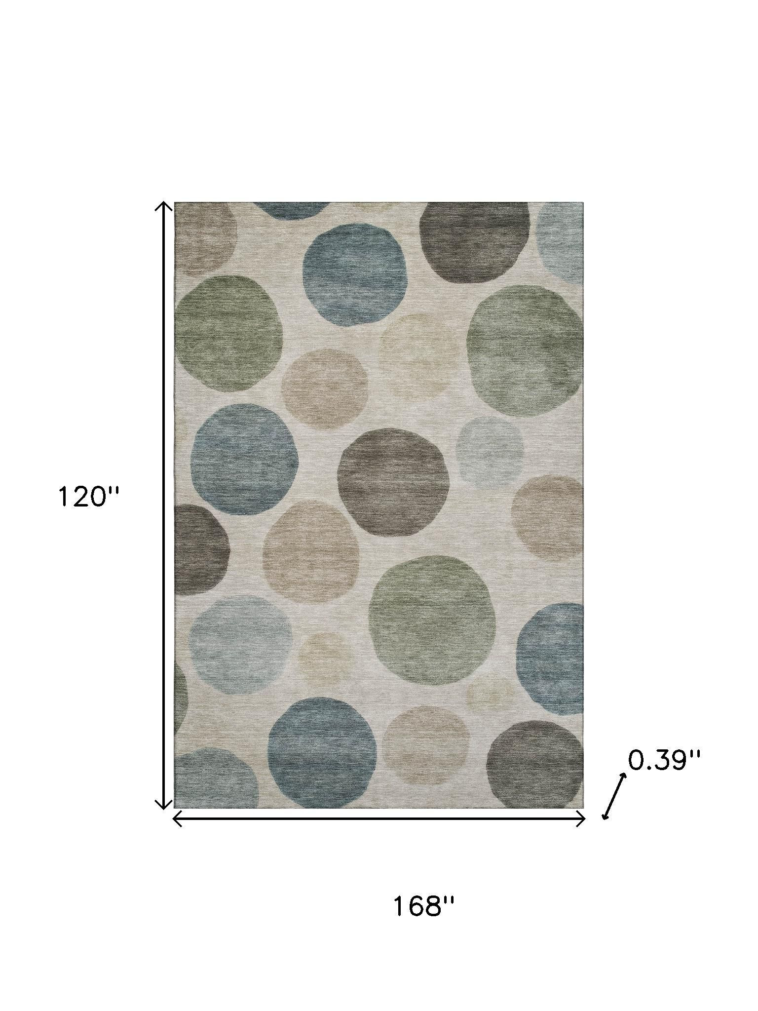 Set an inviting tone in your space with this 10-foot x 14-foot khaki and teal geometric washable area rug with uv protection. Ideal for spaces with kids and pets, this rug is stain resistant to help repel dirt and spilled liquids. Built to last, this rug crafted from polyester fibers is known for its durability and long lasting appeal. Rugs are a great way to showcase your style, hide imperfections, warm your home and reduce noise. This larger sized, transitional styled rug is ready to create a focal point or statement piece in your room. 120.00-inch h x 168.00-inch w x 0.39-inch d.