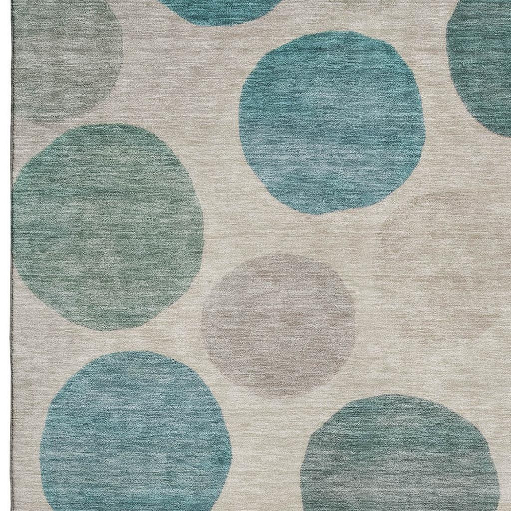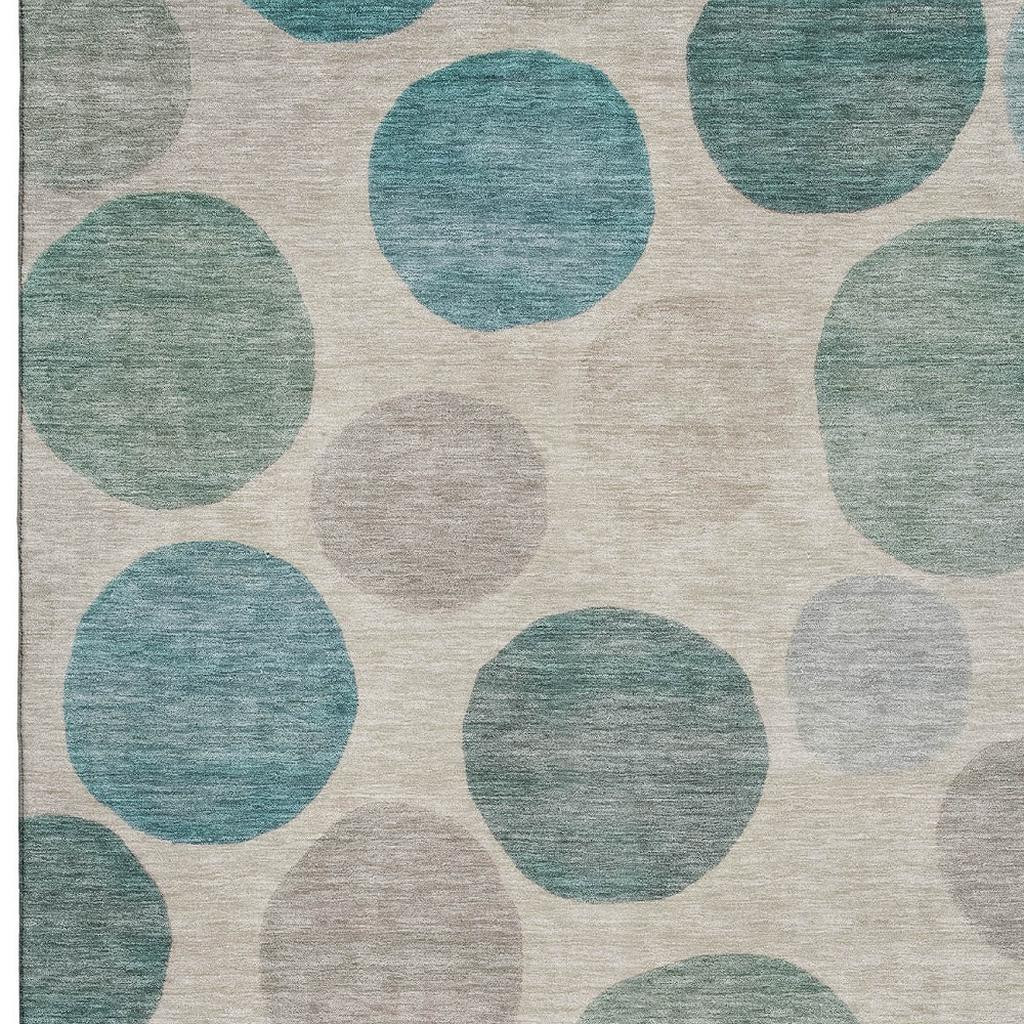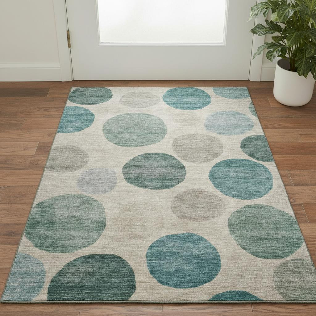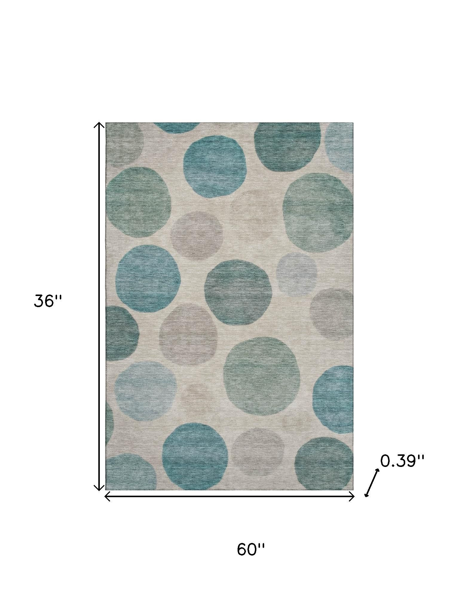 Add some artistry to your room with this 3-foot x 5-foot teal and ivory geometric washable area rug with uv protection. Ideal for spaces with kids and pets, this rug is stain resistant to help repel dirt and spilled liquids. Built to last, this rug crafted from polyester fibers is known for its durability and long lasting appeal. Rugs are a great way to showcase your style, hide imperfections, warm your home and reduce noise. This smaller sized, transitional styled rug is just what you need for your walkway, bedside, in front of door, cabinet, refrigerator, or chair. 36.00-inch h x 60.00-inch w x 0.39-inch d.