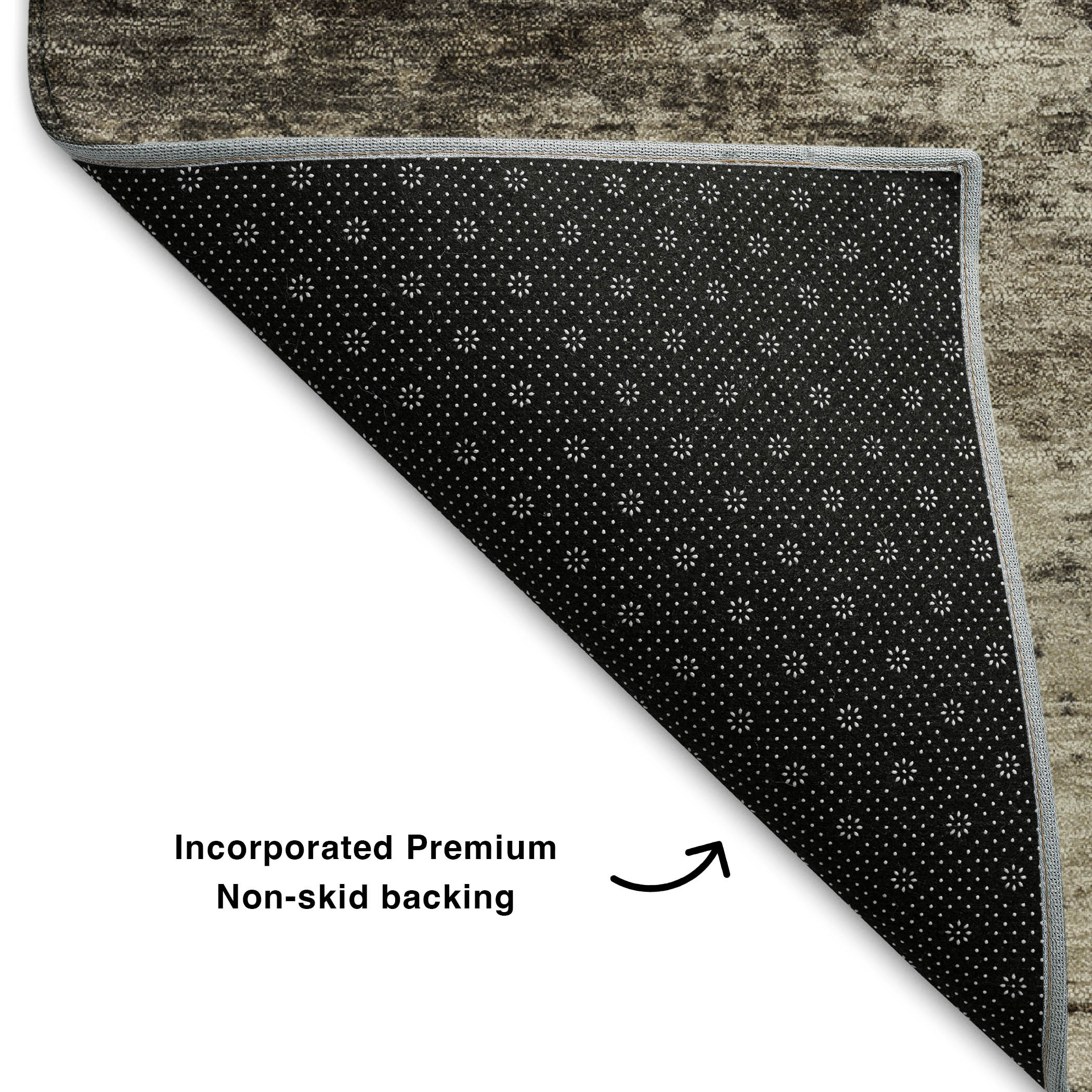 This 3-foot x 5-foot brown and beige abstract washable area rug with uv protection, is a great way to add warmth to a room. Ideal for spaces with kids and pets, this rug is stain resistant to help repel dirt and spilled liquids. Built to last, this rug crafted from polyester fibers is known for its durability and long lasting appeal. Rugs are a great way to showcase your style, hide imperfections, warm your home and reduce noise. This smaller sized, transitional styled rug is just what you need for your walkway, bedside, in front of door, cabinet, refrigerator, or chair. 36.00-inch h x 60.00-inch w x 0.39-inch d.
