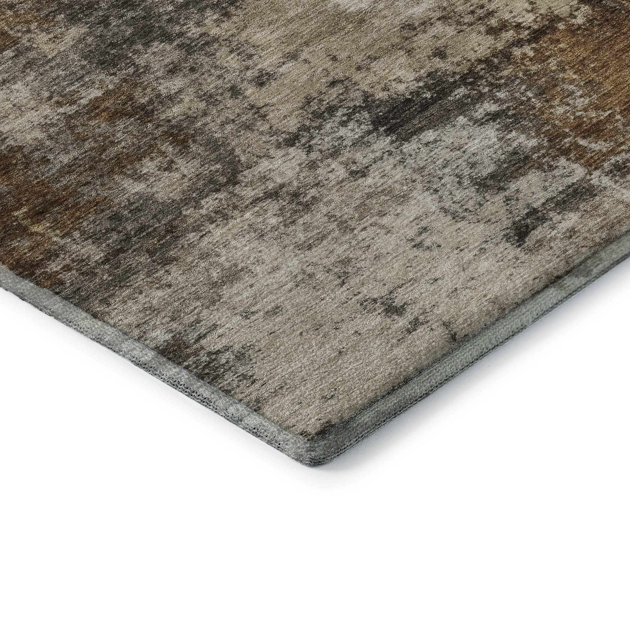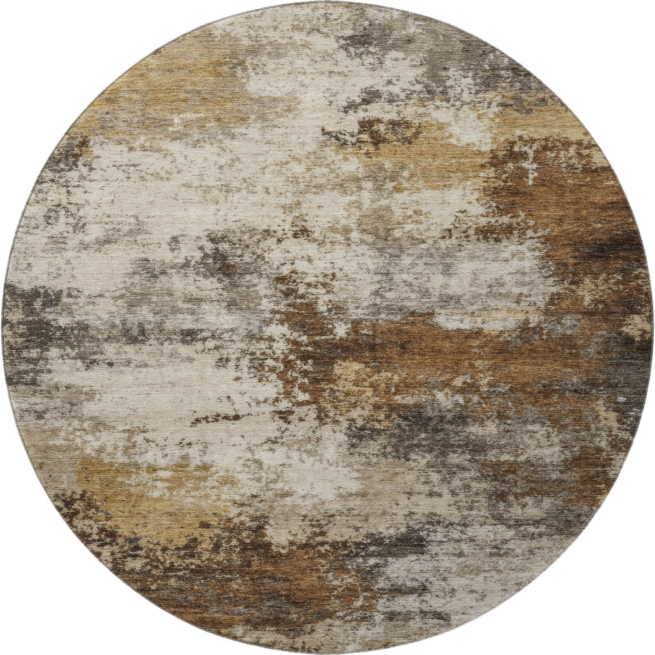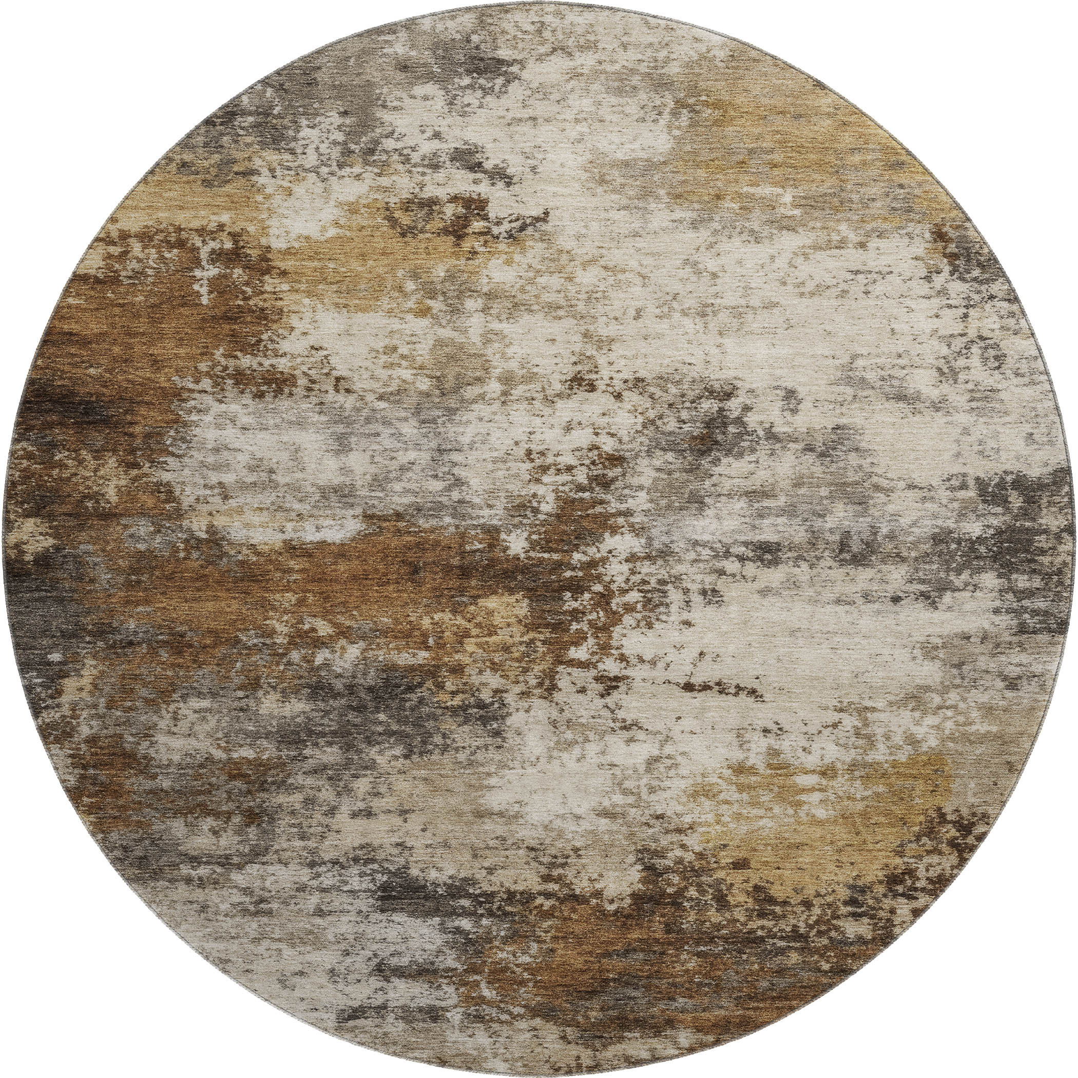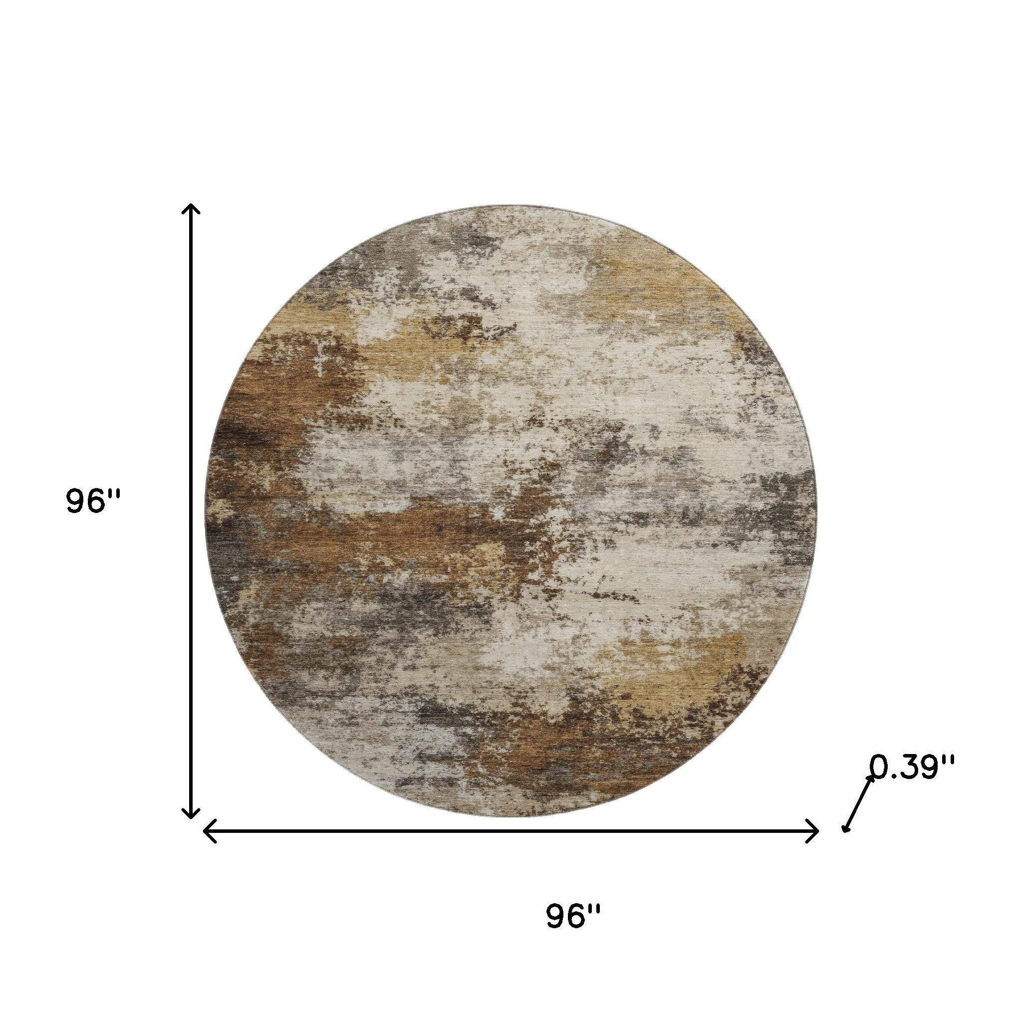 Set an inviting tone in your space with this 8-foot brown and beige abstract washable round rug with uv protection. Ideal for spaces with kids and pets, this rug is stain resistant to help repel dirt and spilled liquids. Built to last, this rug crafted from polyester fibers is known for its durability and long lasting appeal. Rugs are a great way to showcase your style, hide imperfections, warm your home and reduce noise. This larger sized, transitional styled rug is ready to create a focal point or statement piece in your room. 96.00-inch h x 96.00-inch w x 0.39-inch d.