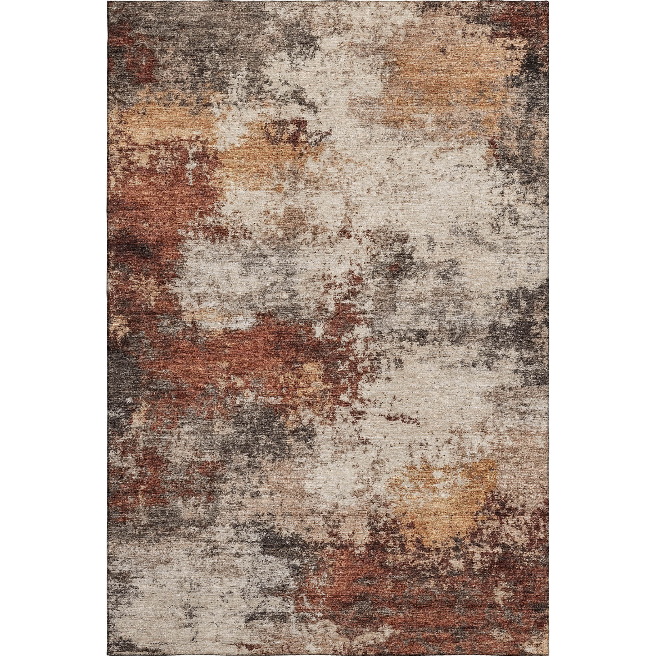 Add some artistry to your room with this 9-foot x 12-foot rust and beige abstract washable area rug with uv protection. Ideal for spaces with kids and pets, this rug is stain resistant to help repel dirt and spilled liquids. Built to last, this rug crafted from polyester fibers is known for its durability and long lasting appeal. Rugs are a great way to showcase your style, hide imperfections, warm your home and reduce noise. This larger sized, transitional styled rug is ready to create a focal point or statement piece in your room. 108.00-inch h x 144.00-inch w x 0.39-inch d.