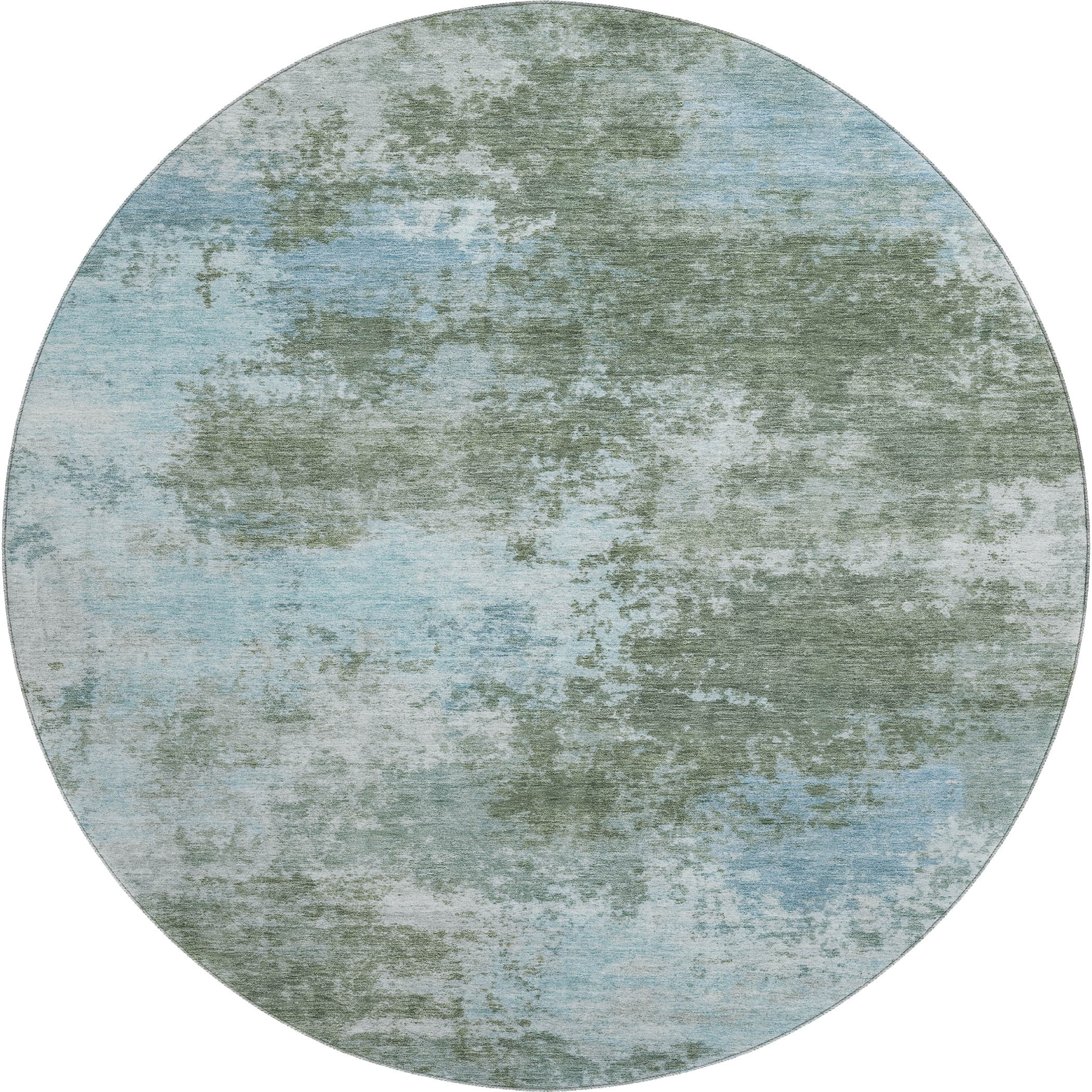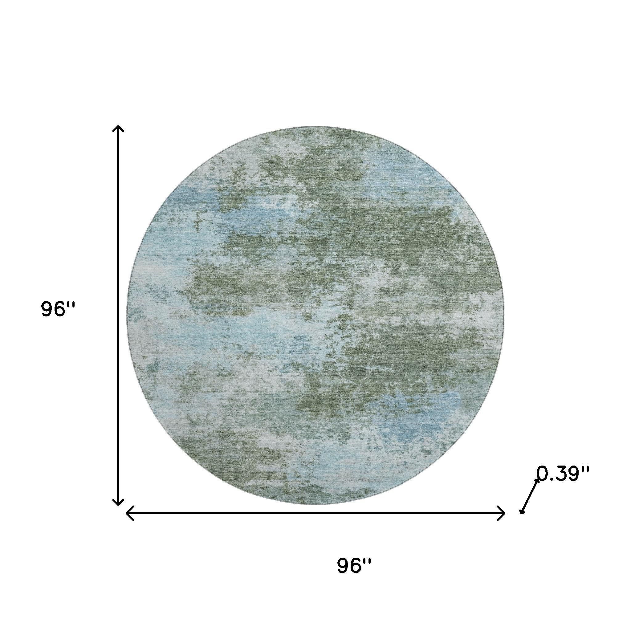 Set an inviting tone in your space with this 8-foot sage and sky blue abstract washable round rug with uv protection. Ideal for spaces with kids and pets, this rug is stain resistant to help repel dirt and spilled liquids. Built to last, this rug crafted from polyester fibers is known for its durability and long lasting appeal. Rugs are a great way to showcase your style, hide imperfections, warm your home and reduce noise. This larger sized, transitional styled rug is ready to create a focal point or statement piece in your room. 96.00-inch h x 96.00-inch w x 0.39-inch d.