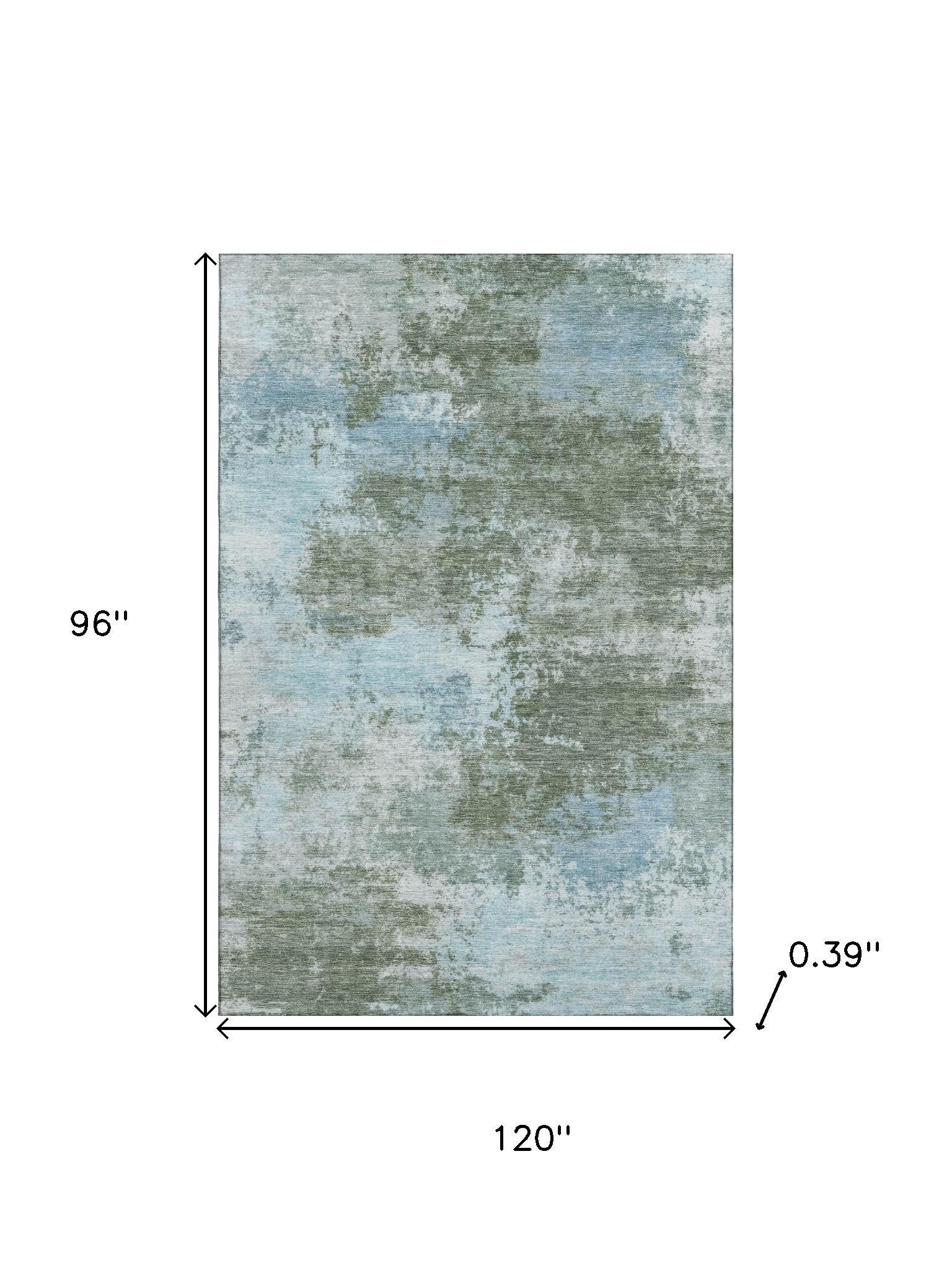 Set an inviting tone in your space with this 8-foot x 10-foot sage and sky blue abstract washable area rug with uv protection. Ideal for spaces with kids and pets, this rug is stain resistant to help repel dirt and spilled liquids. Built to last, this rug crafted from polyester fibers is known for its durability and long lasting appeal. Rugs are a great way to showcase your style, hide imperfections, warm your home and reduce noise. This larger sized, transitional styled rug is ready to create a focal point or statement piece in your room. 96.00-inch h x 120.00-inch w x 0.39-inch d.