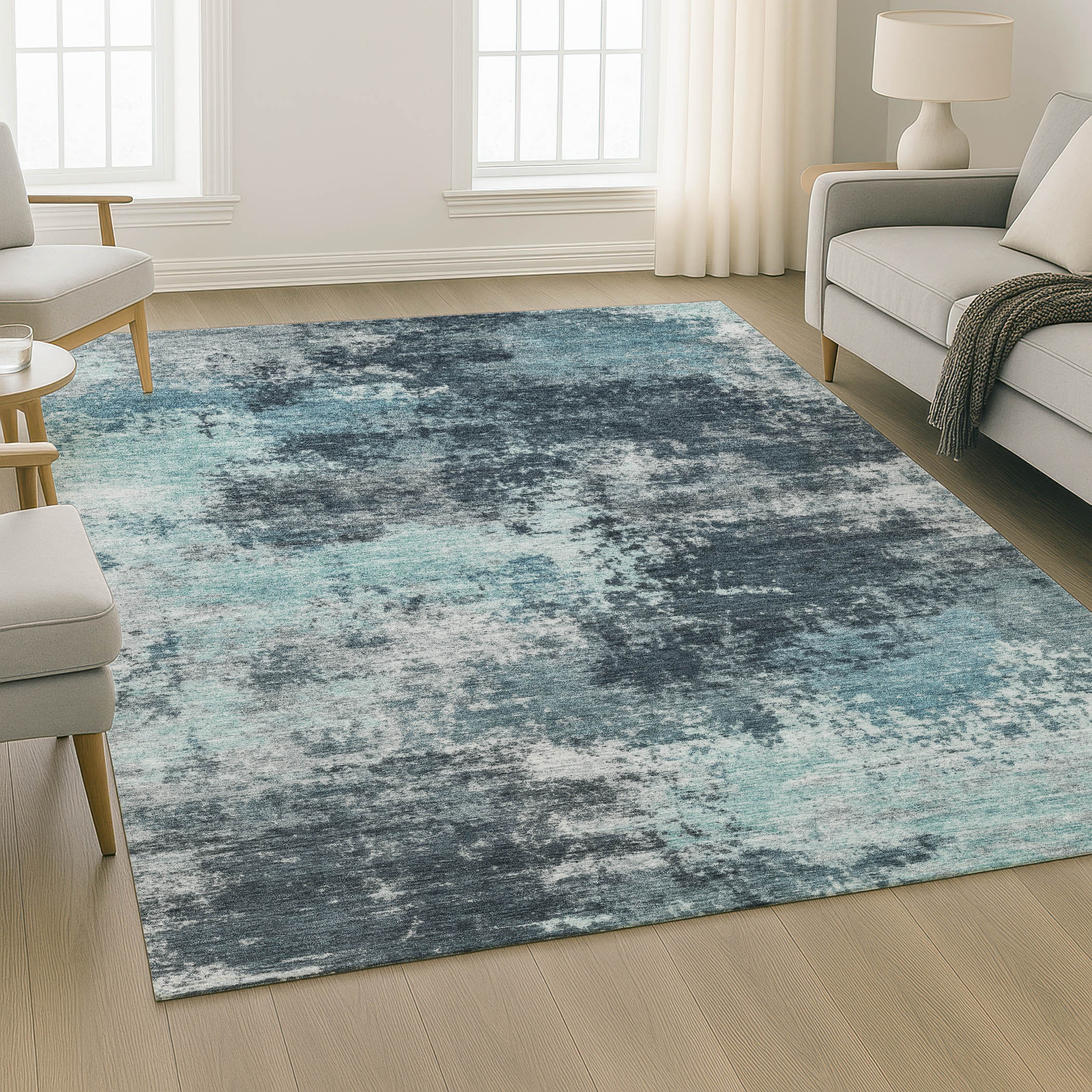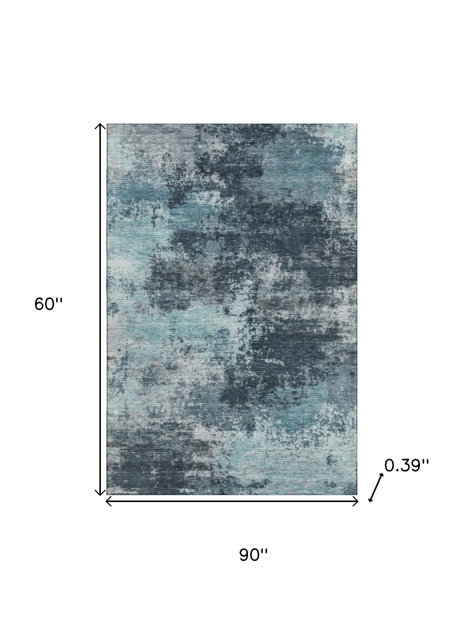 Set an inviting tone in your space with this 5-foot x 8-foot teal and aqua abstract washable area rug with uv protection. Ideal for spaces with kids and pets, this rug is stain resistant to help repel dirt and spilled liquids. Built to last, this rug crafted from polyester fibers is known for its durability and long lasting appeal. Rugs are a great way to showcase your style, hide imperfections, warm your home and reduce noise. This larger sized, transitional styled rug is ready to create a focal point or statement piece in your room. 60.00-inch h x 90.00-inch w x 0.39-inch d.