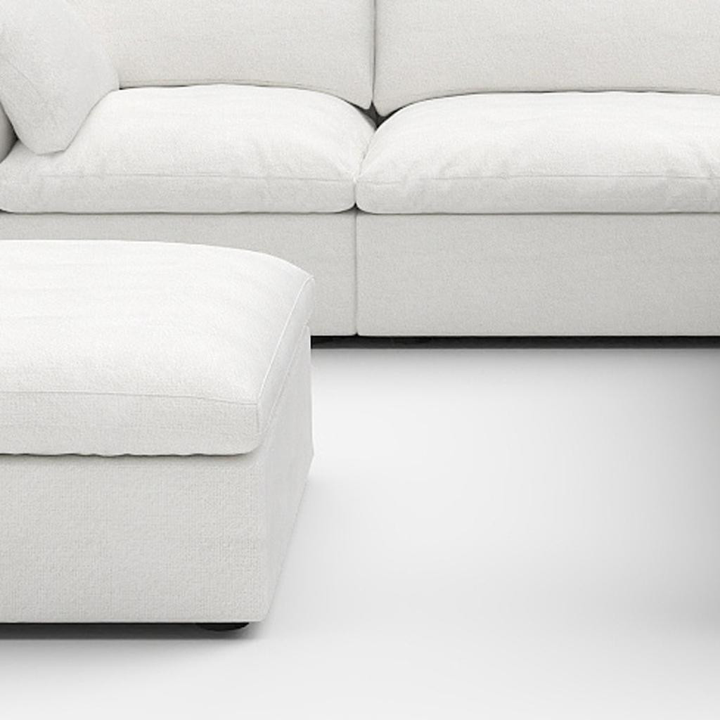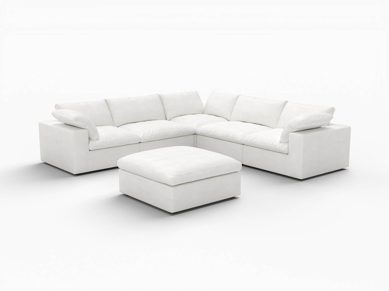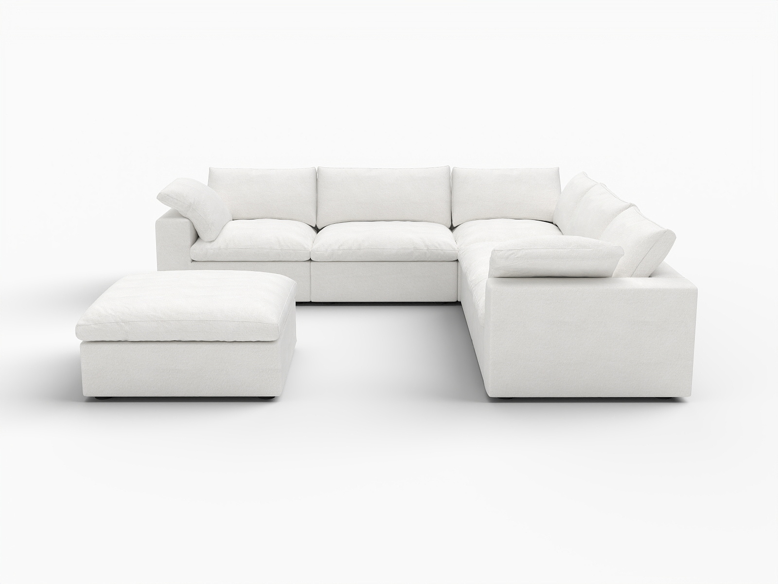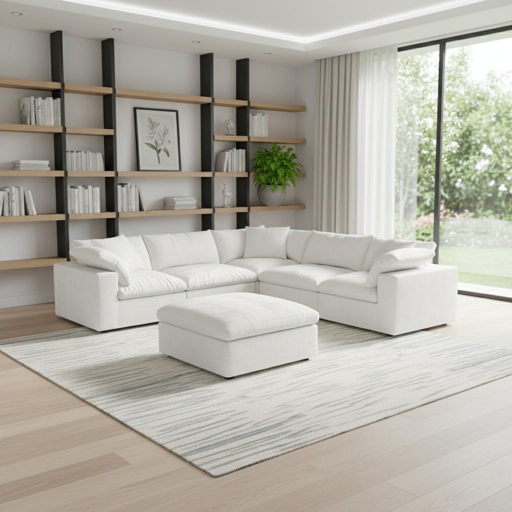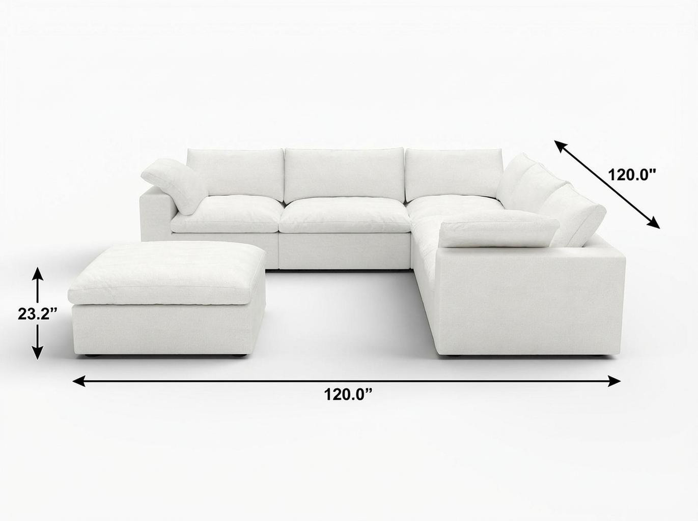 The white linen blend modular l shaped six piece corner sectional is spacious design meticulously crafted with extraordinary cushion comfort and ultimate durability so everyone in your home can have the best seat in the house. Solid colors give you lots of decorative options and are easy to work into your decor scheme. Track arms offer a comfy place to rest. A great showpiece for your room, this sectional is a must have. 23.20-inch h x 120.00-inch w x 120.00-inch d.