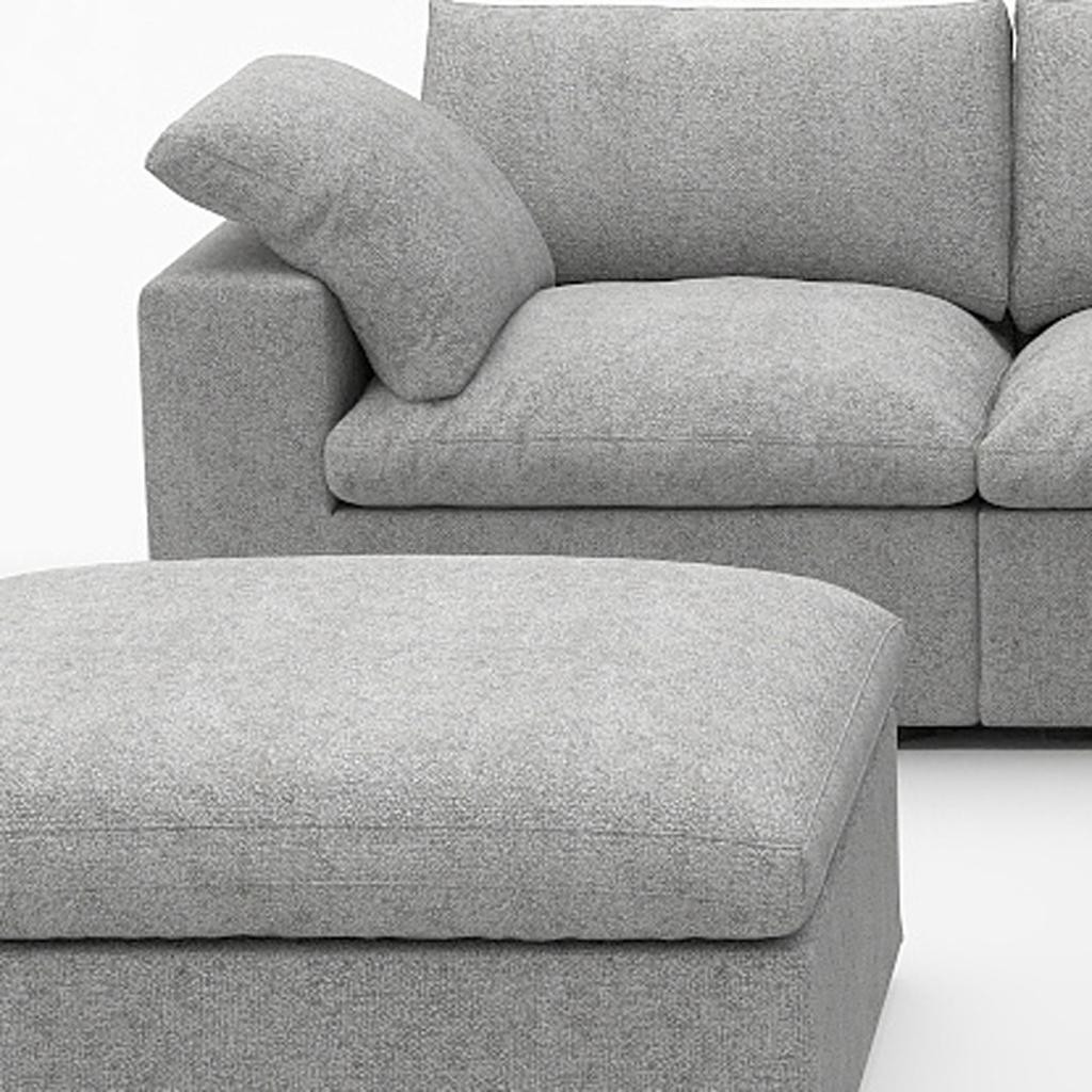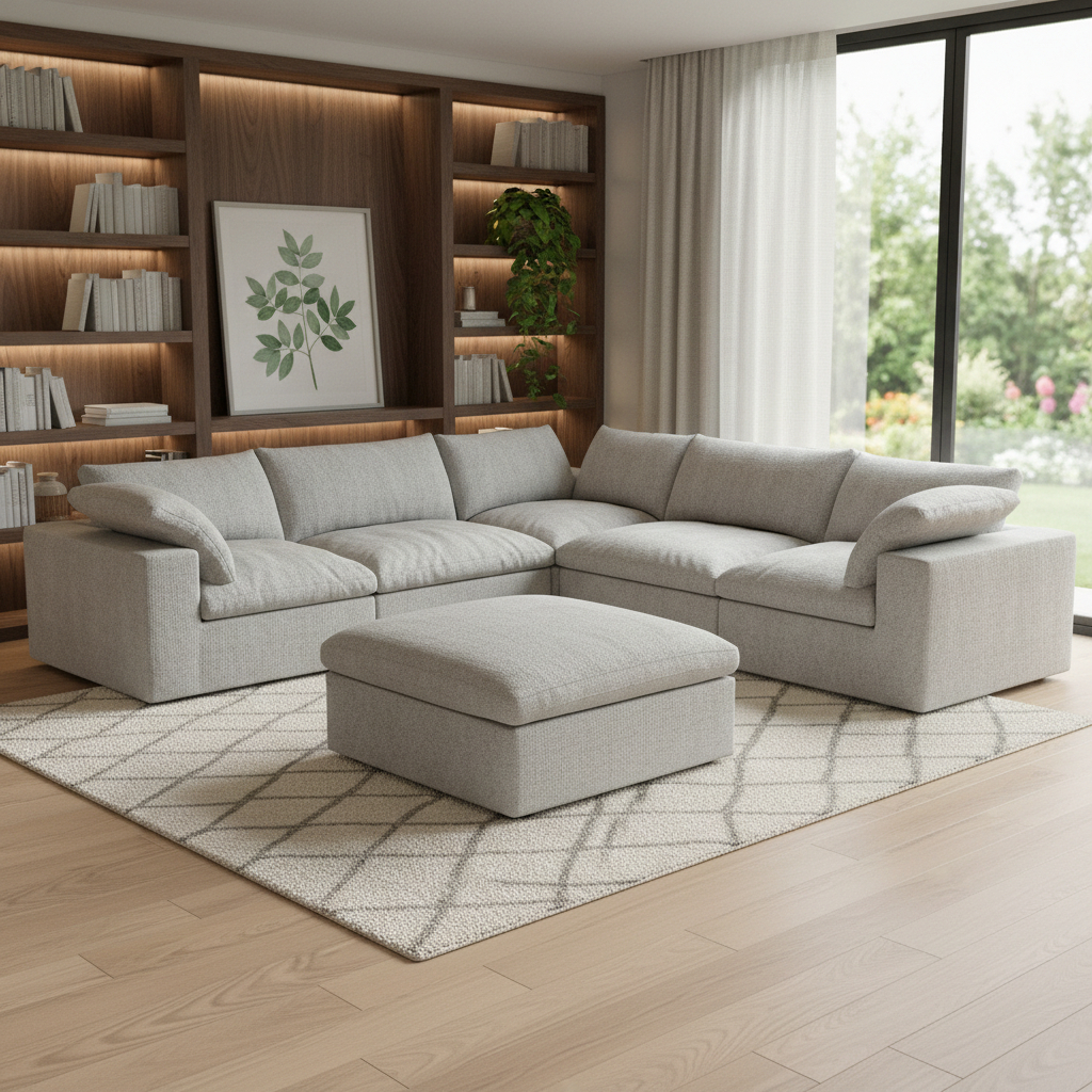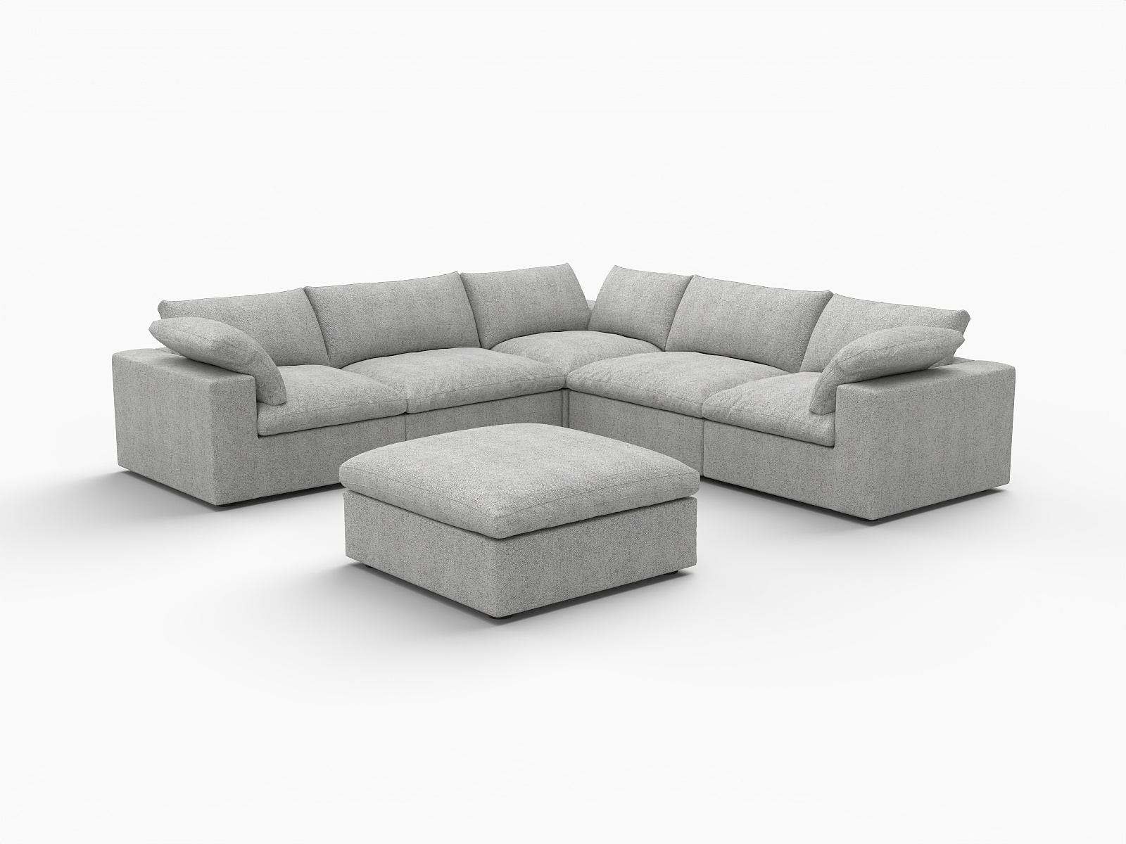 Designed for comfort and good looks, this light gray linen blend modular l shaped six piece corner sectional is a great option to anchor your space. Solid colors give you lots of decorative options and are easy to work into your decor scheme. Track arms offer a comfy place to rest. A great showpiece for your room, this sectional is a must have. 23.20-inch h x 120.00-inch w x 120.00-inch d.