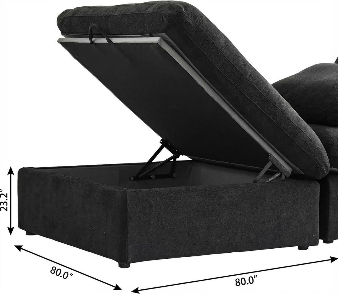 Transform your home's interior with this luxurious black linen blend modular l shaped three piece corner sectional. Solid colors give you lots of decorative options and are easy to work into your decor scheme. Track arms offer a comfy place to rest. A great showpiece for your room, this sectional is a must have. 23.20-inch h x 80.00-inch w x 80.00-inch d.
