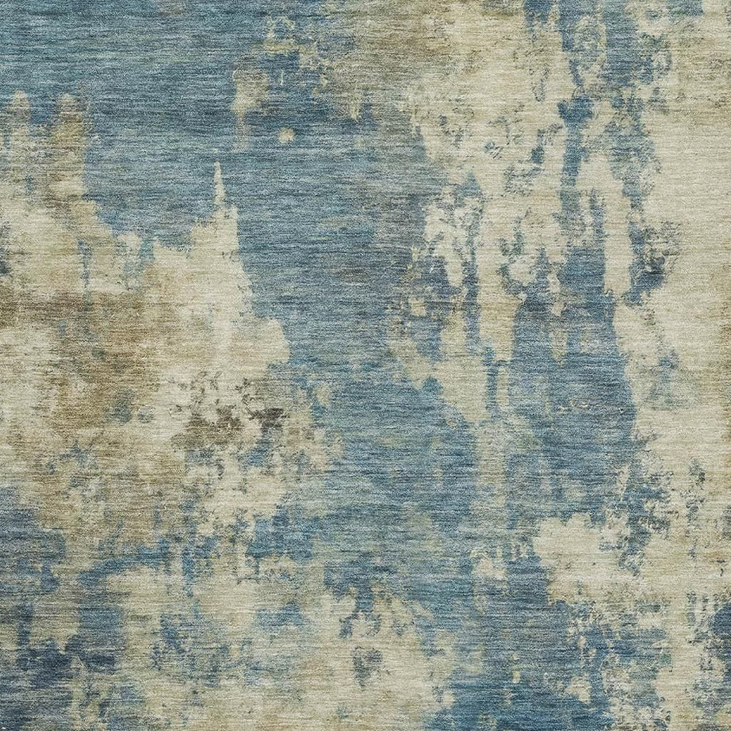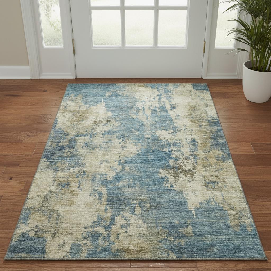 Set an inviting tone in your space with this 3-foot x 5-foot blue and taupe abstract washable area rug with uv protection. Ideal for spaces with kids and pets, this rug is stain resistant to help repel dirt and spilled liquids. Built to last, this rug crafted from polyester fibers is known for its durability and long lasting appeal. Rugs are a great way to showcase your style, hide imperfections, warm your home and reduce noise. This smaller sized, transitional styled rug is just what you need for your walkway, bedside, in front of door, cabinet, refrigerator, or chair. 36.00-inch h x 60.00-inch w x 0.39-inch d.