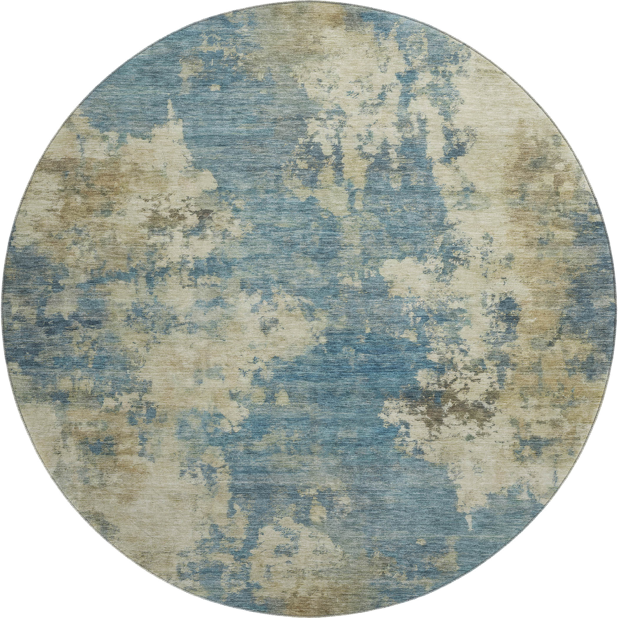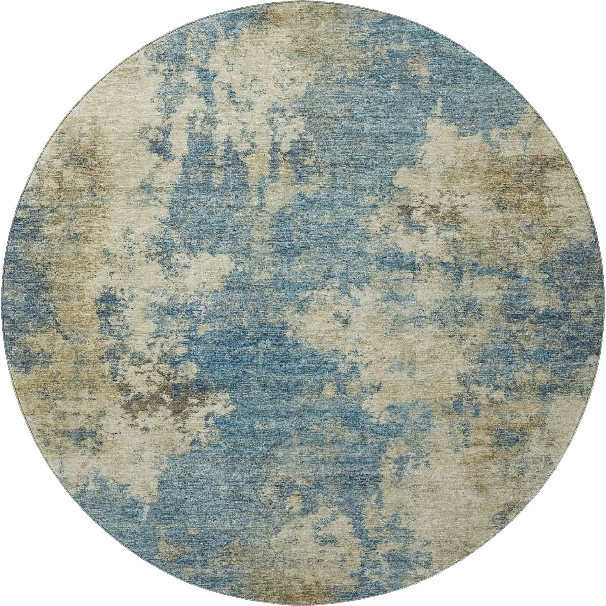 Set an inviting tone in your space with this 8-foot blue and taupe abstract washable round rug with uv protection. Ideal for spaces with kids and pets, this rug is stain resistant to help repel dirt and spilled liquids. Built to last, this rug crafted from polyester fibers is known for its durability and long lasting appeal. Rugs are a great way to showcase your style, hide imperfections, warm your home and reduce noise. This larger sized, transitional styled rug is ready to create a focal point or statement piece in your room. 96.00-inch h x 96.00-inch w x 0.39-inch d.