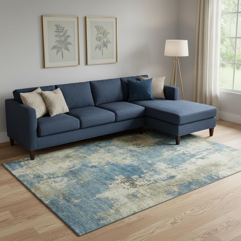 This 8-foot x 10-foot blue and taupe abstract washable area rug with uv protection, is a great way to add warmth to a room. Ideal for spaces with kids and pets, this rug is stain resistant to help repel dirt and spilled liquids. Built to last, this rug crafted from polyester fibers is known for its durability and long lasting appeal. Rugs are a great way to showcase your style, hide imperfections, warm your home and reduce noise. This larger sized, transitional styled rug is ready to create a focal point or statement piece in your room. 96.00-inch h x 120.00-inch w x 0.39-inch d.