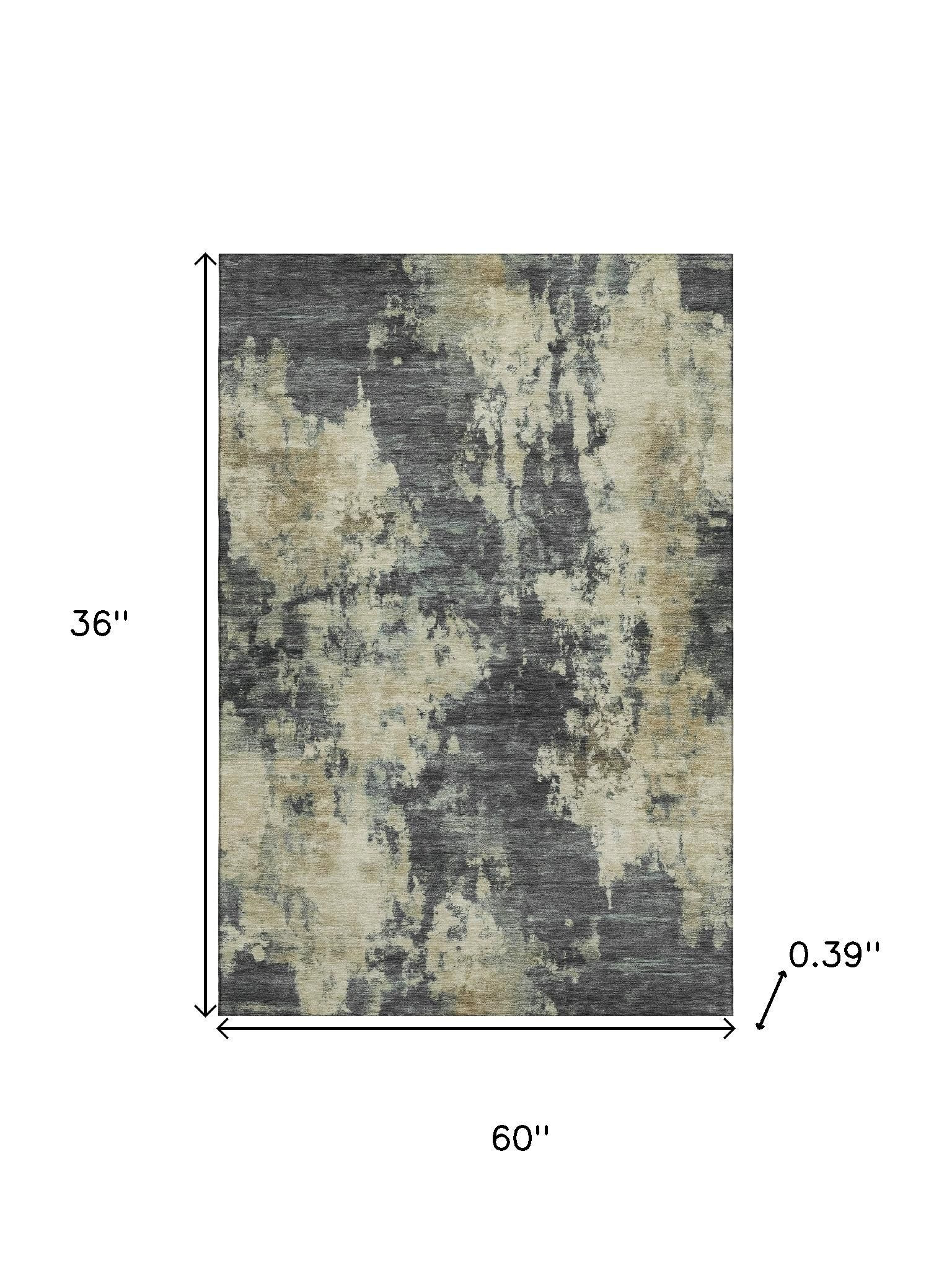 This 3-foot x 5-foot gray and beige abstract washable area rug with uv protection, is a great way to add warmth to a room. Ideal for spaces with kids and pets, this rug is stain resistant to help repel dirt and spilled liquids. Built to last, this rug crafted from polyester fibers is known for its durability and long lasting appeal. Rugs are a great way to showcase your style, hide imperfections, warm your home and reduce noise. This smaller sized, transitional styled rug is just what you need for your walkway, bedside, in front of door, cabinet, refrigerator, or chair. 36.00-inch h x 60.00-inch w x 0.39-inch d.