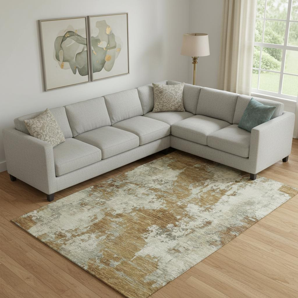 Add great coloration and comfortable texture to your space with this 9-foot x 12-foot terra cotta and beige abstract washable area rug with uv protection. Ideal for spaces with kids and pets, this rug is stain resistant to help repel dirt and spilled liquids. Built to last, this rug crafted from polyester fibers is known for its durability and long lasting appeal. Rugs are a great way to showcase your style, hide imperfections, warm your home and reduce noise. This larger sized, transitional styled rug is ready to create a focal point or statement piece in your room. 108.00-inch h x 144.00-inch w x 0.39-inch d.