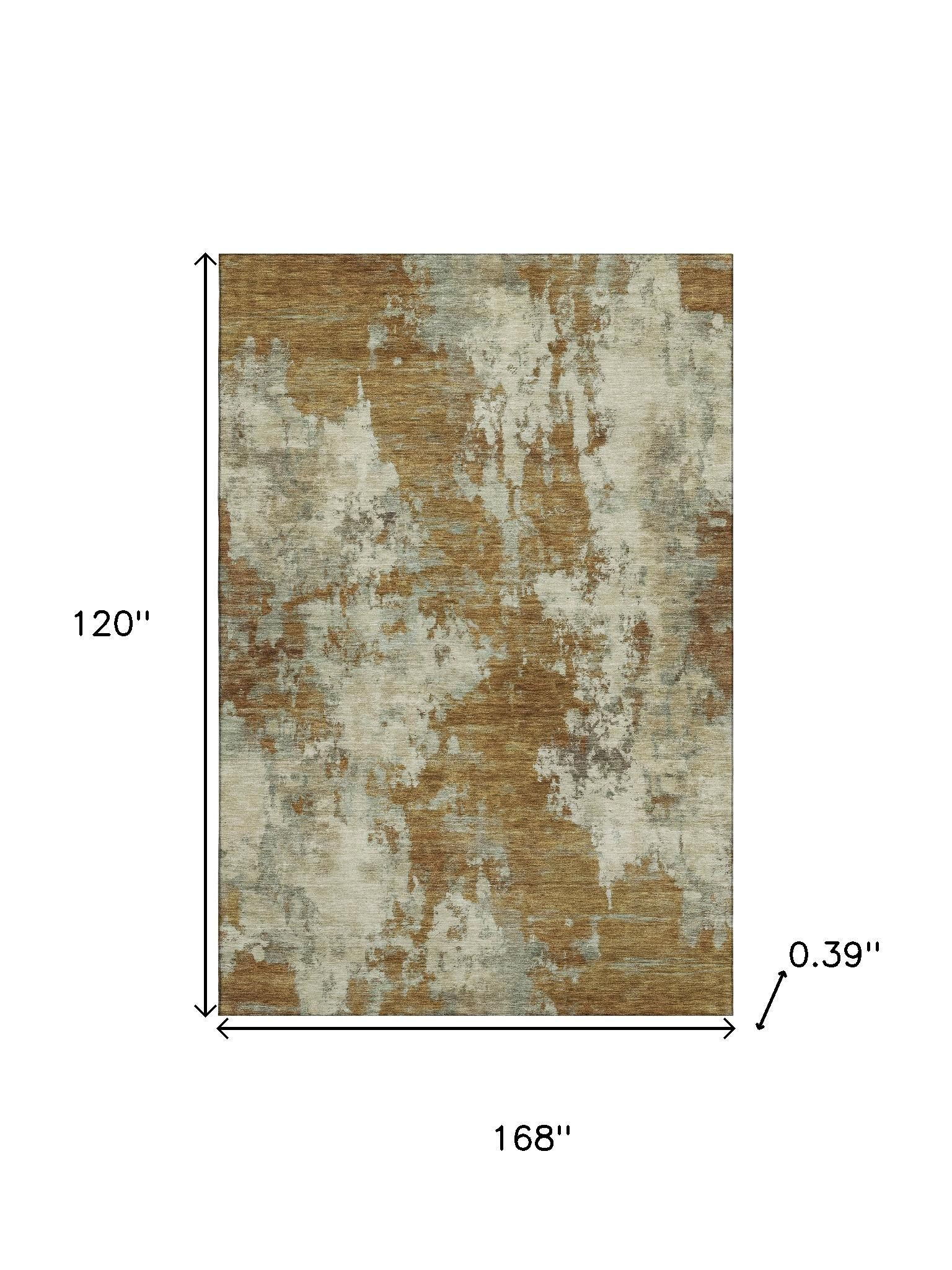Set an inviting tone in your space with this 10-foot x 14-foot terra cotta and beige abstract washable area rug with uv protection. Ideal for spaces with kids and pets, this rug is stain resistant to help repel dirt and spilled liquids. Built to last, this rug crafted from polyester fibers is known for its durability and long lasting appeal. Rugs are a great way to showcase your style, hide imperfections, warm your home and reduce noise. This larger sized, transitional styled rug is ready to create a focal point or statement piece in your room. 120.00-inch h x 168.00-inch w x 0.39-inch d.
