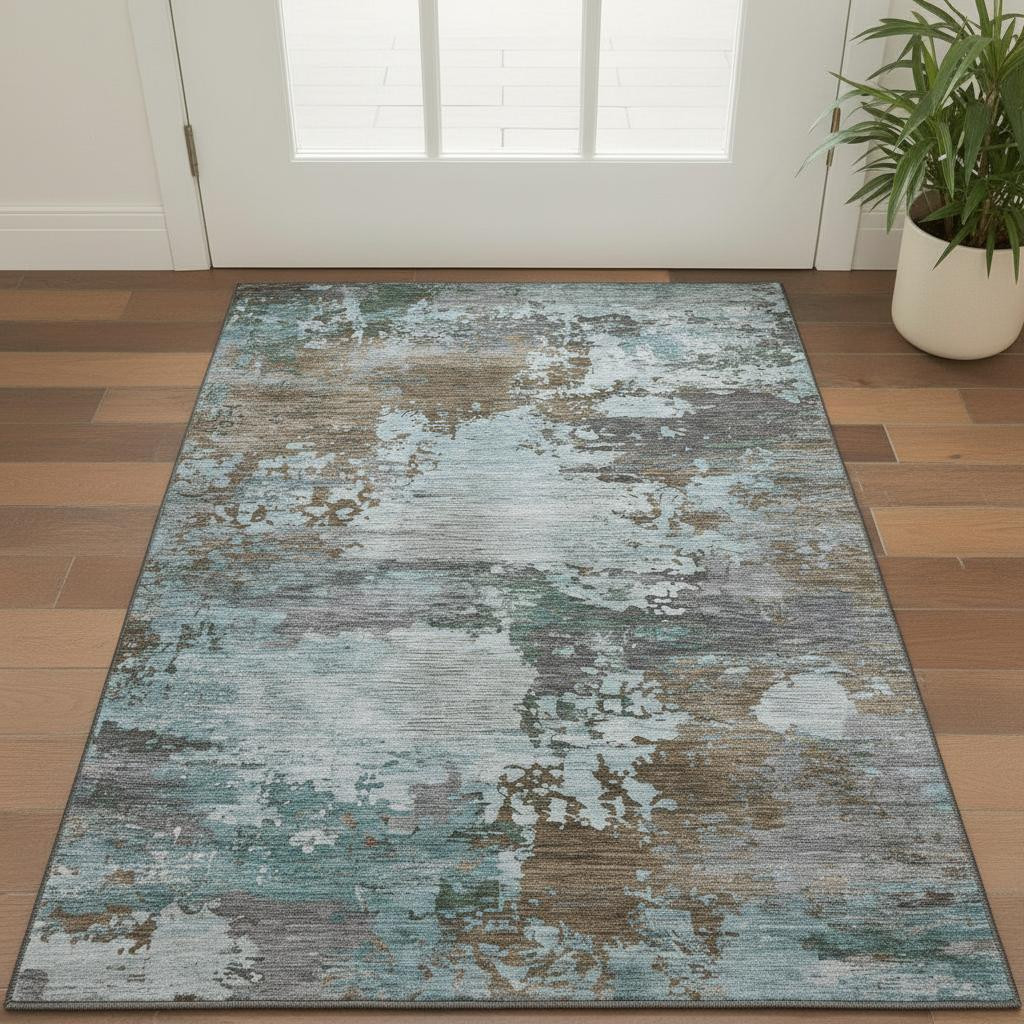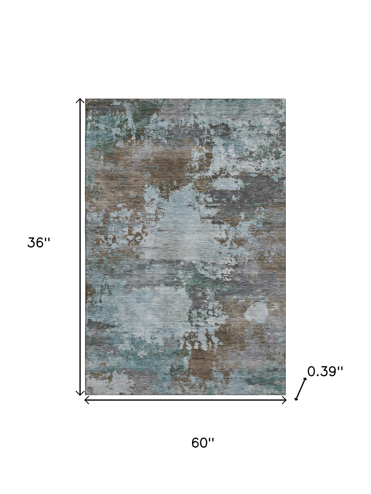 Add great coloration and comfortable texture to your space with this 3-foot x 5-foot brown and blue abstract washable area rug with uv protection. Ideal for spaces with kids and pets, this rug is stain resistant to help repel dirt and spilled liquids. Built to last, this rug crafted from polyester fibers is known for its durability and long lasting appeal. Rugs are a great way to showcase your style, hide imperfections, warm your home and reduce noise. This smaller sized, transitional styled rug is just what you need for your walkway, bedside, in front of door, cabinet, refrigerator, or chair. 36.00-inch h x 60.00-inch w x 0.39-inch d.