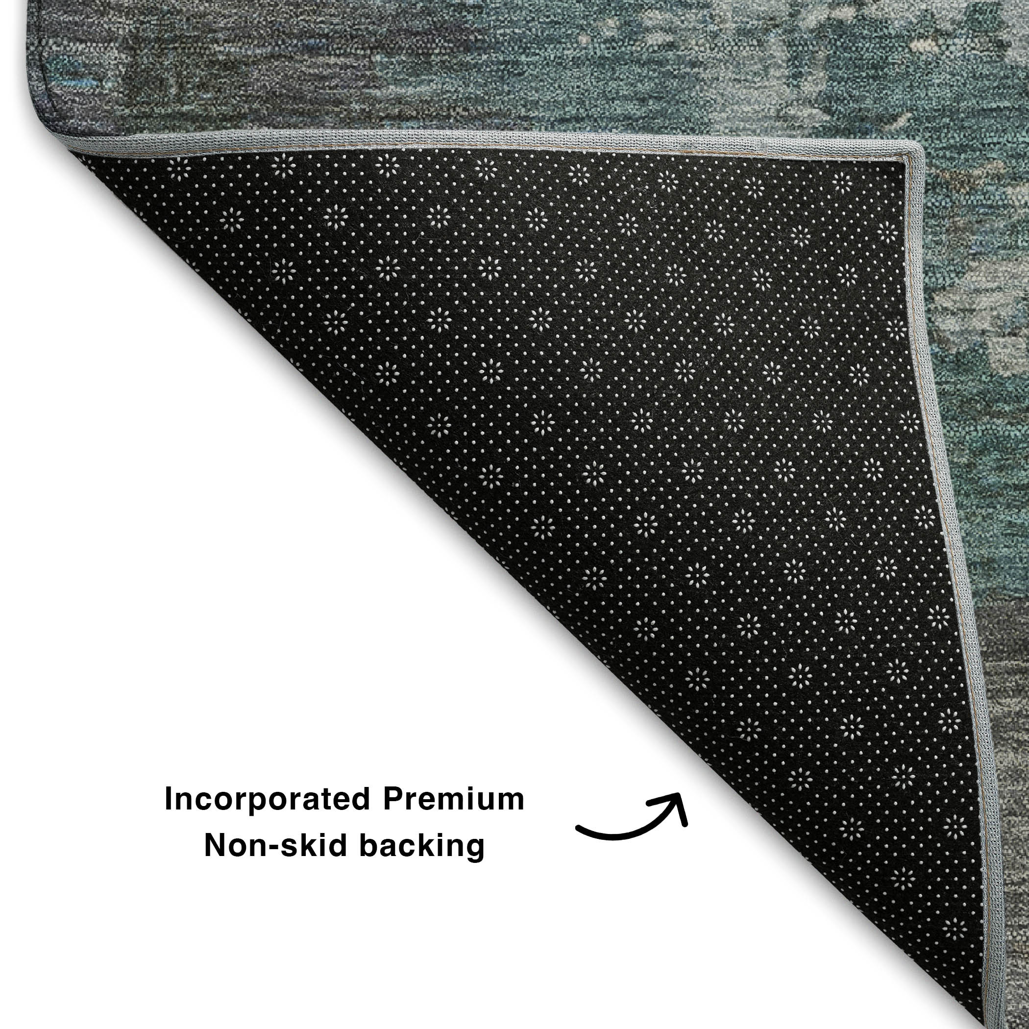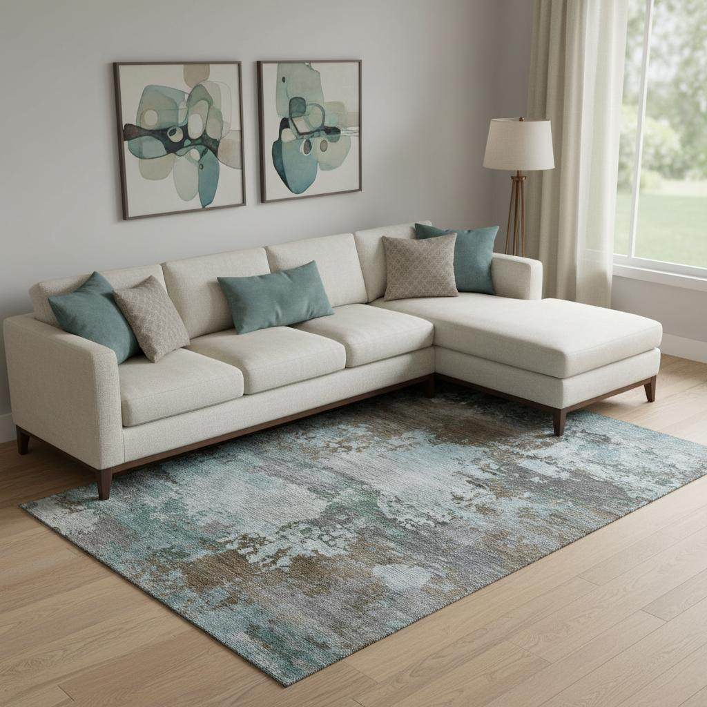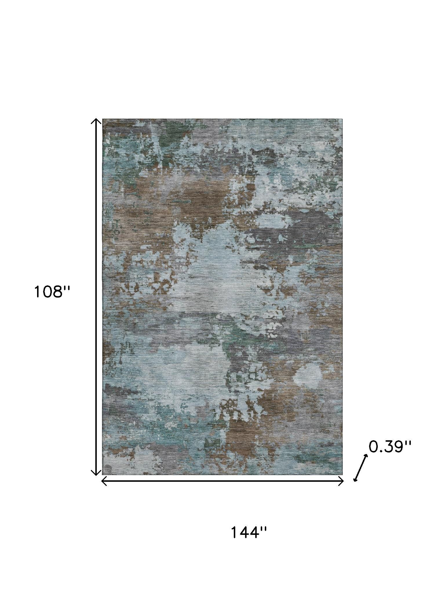 Add some artistry to your room with this 9-foot x 12-foot brown and blue abstract washable area rug with uv protection. Ideal for spaces with kids and pets, this rug is stain resistant to help repel dirt and spilled liquids. Built to last, this rug crafted from polyester fibers is known for its durability and long lasting appeal. Rugs are a great way to showcase your style, hide imperfections, warm your home and reduce noise. This larger sized, transitional styled rug is ready to create a focal point or statement piece in your room. 108.00-inch h x 144.00-inch w x 0.39-inch d.
