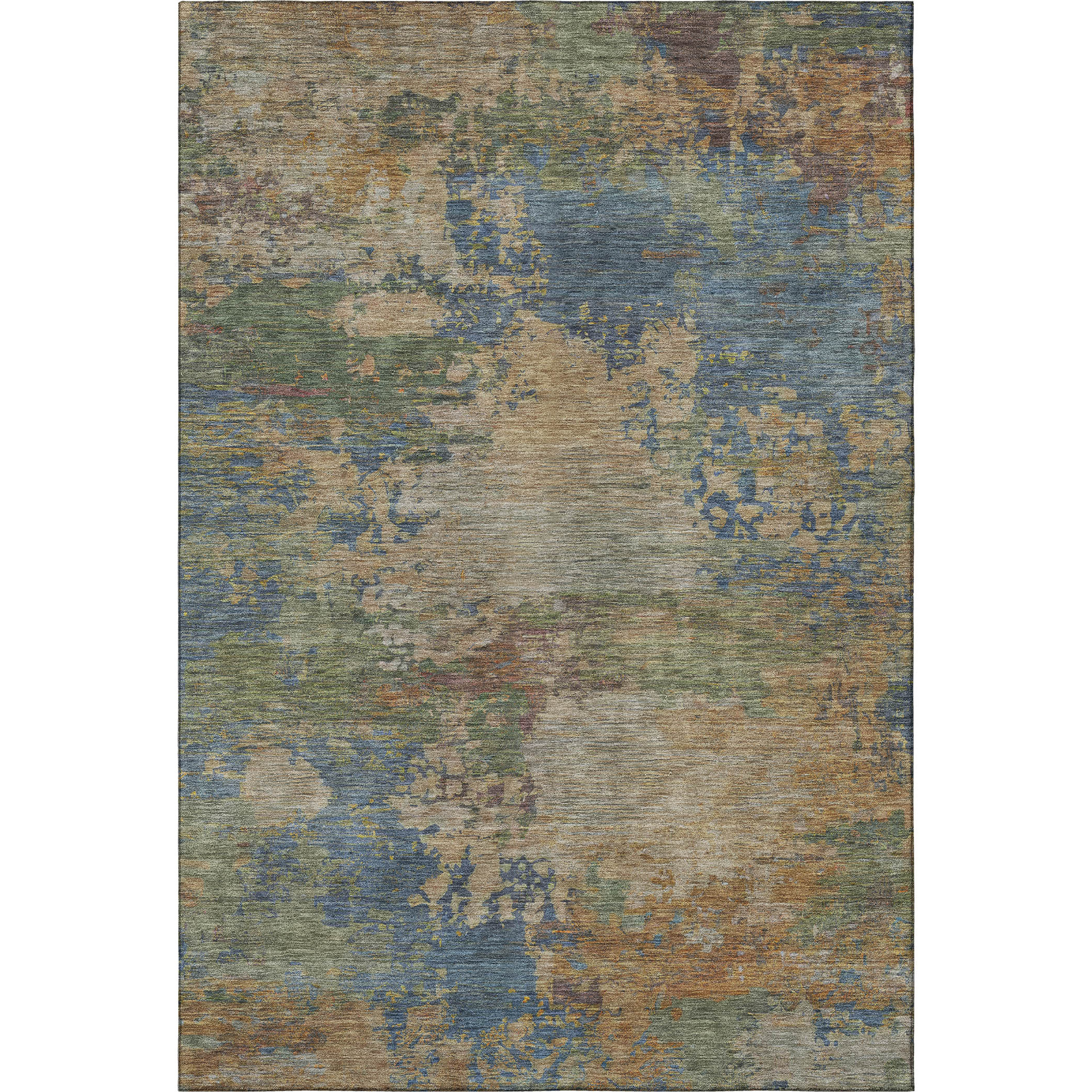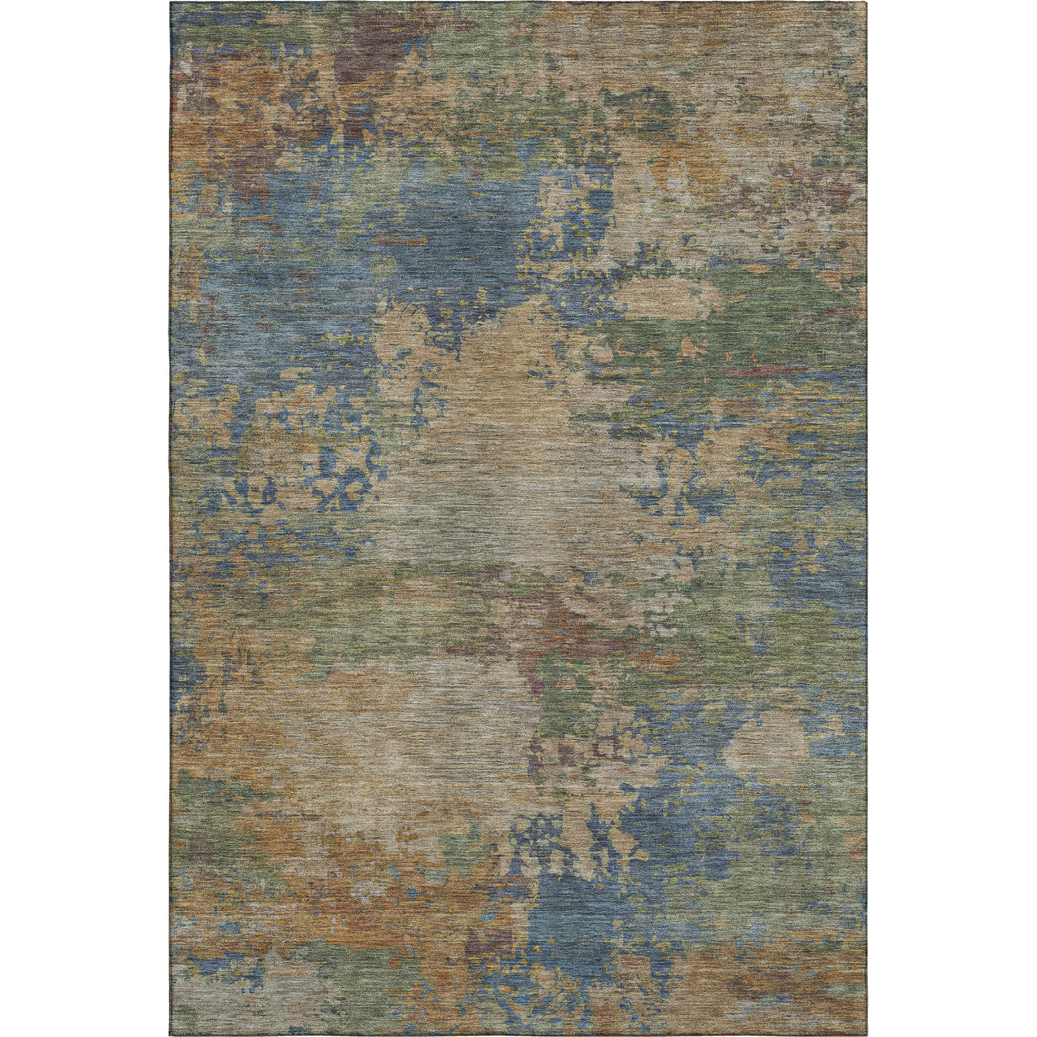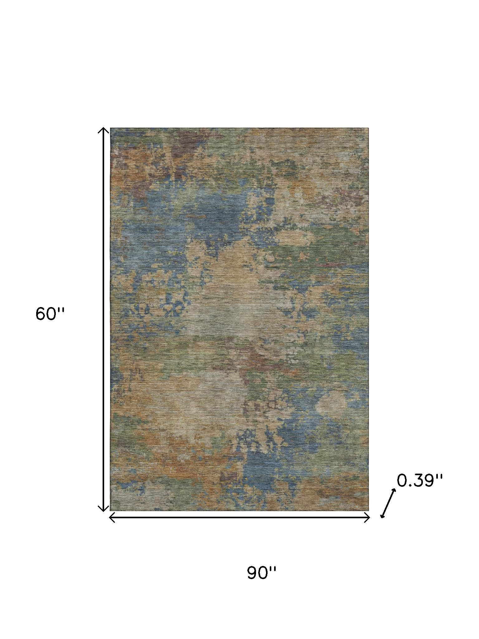 This 5-foot x 8-foot denim blue and beige abstract washable area rug with uv protection, is a great way to add warmth to a room. Ideal for spaces with kids and pets, this rug is stain resistant to help repel dirt and spilled liquids. Built to last, this rug crafted from polyester fibers is known for its durability and long lasting appeal. Rugs are a great way to showcase your style, hide imperfections, warm your home and reduce noise. This larger sized, transitional styled rug is ready to create a focal point or statement piece in your room. 60.00-inch h x 90.00-inch w x 0.39-inch d.