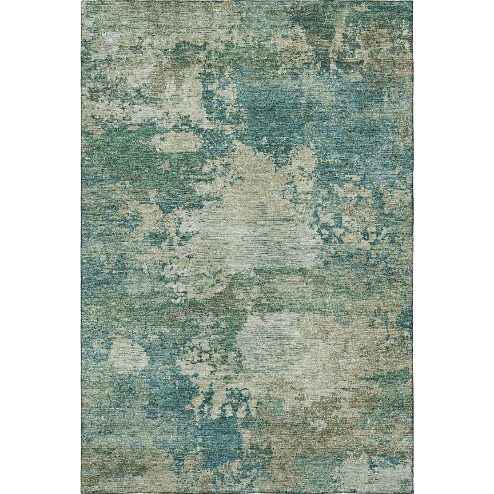 This 5-foot x 8-foot teal and beige abstract washable area rug with uv protection, is a great way to add warmth to a room. Ideal for spaces with kids and pets, this rug is stain resistant to help repel dirt and spilled liquids. Built to last, this rug crafted from polyester fibers is known for its durability and long lasting appeal. Rugs are a great way to showcase your style, hide imperfections, warm your home and reduce noise. This larger sized, transitional styled rug is ready to create a focal point or statement piece in your room. 60.00-inch h x 90.00-inch w x 0.39-inch d.