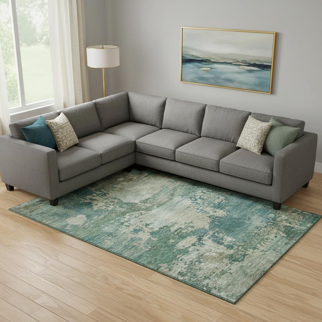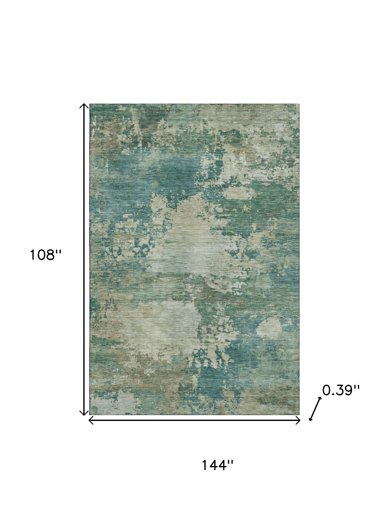 Add great coloration and comfortable texture to your space with this 9-foot x 12-foot teal and beige abstract washable area rug with uv protection. Ideal for spaces with kids and pets, this rug is stain resistant to help repel dirt and spilled liquids. Built to last, this rug crafted from polyester fibers is known for its durability and long lasting appeal. Rugs are a great way to showcase your style, hide imperfections, warm your home and reduce noise. This larger sized, transitional styled rug is ready to create a focal point or statement piece in your room. 108.00-inch h x 144.00-inch w x 0.39-inch d.