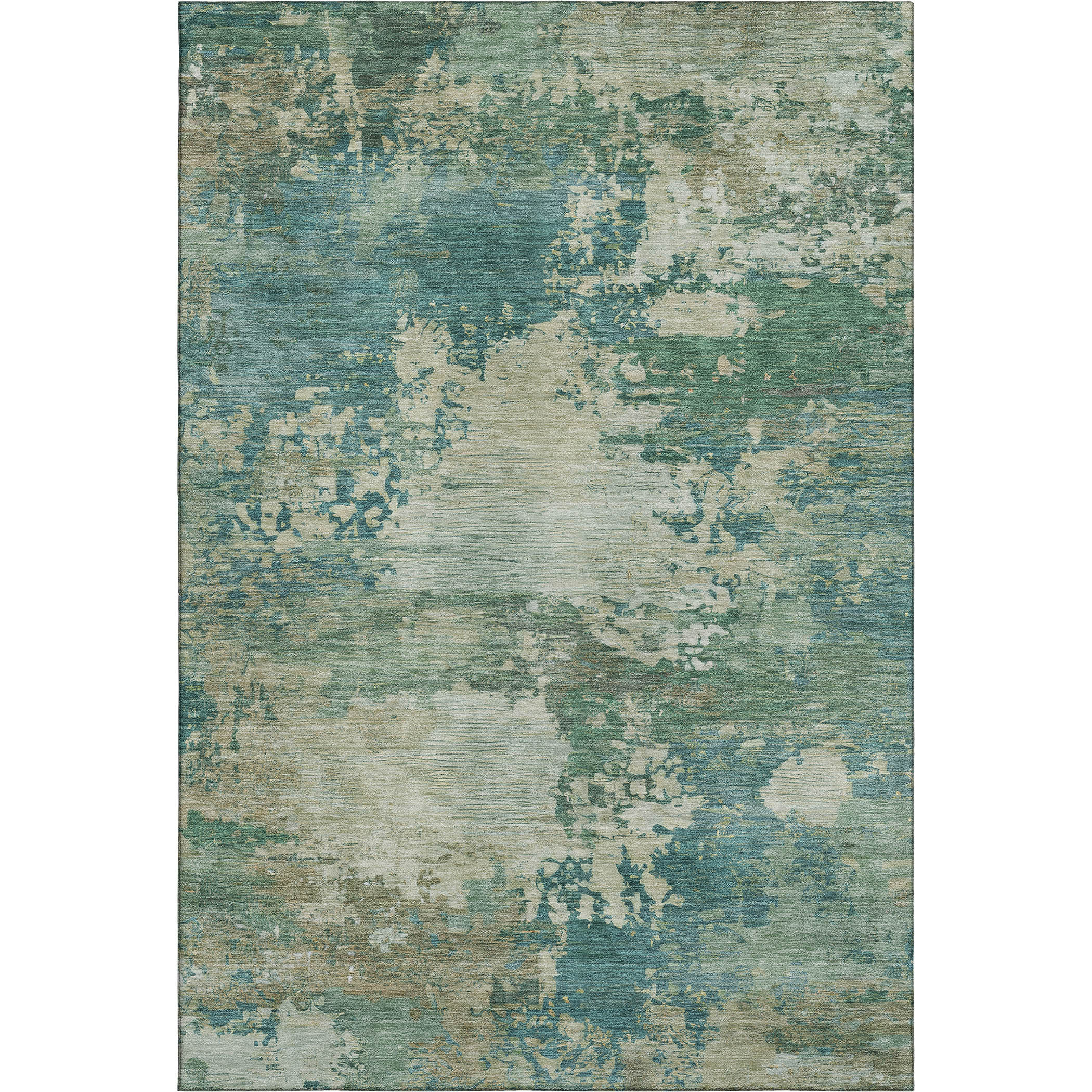 Set an inviting tone in your space with this 10-foot x 14-foot teal and beige abstract washable area rug with uv protection. Ideal for spaces with kids and pets, this rug is stain resistant to help repel dirt and spilled liquids. Built to last, this rug crafted from polyester fibers is known for its durability and long lasting appeal. Rugs are a great way to showcase your style, hide imperfections, warm your home and reduce noise. This larger sized, transitional styled rug is ready to create a focal point or statement piece in your room. 120.00-inch h x 168.00-inch w x 0.39-inch d.