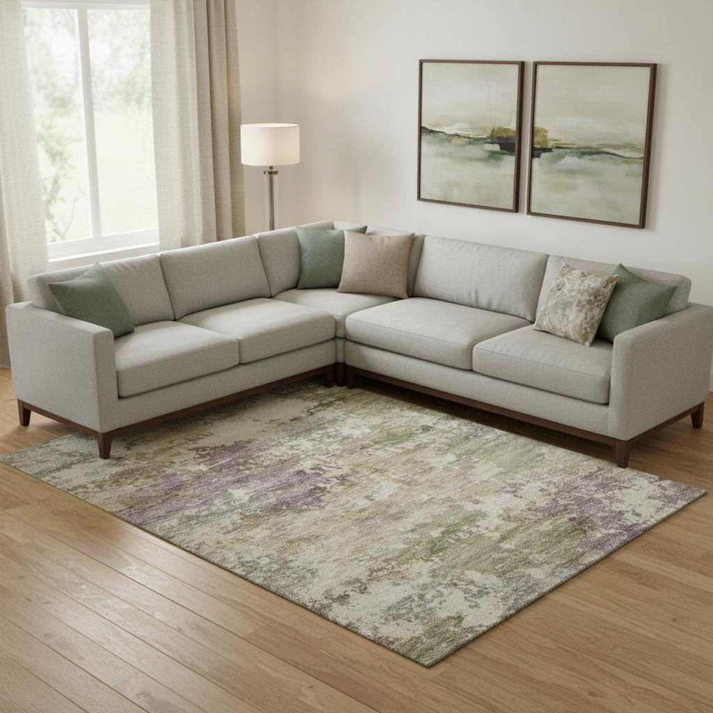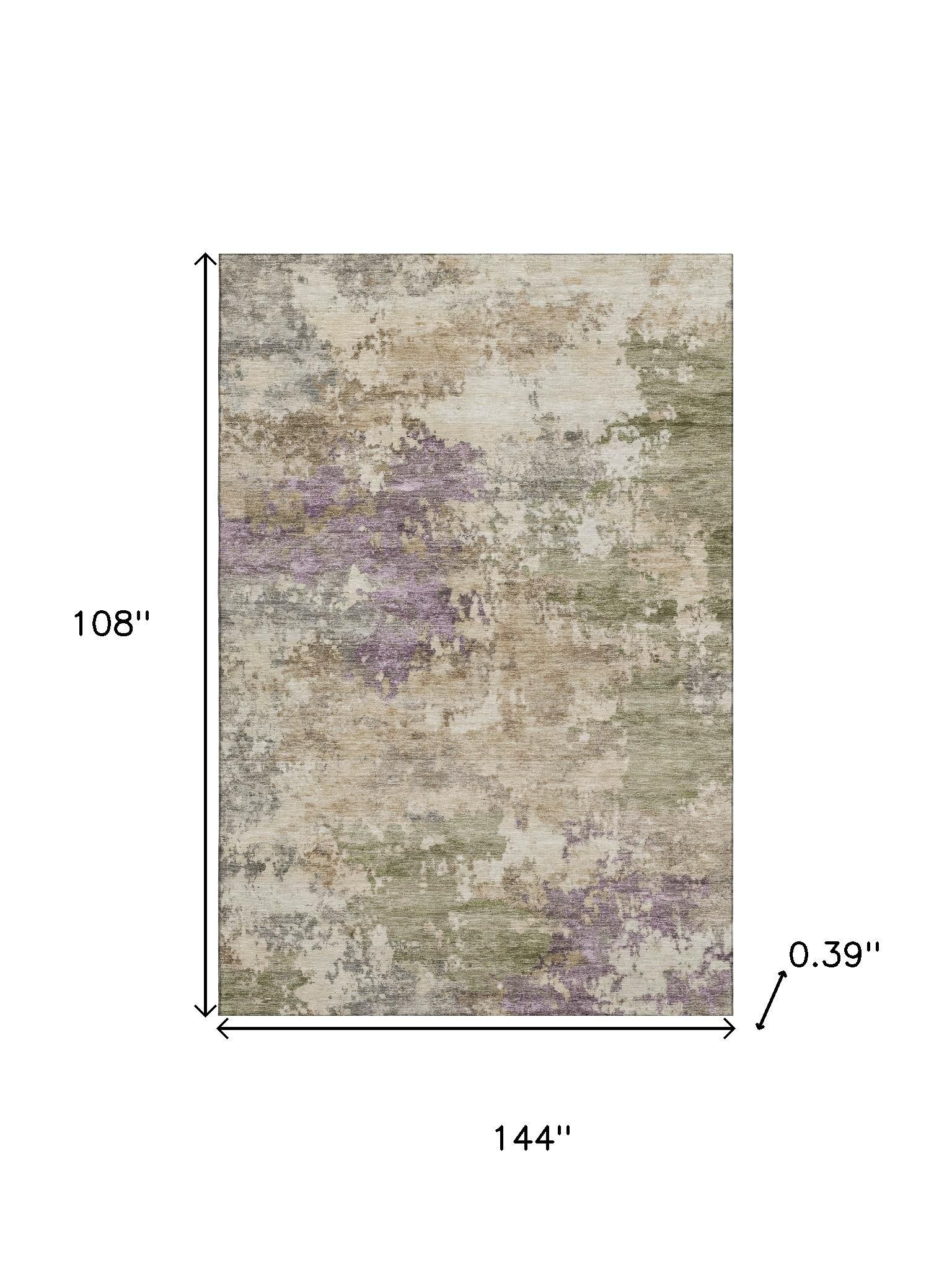 Add some artistry to your room with this 9-foot x 12-foot beige and purple abstract washable area rug with uv protection. Ideal for spaces with kids and pets, this rug is stain resistant to help repel dirt and spilled liquids. Built to last, this rug crafted from polyester fibers is known for its durability and long lasting appeal. Rugs are a great way to showcase your style, hide imperfections, warm your home and reduce noise. This larger sized, transitional styled rug is ready to create a focal point or statement piece in your room. 108.00-inch h x 144.00-inch w x 0.39-inch d.