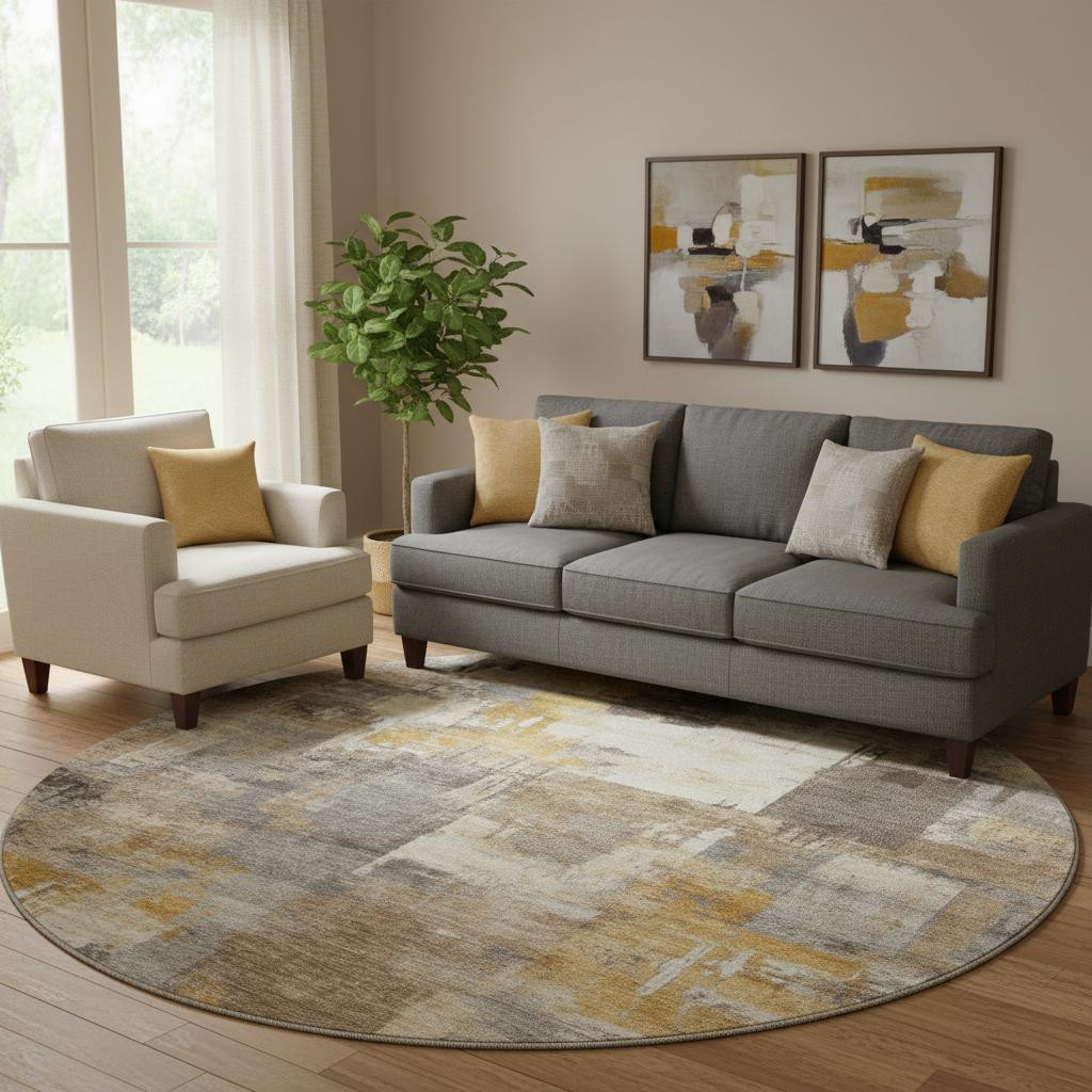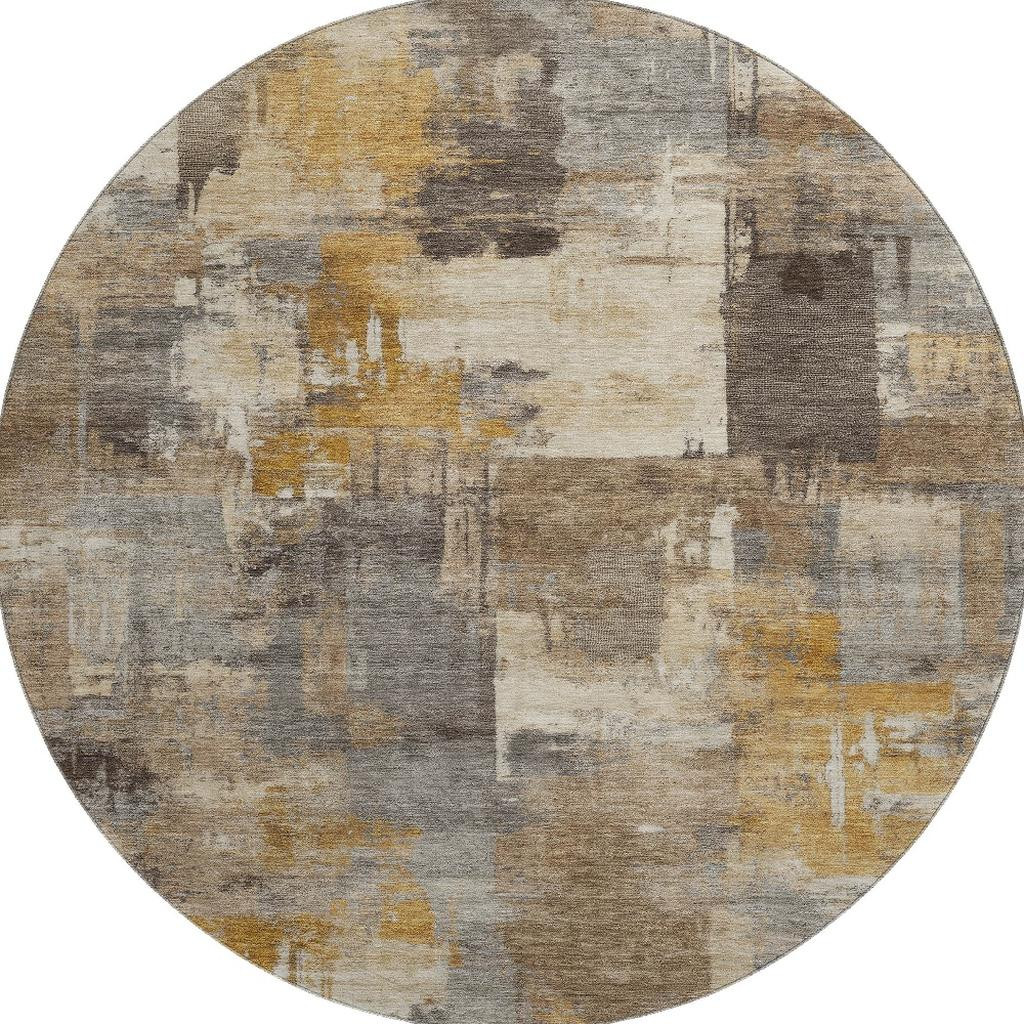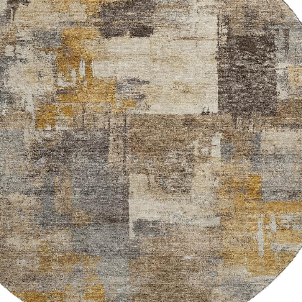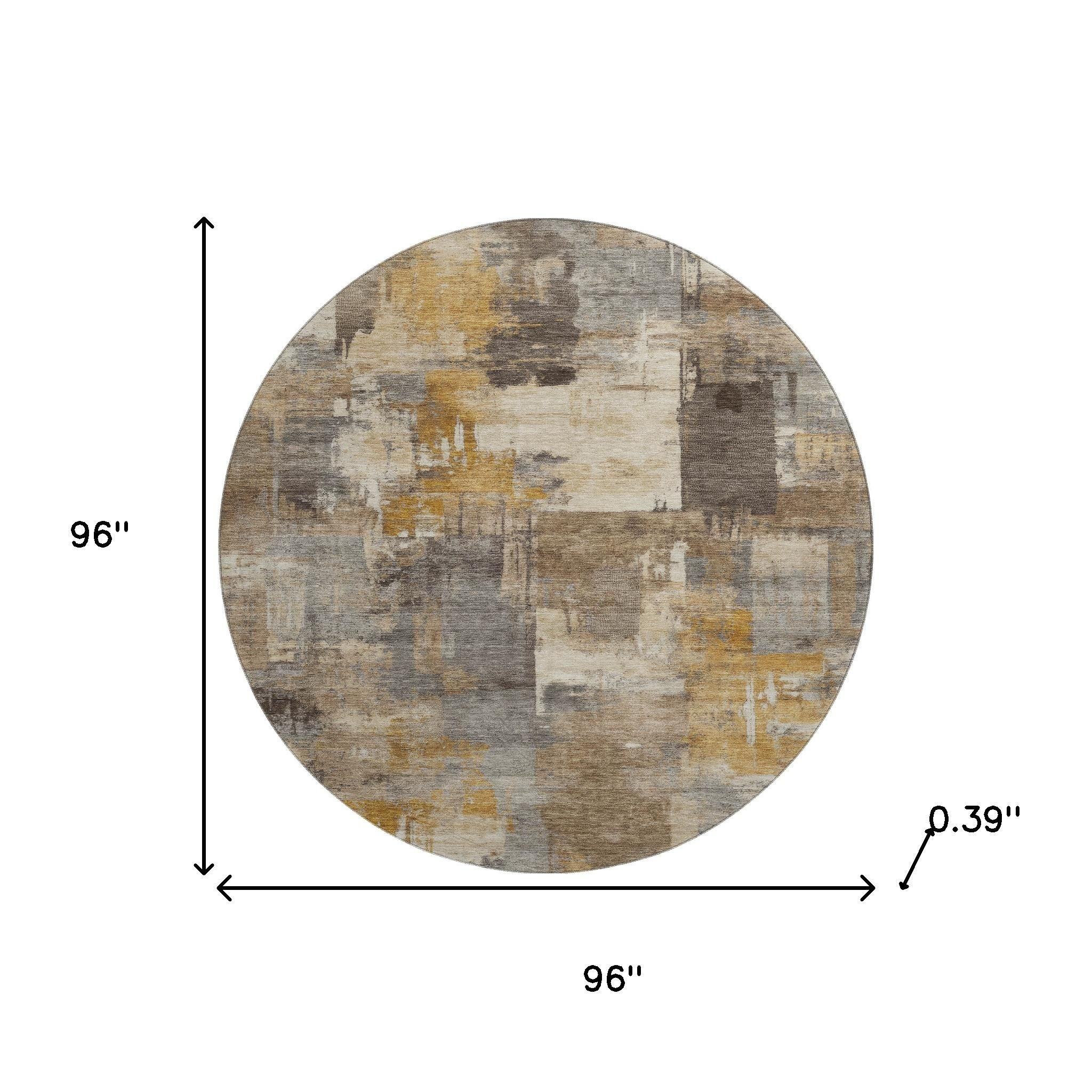 Add great coloration and comfortable texture to your space with this 8-foot brown and beige abstract washable round rug with uv protection. Ideal for spaces with kids and pets, this rug is stain resistant to help repel dirt and spilled liquids. Built to last, this rug crafted from polyester fibers is known for its durability and long lasting appeal. Rugs are a great way to showcase your style, hide imperfections, warm your home and reduce noise. This larger sized, transitional styled rug is ready to create a focal point or statement piece in your room. 96.00-inch h x 96.00-inch w x 0.39-inch d.