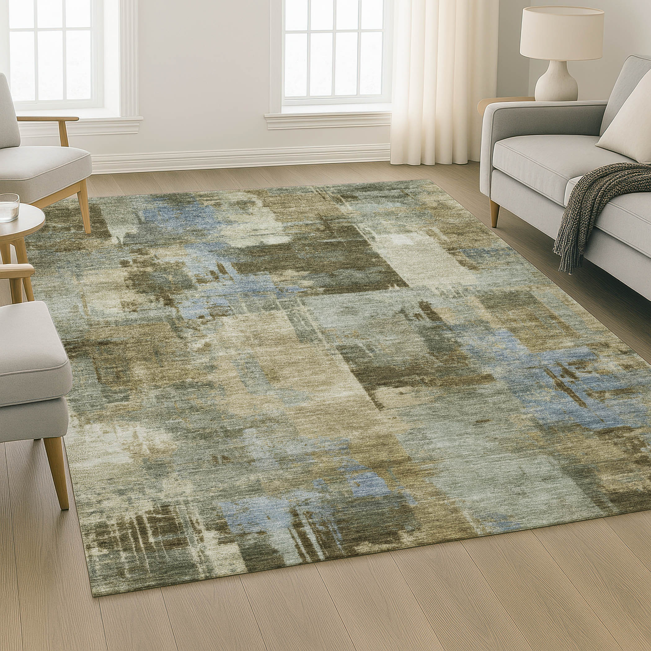 Add great coloration and comfortable texture to your space with this 3-foot x 5-foot green and gray abstract washable area rug with uv protection. Ideal for spaces with kids and pets, this rug is stain resistant to help repel dirt and spilled liquids. Built to last, this rug crafted from polyester fibers is known for its durability and long lasting appeal. Rugs are a great way to showcase your style, hide imperfections, warm your home and reduce noise. This smaller sized, transitional styled rug is just what you need for your walkway, bedside, in front of door, cabinet, refrigerator, or chair. 36.00-inch h x 60.00-inch w x 0.39-inch d.